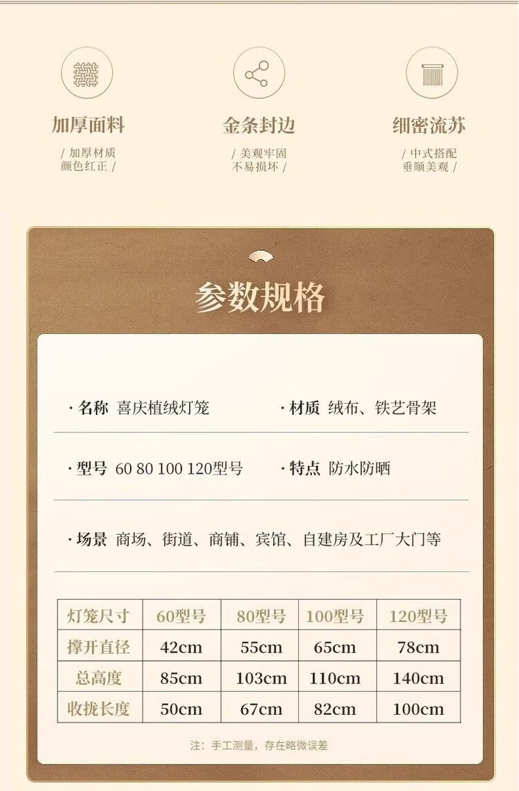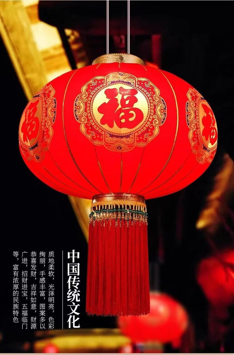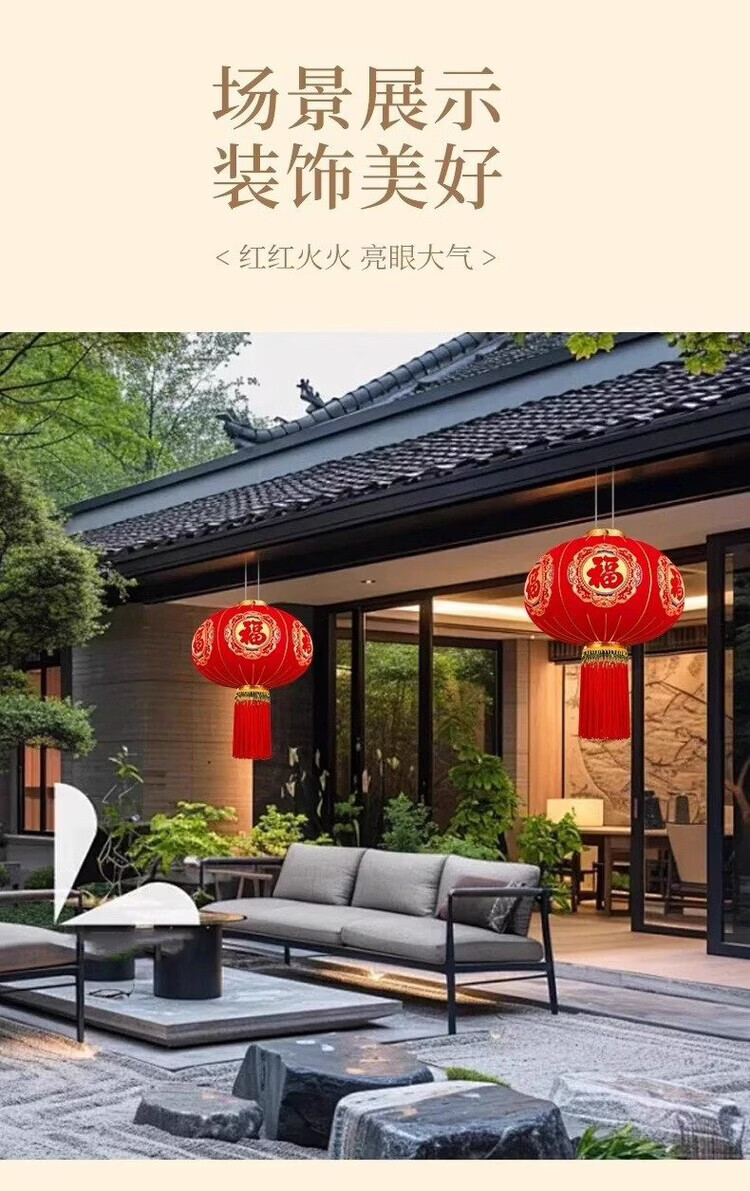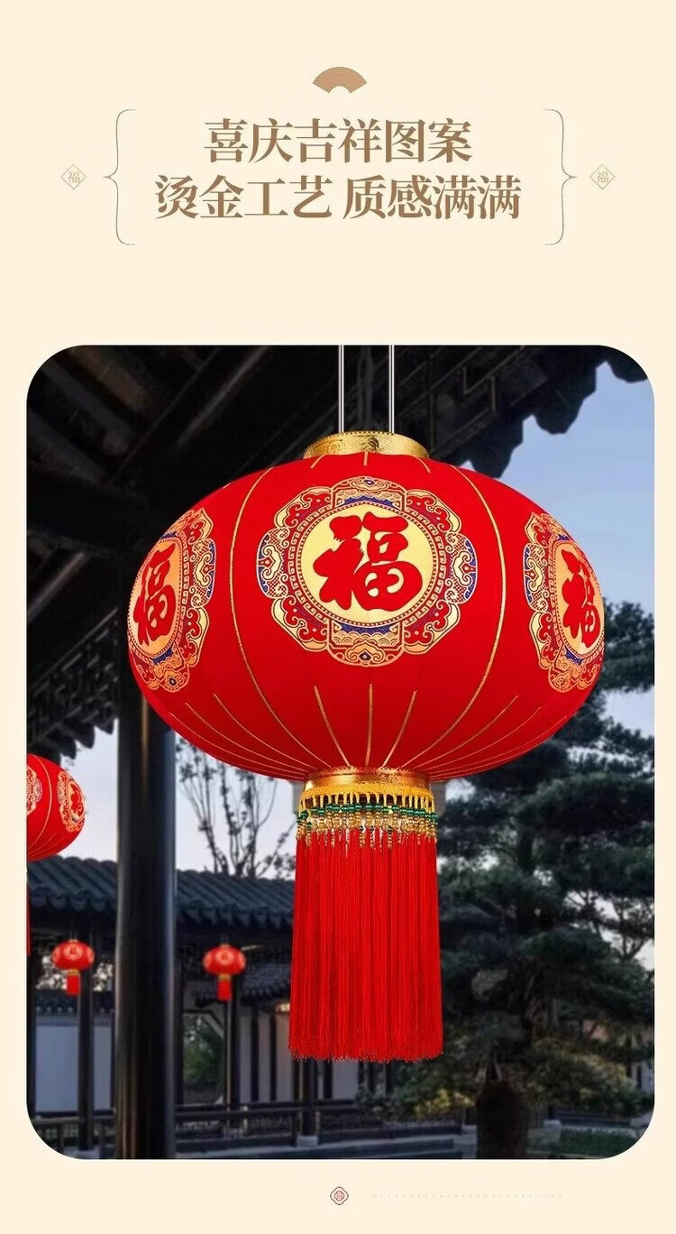 Xushansi New Year's blessing lanterns, red lanterns, housewarming gates, wedding flocking hangings, a pair of balcony yard outdoor decorations, a pair of 80 gold Caifu (gold bead tassels)