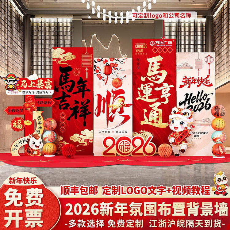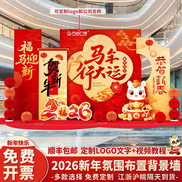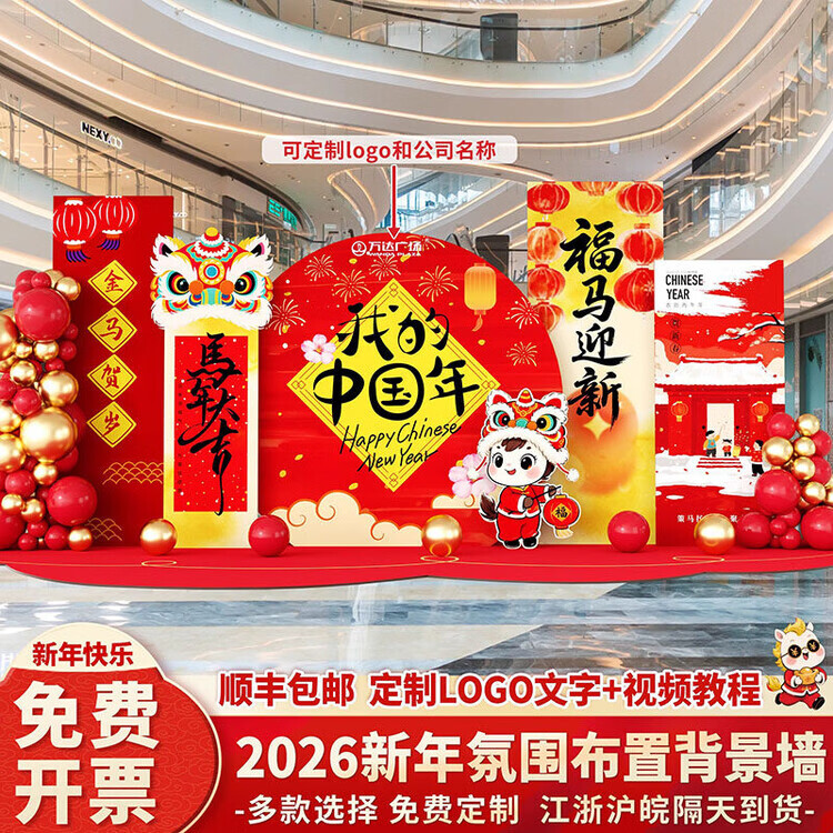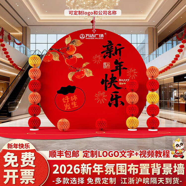 Xushansi 2026 Year of the Horse Spring Festival Scene Atmosphere Arrangement and Decoration Company Shopping Mall New Year's Presentation kt Board Background Wall Honeycomb Ball Style Instant Success Height 2.1m Width 3.6m 2026 New Year Atmosphere Arrangement
