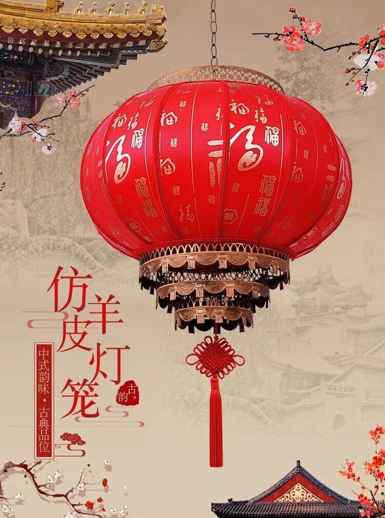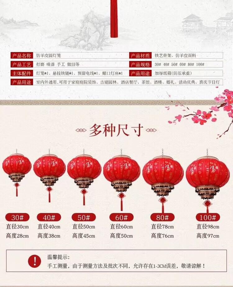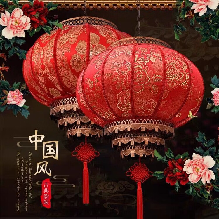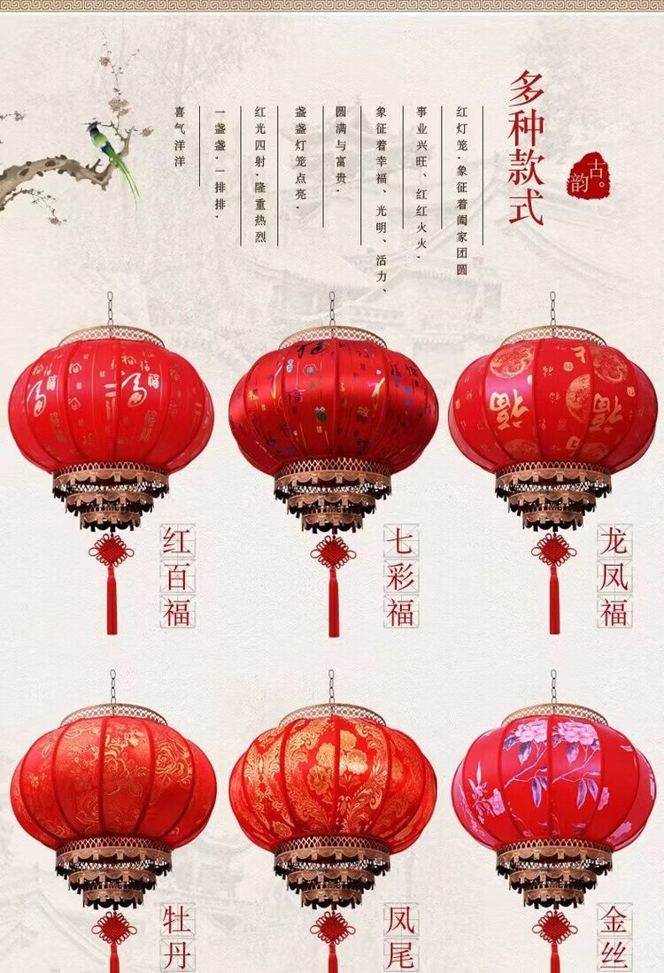 Xushansi LED light-emitting traditional New Year red hanging lantern outdoor balcony housewarming waterproof customized sheepskin lantern Cool Pear Latest plug-in model Free LED light + 2 meters light cord + Chinese knot Round 60# (diameter 60cm) embroidered peony High quality double layer one pack