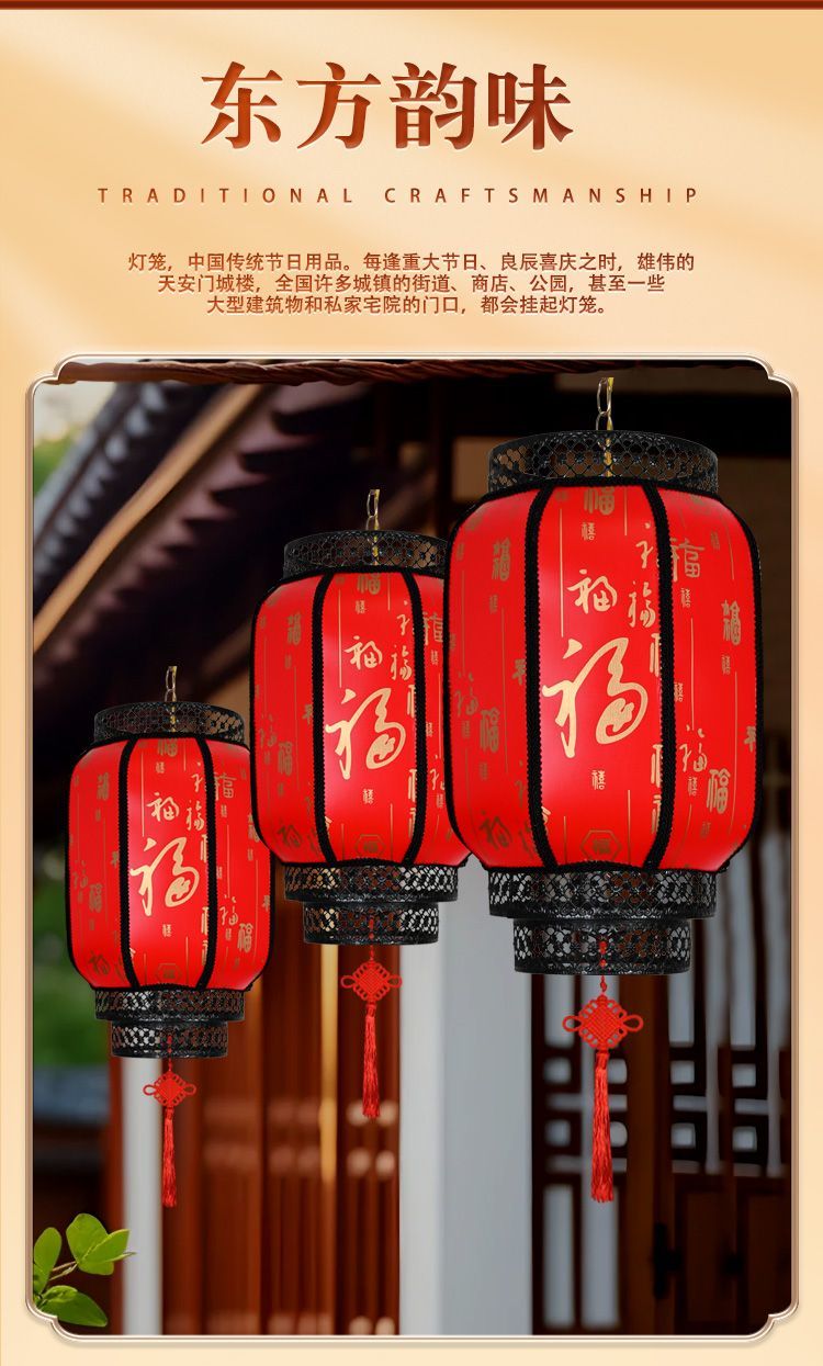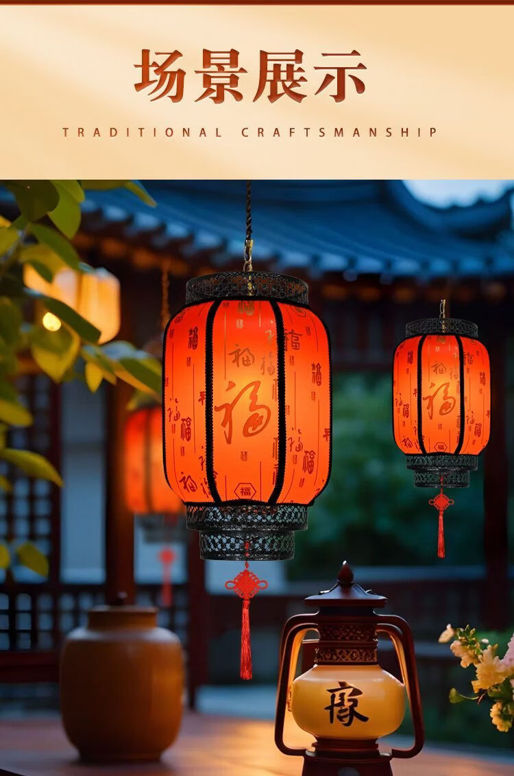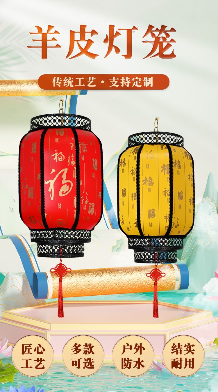 Xushansi Solar Outdoor Lantern Customized Spring Festival Courtyard Sheepskin Printing No Wiring Antique Waterproof Chinese Sunscreen Decoration Black Skeleton 40 Red Plum, Orchid, Bamboo and Chrysanthemum Solar Model