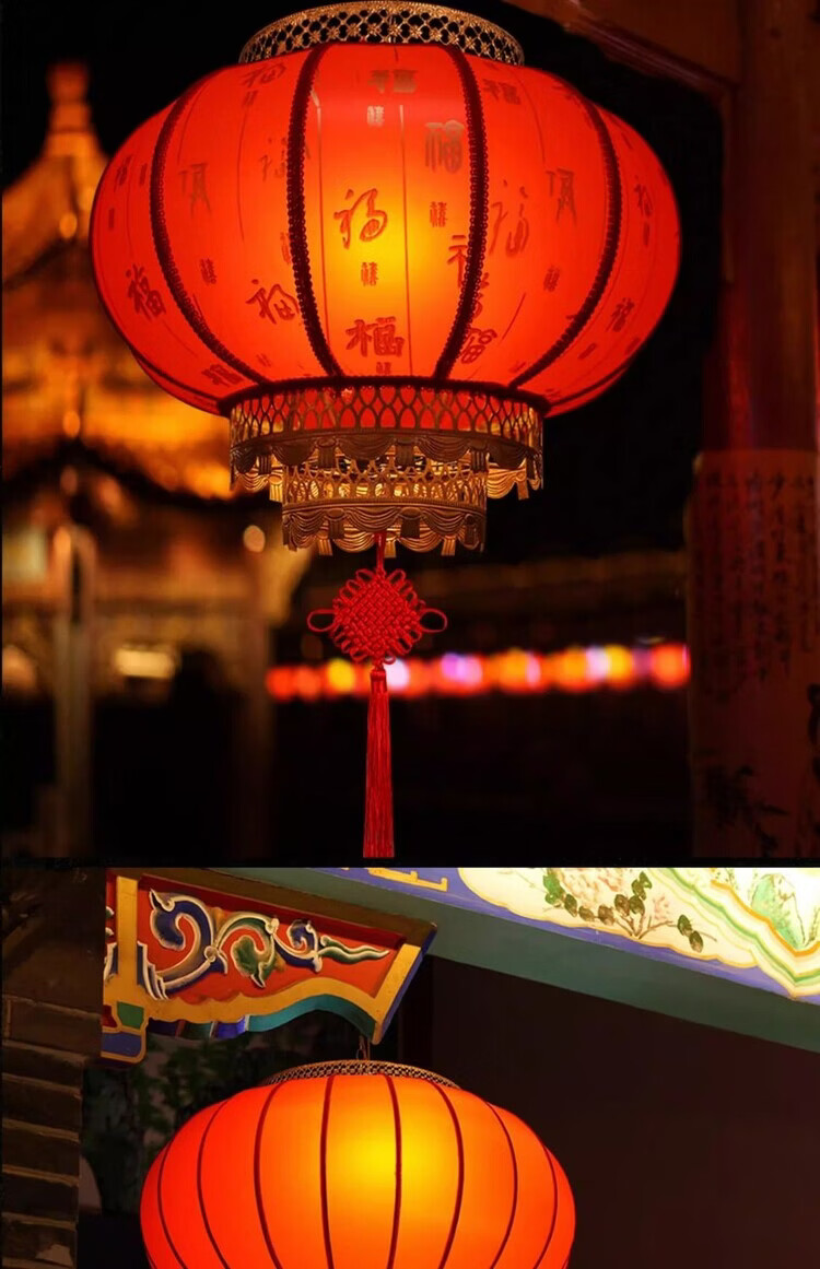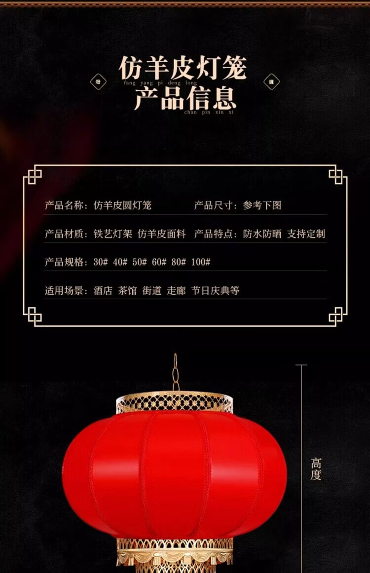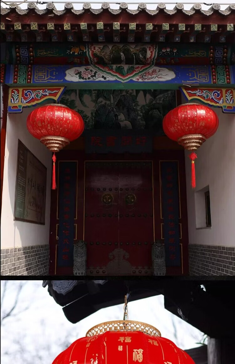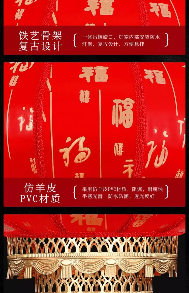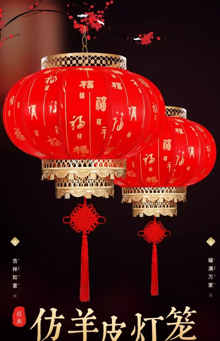 Xushansi Battery New Year Red Outdoor Waterproof Antique Sheepskin Lantern Printed Advertising Gate Solar Spring Festival Customized Wiring-Free Model 2 Meters Cable with Plug 80# Baifu 1 Villa/Company Gate