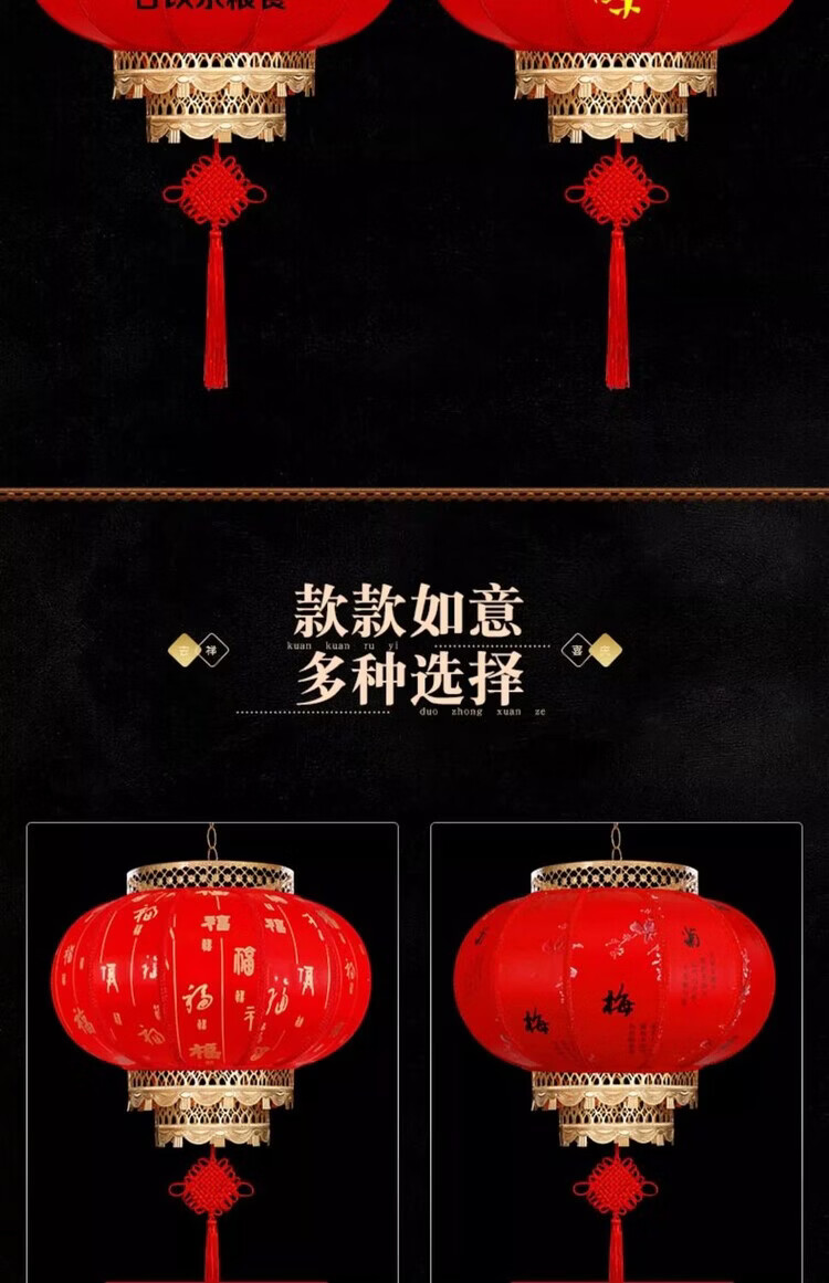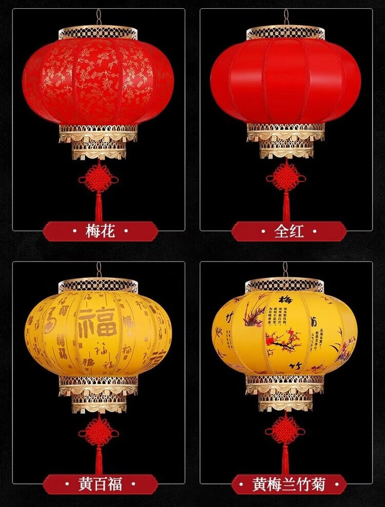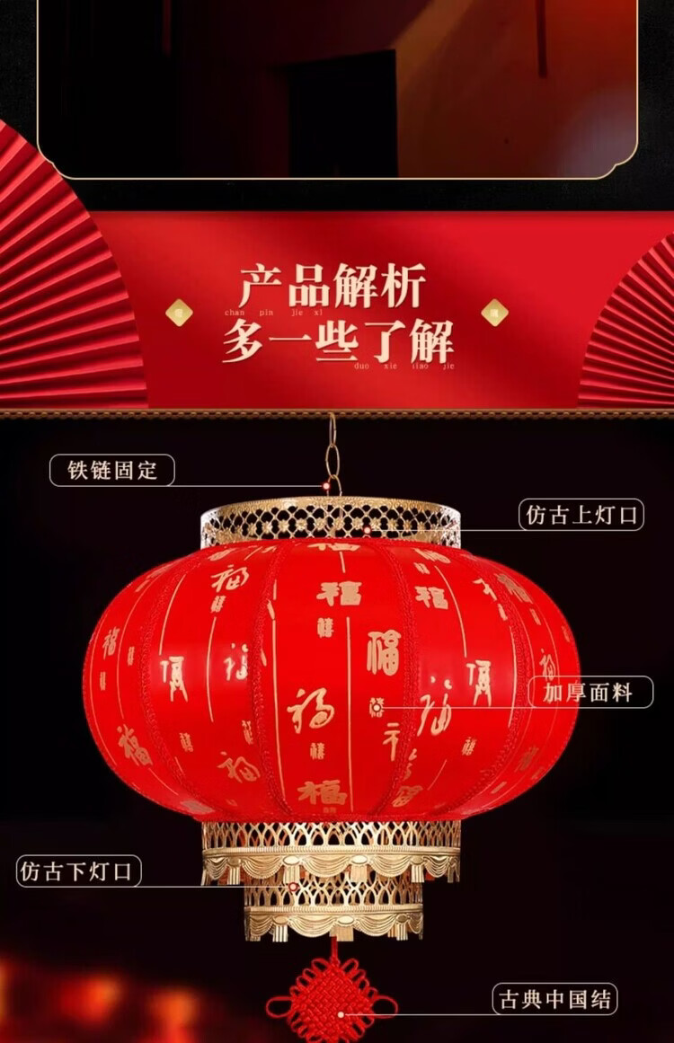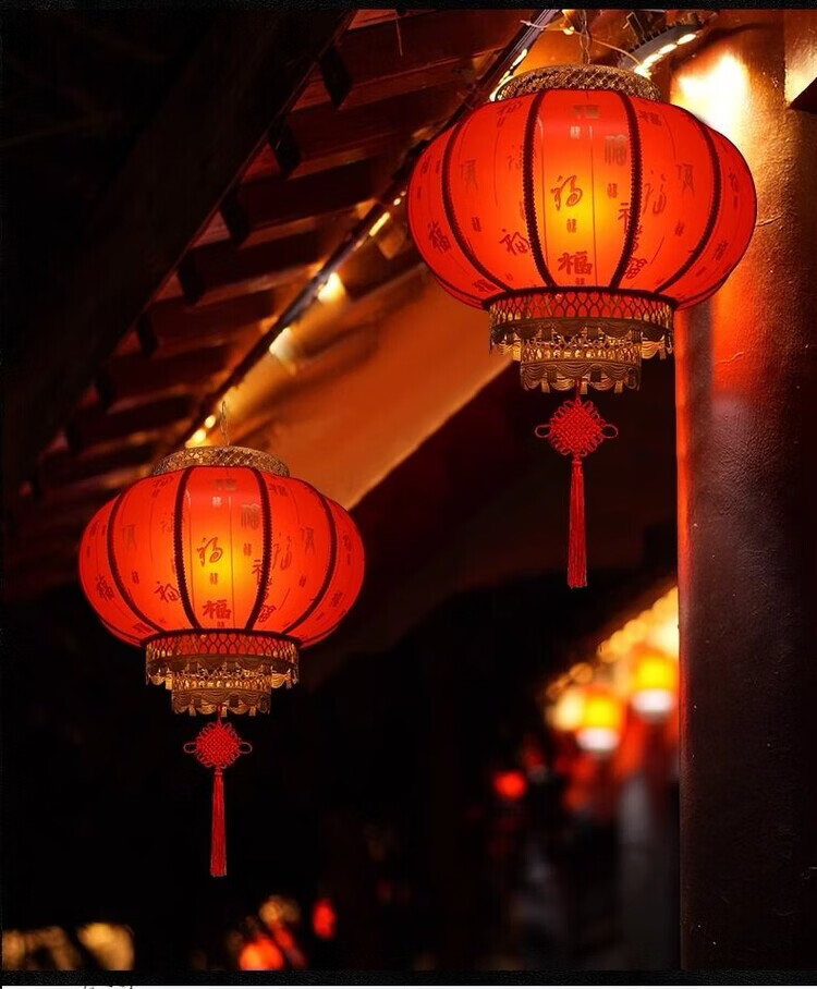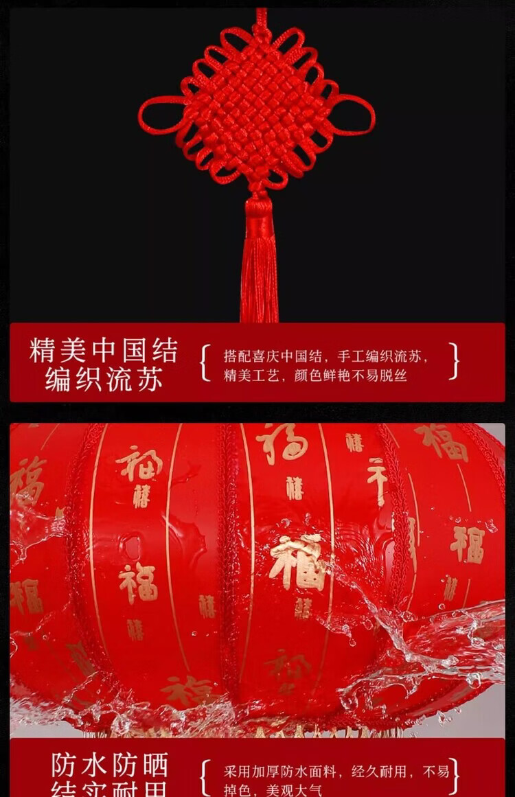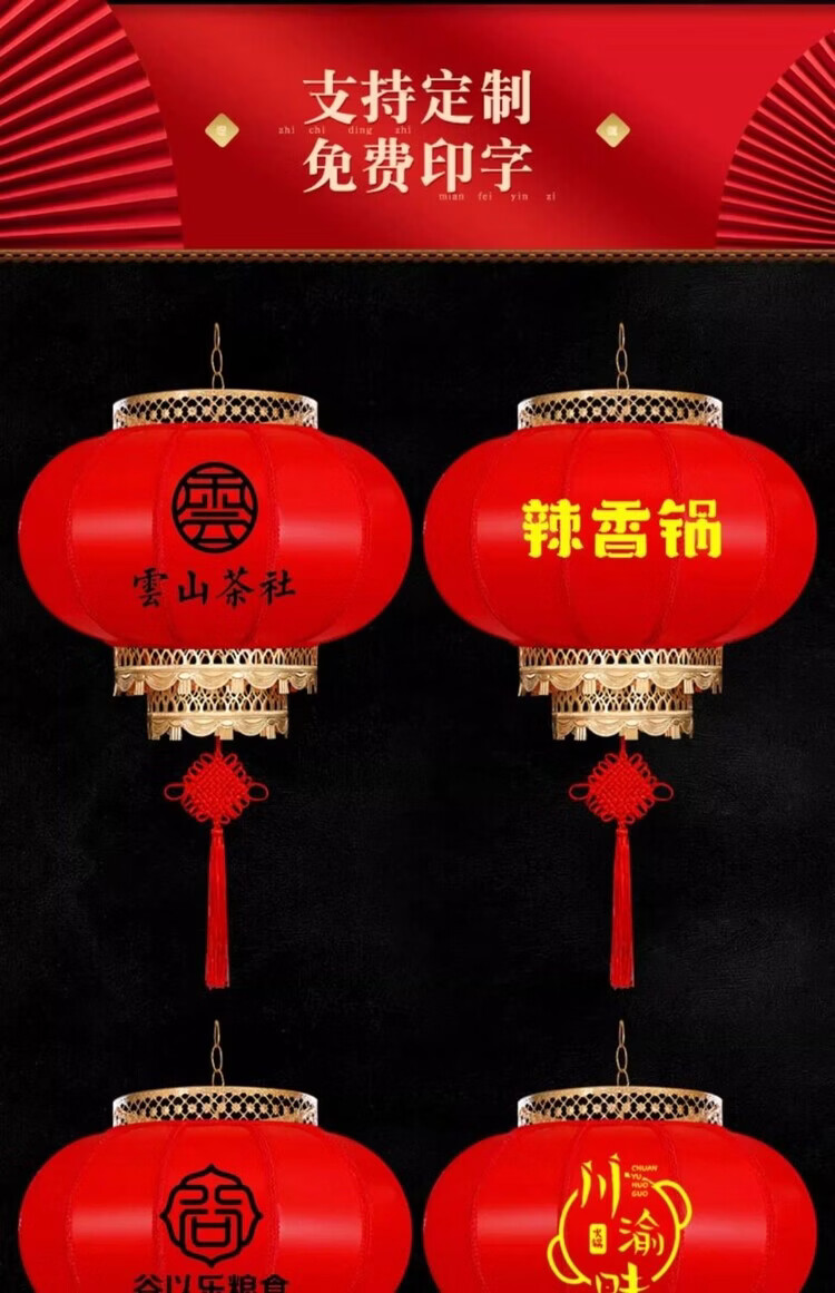 Xushansi Battery New Year Red Outdoor Waterproof Antique Sheepskin Lantern Printed Advertising Gate Solar Spring Festival Customized Wiring-Free Model 2 Meters Cable with Plug 80# Baifu 1 Villa/Company Gate