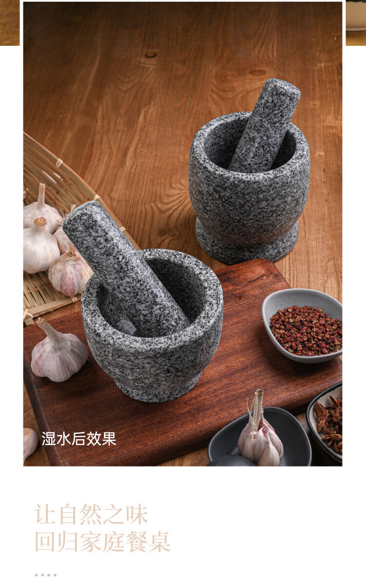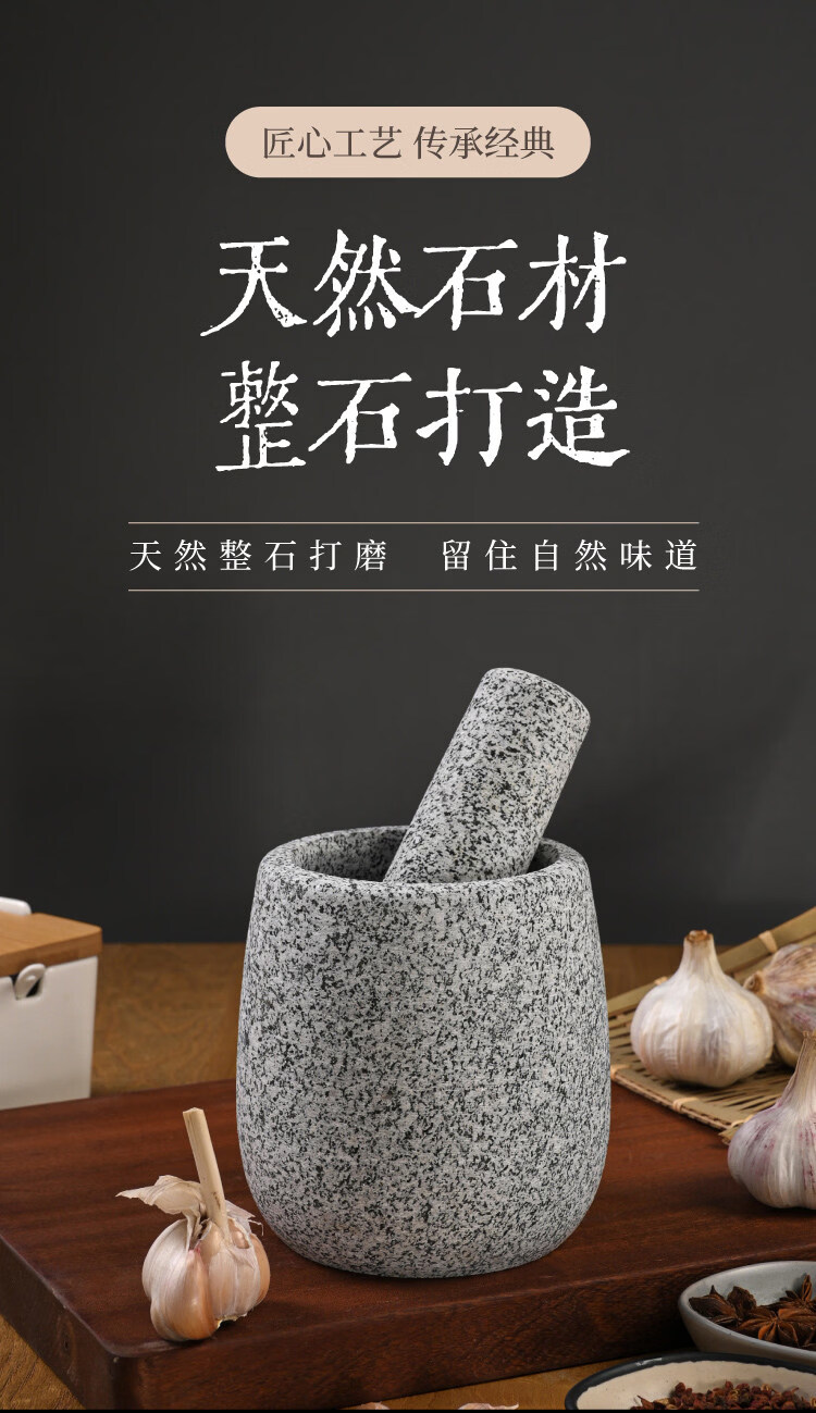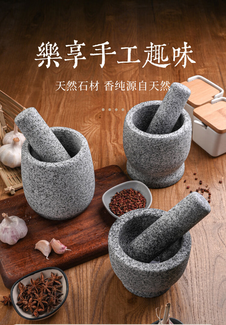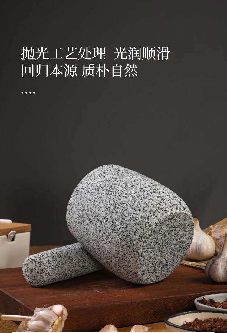 Tuojin household grinder stone mortar natural stone hand-made garlic mortar pound medicine jar garlic press garlic garlic press sesame white medium + lid