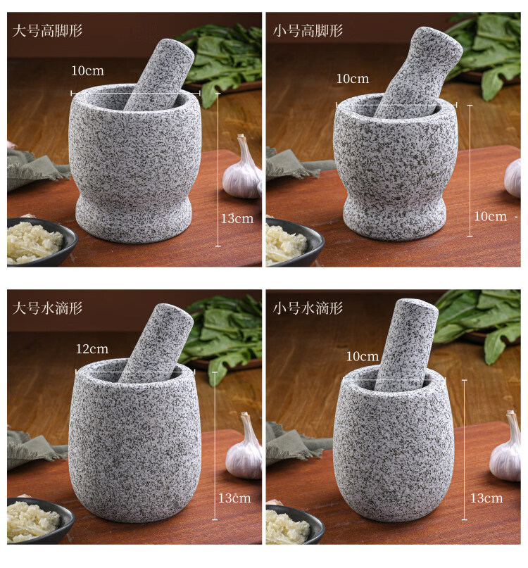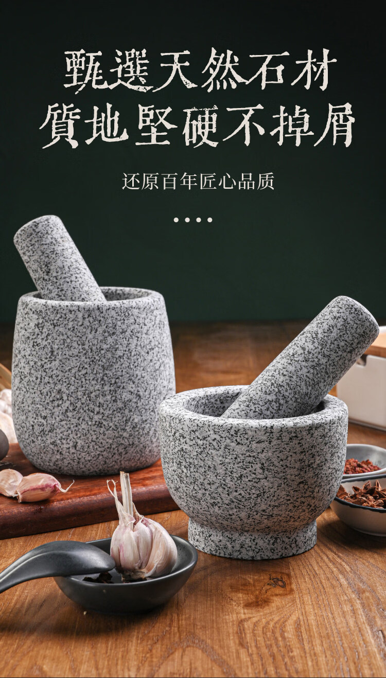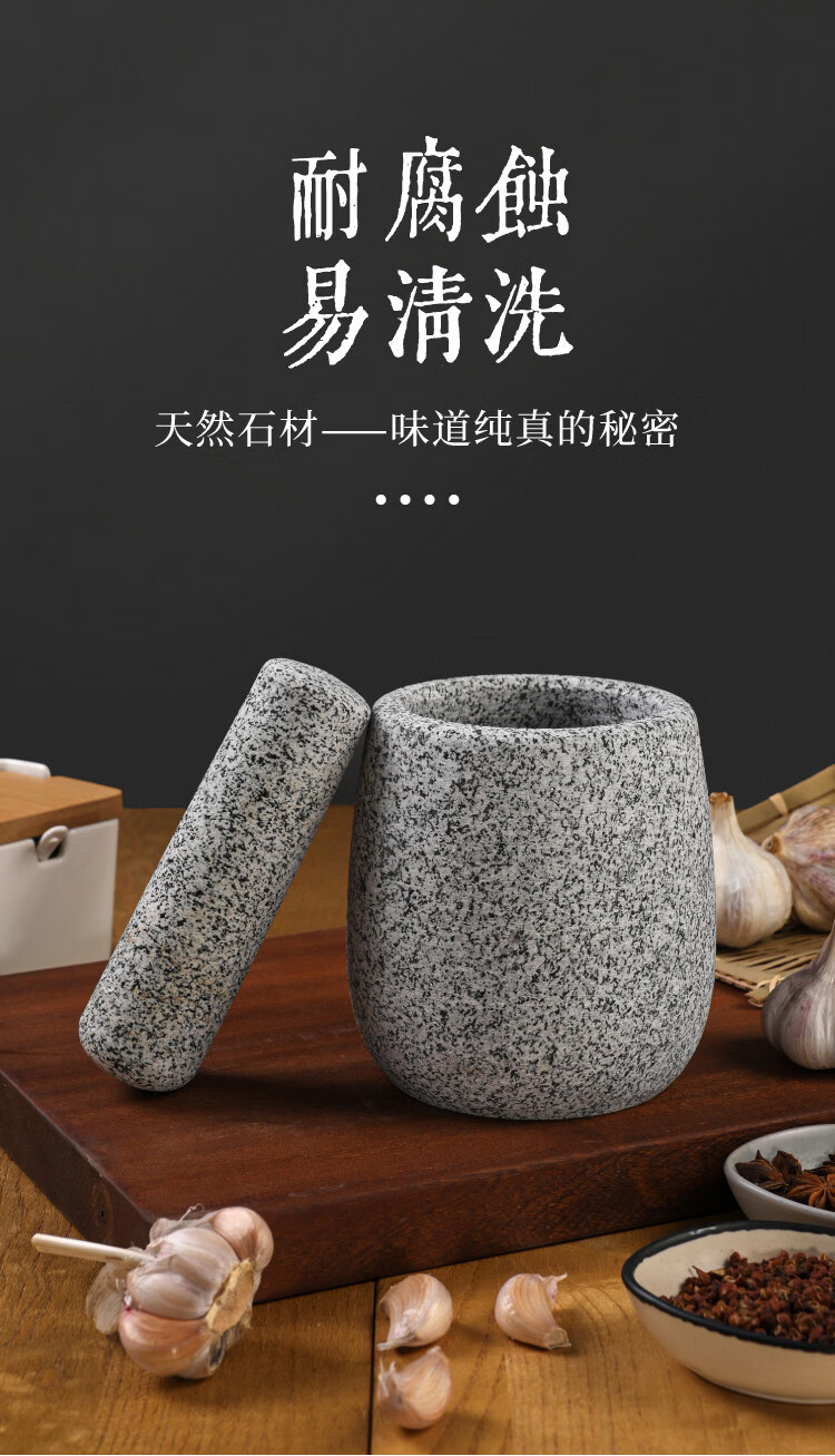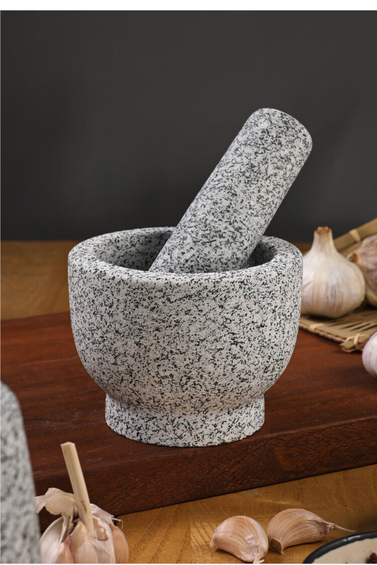 Tuojin household grinder stone mortar natural stone hand-made garlic mortar pound medicine jar garlic press garlic garlic press sesame white medium + lid