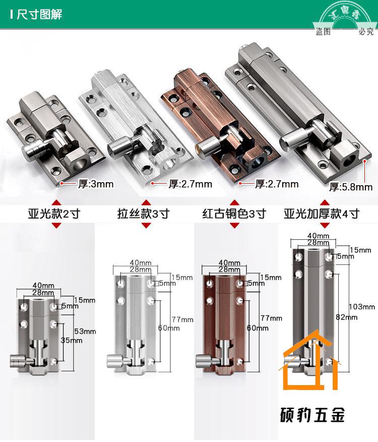 XMSJ aluminum alloy door latch door latch door buckle anti-theft latch lock thickened bathroom wooden door latch door latch door pin customization aluminum alloy latch - brushed silver 3 inches