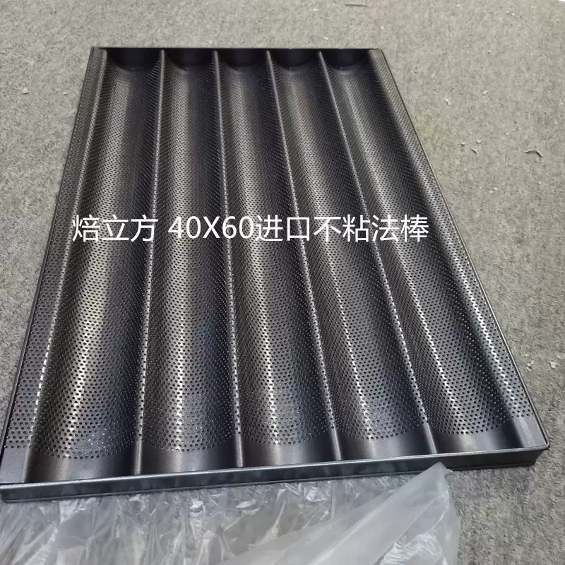 Yusenyi Five Cube, corrugated aluminum alloy, imported non-stick baking method, French bread baking mold, slotted baguette, black imported non-stick five-slot mold 40X60cm