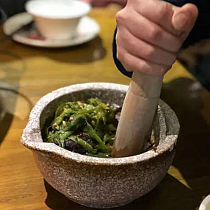 Tuojin Japan imported high-quality Hunan dish, eggplant, pepper, preserved egg, tea bowl, hand-pounded ginger, garlic, peanut grinding, bluestone bowl set