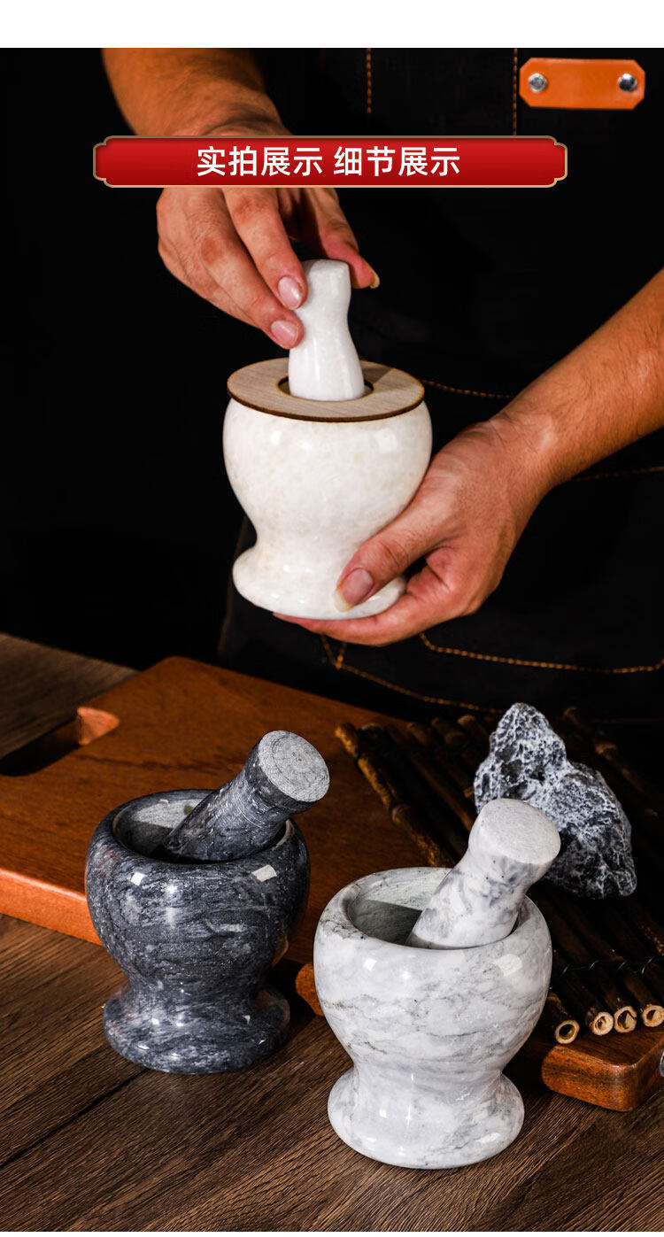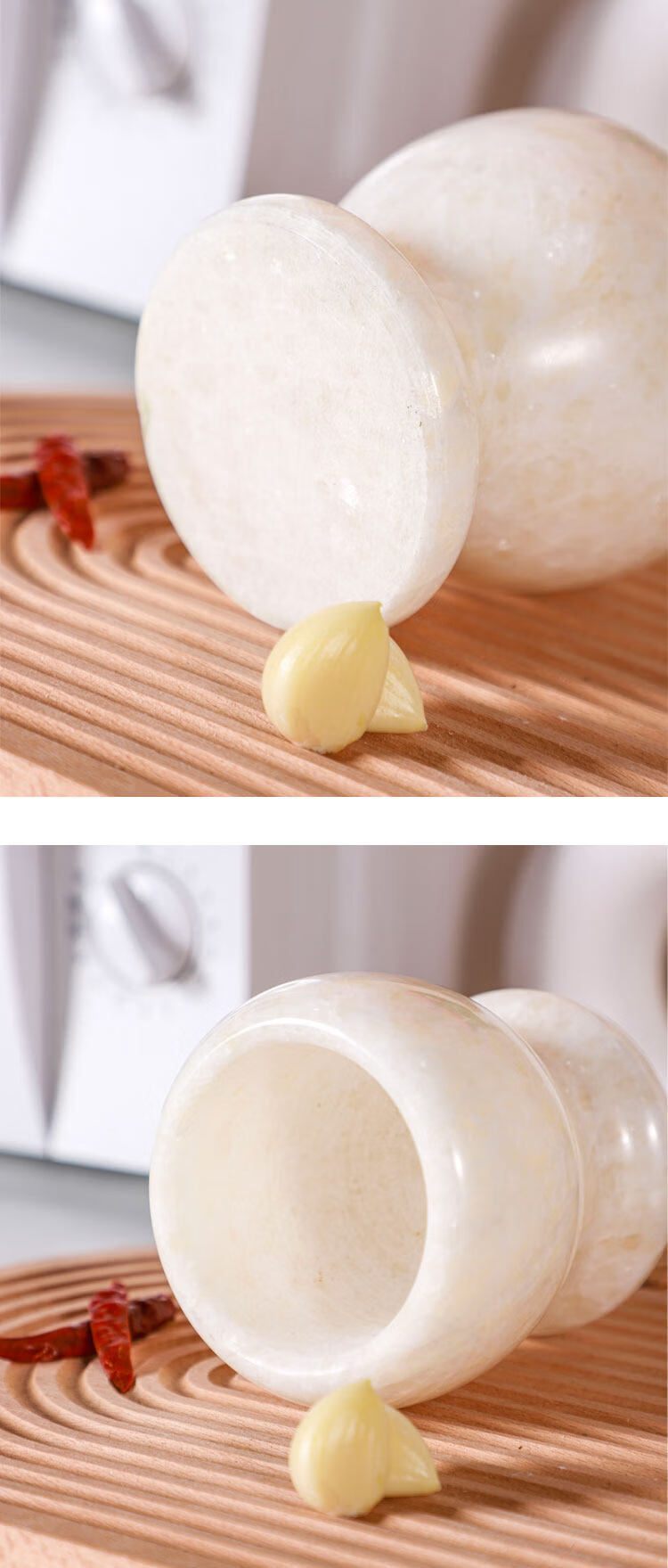 Tuojin imported quality jade garlic mortar from Japan, natural stone garlic press, stone mortar, garlic grinder, household pounder, 11 cm diameter, calm black, tank + stone hammer + lid