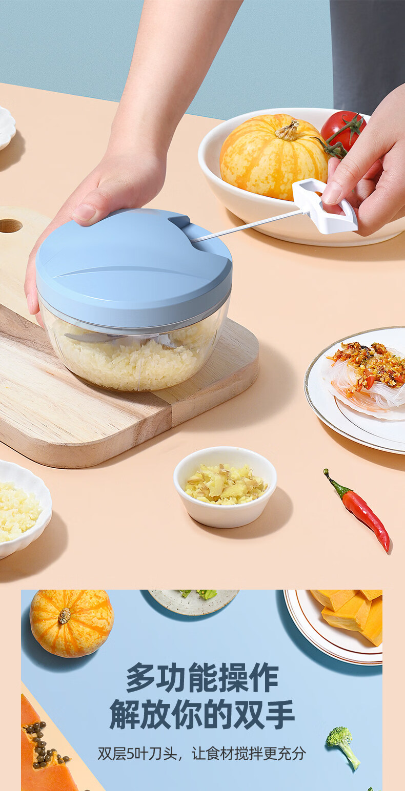 Tuojin imported high-quality garlic artifact from Japan, pull garlic, pound garlic, mince garlic, press garlic, manually mince garlic, blue small size_ 3 blades_ suitable for 1~500ml