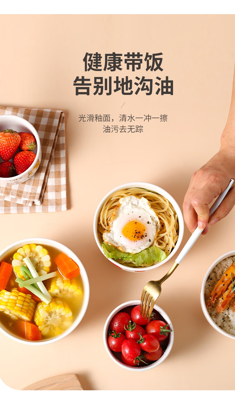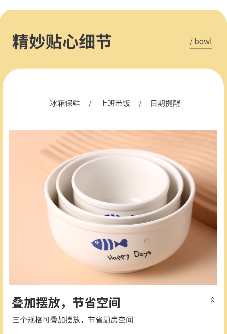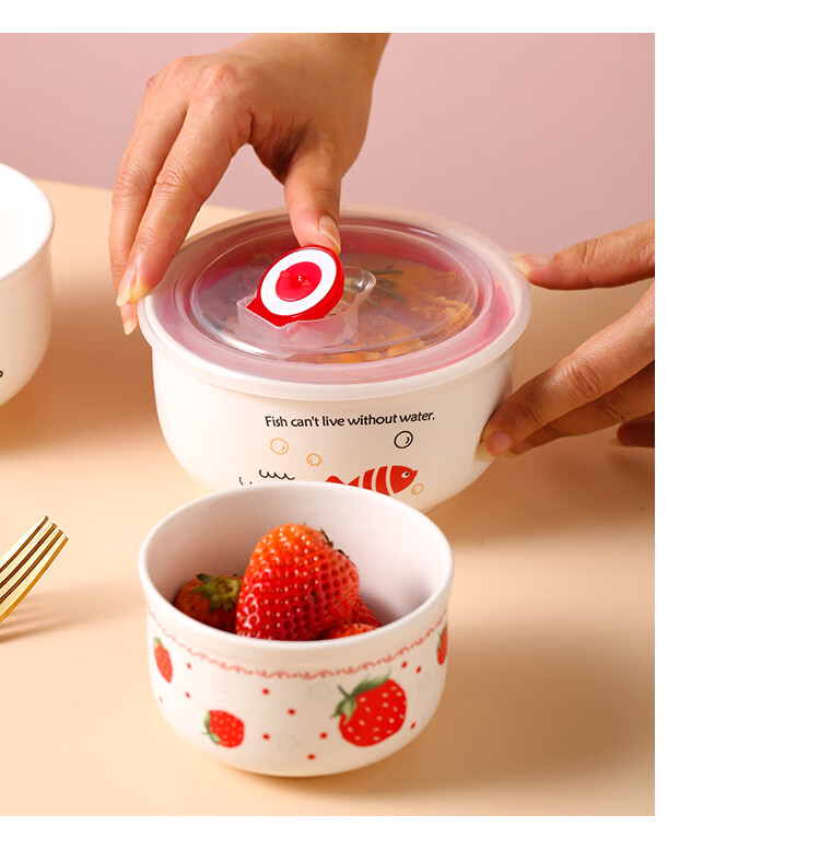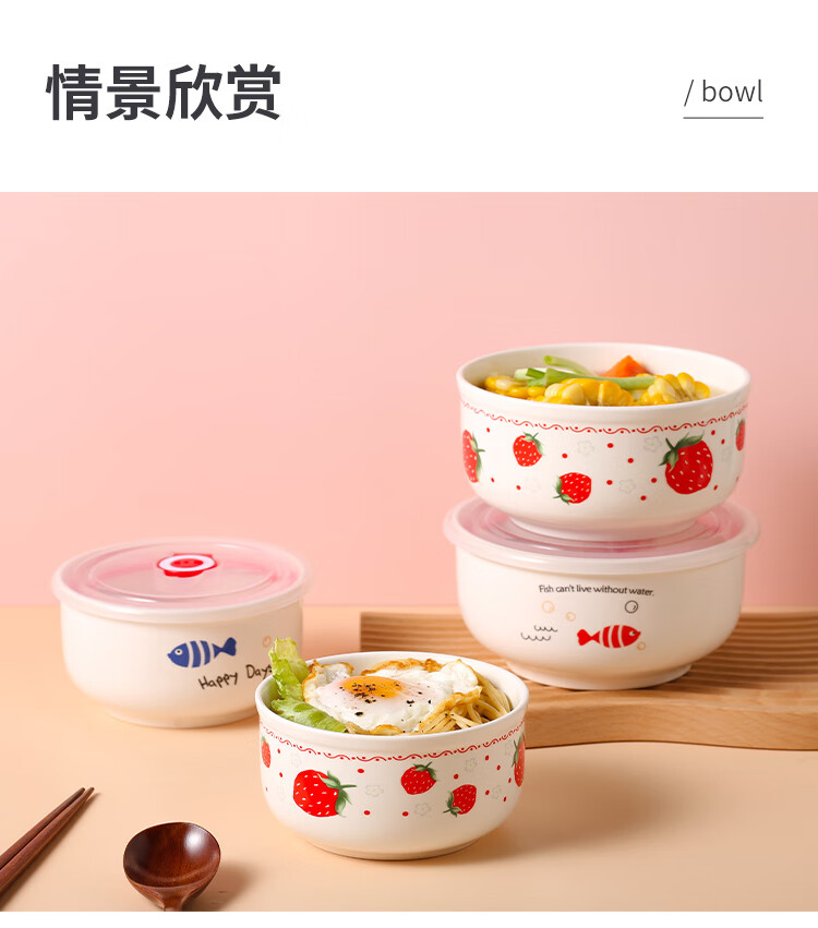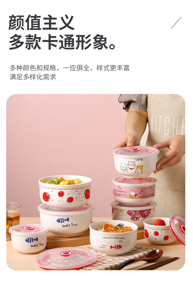 Ear Rhyme ceramic fresh-keeping bowl three-piece set instant noodle bowl microwave heating lunch box with lid sealed lunch box microwaveable large, medium and small set gold silk hibiscus 0ml