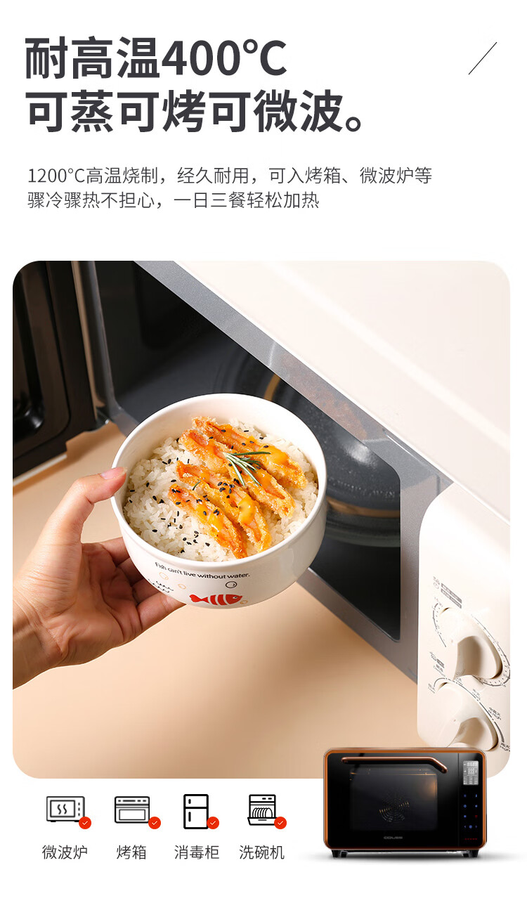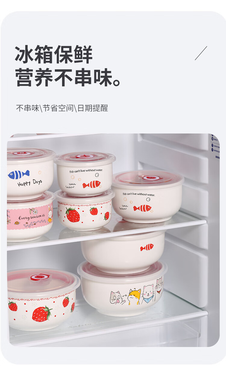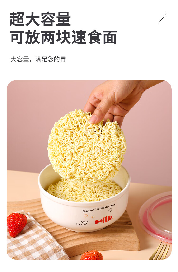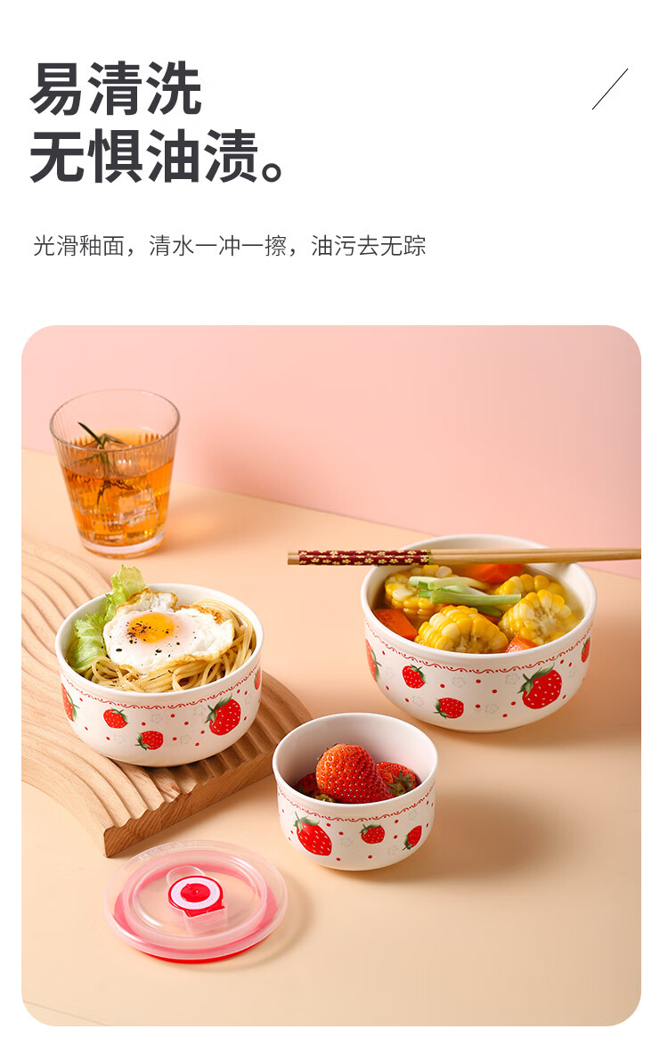 Ear Rhyme ceramic fresh-keeping bowl three-piece set instant noodle bowl microwave heating lunch box with lid sealed lunch box microwaveable large, medium and small set gold silk hibiscus 0ml