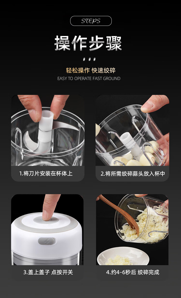 Garlic pounder electric garlic stirrer garlic chili garlic beater household baby meat grinder mini meat grinder garlic grinder 250ml comes with charging cable