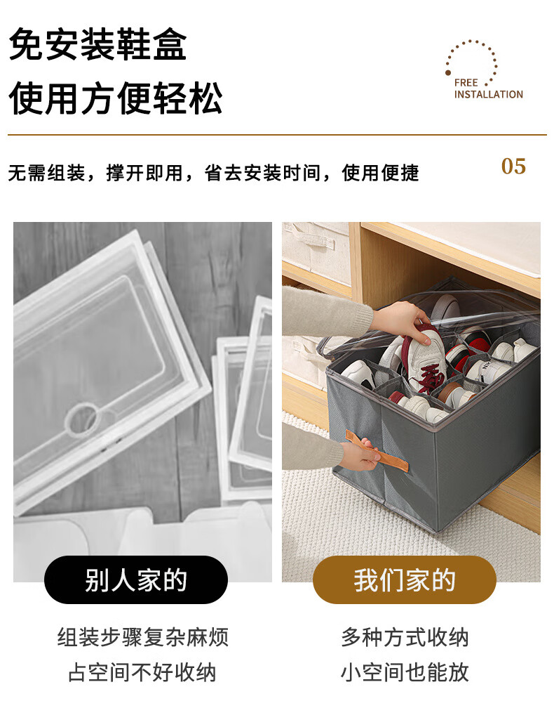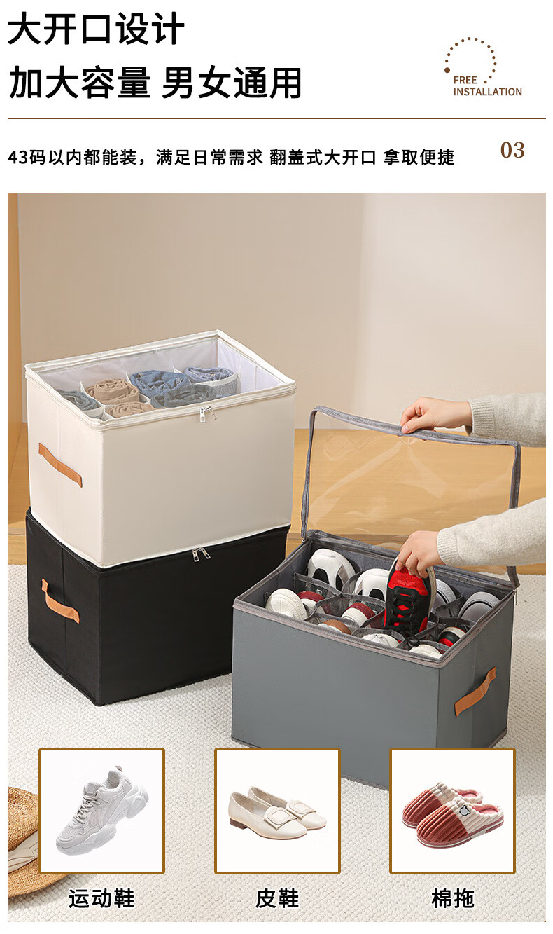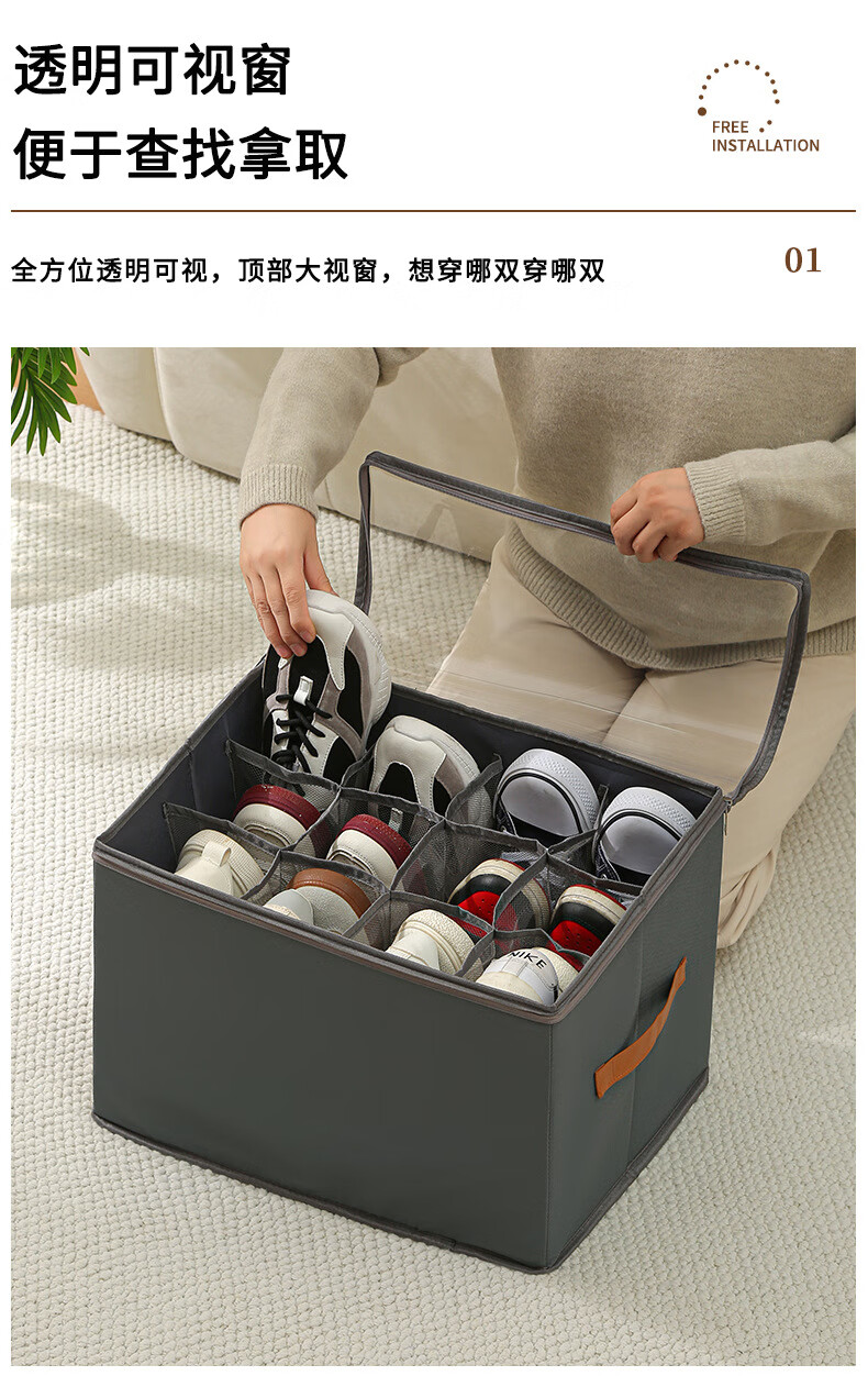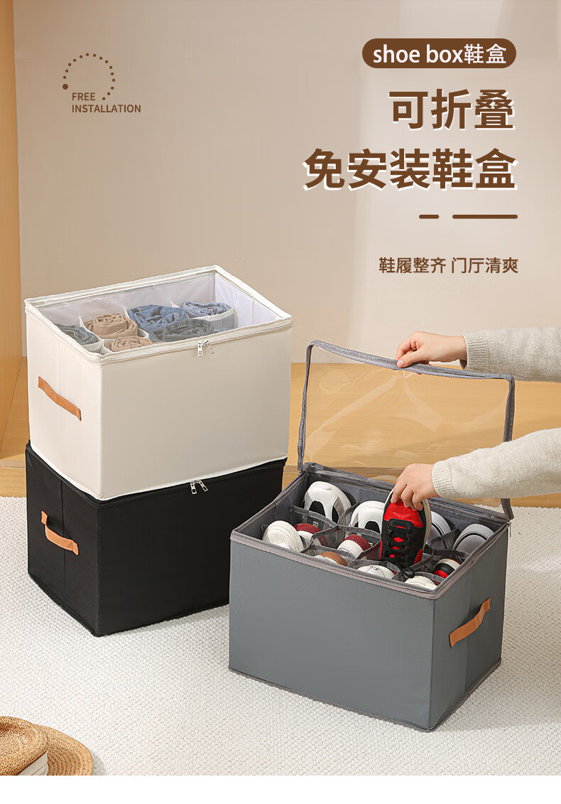 Shoe box new 2025 shoe storage box artifact organizer box for slippers storage box large capacity 43 compartments shoe box black