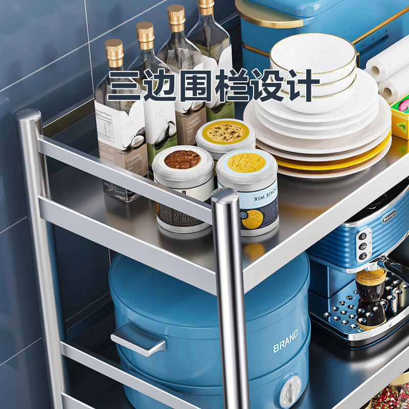 Kitchen stainless steel storage rack floor-standing multi-layer integrated cabinet storage dining cabinet storage microwave shelf household goods stainless steel length 60 width 40 height 95 three-layer one cabinet