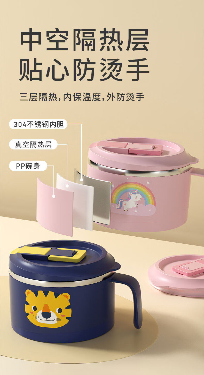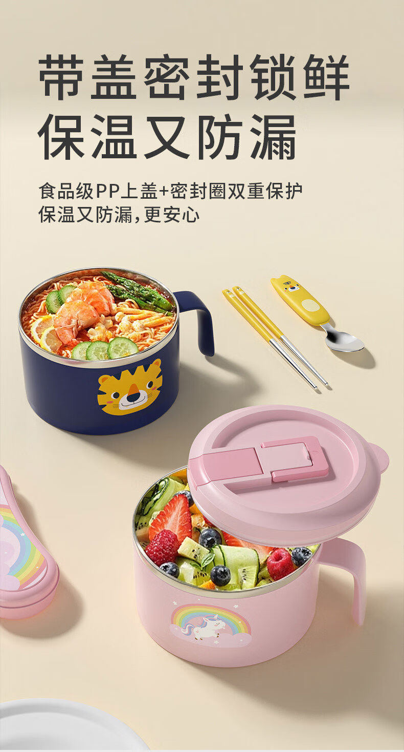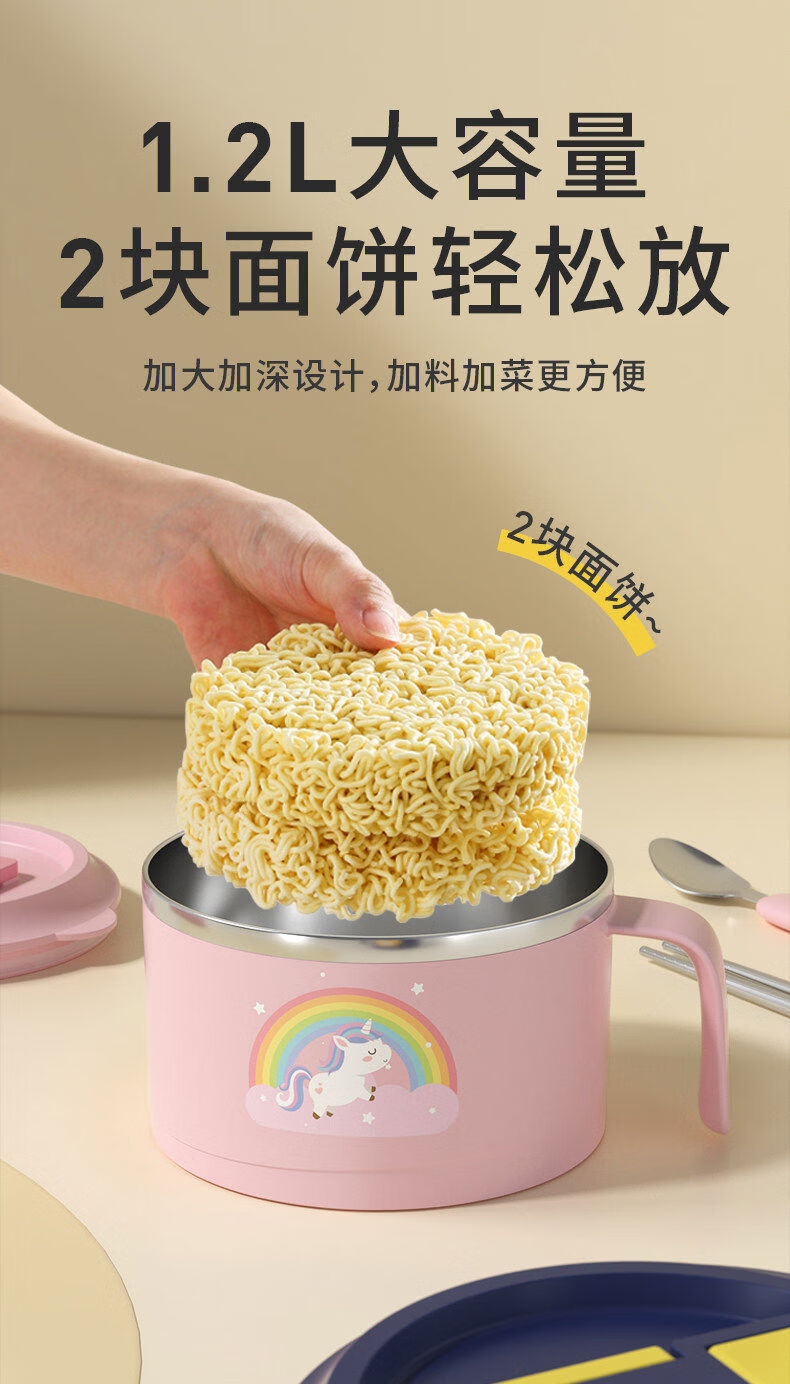 Korea Baby Large Capacity Instant Noodle Bowl Canteen Rice Bowl Instant Noodle Bowl with Cover Instant Noodle Bowl + Spoon and Chopstick Box + Bag