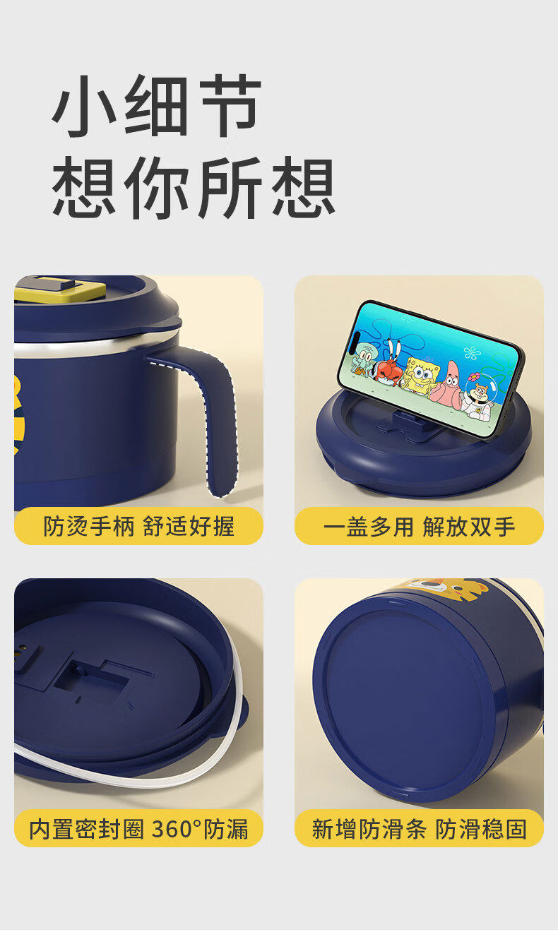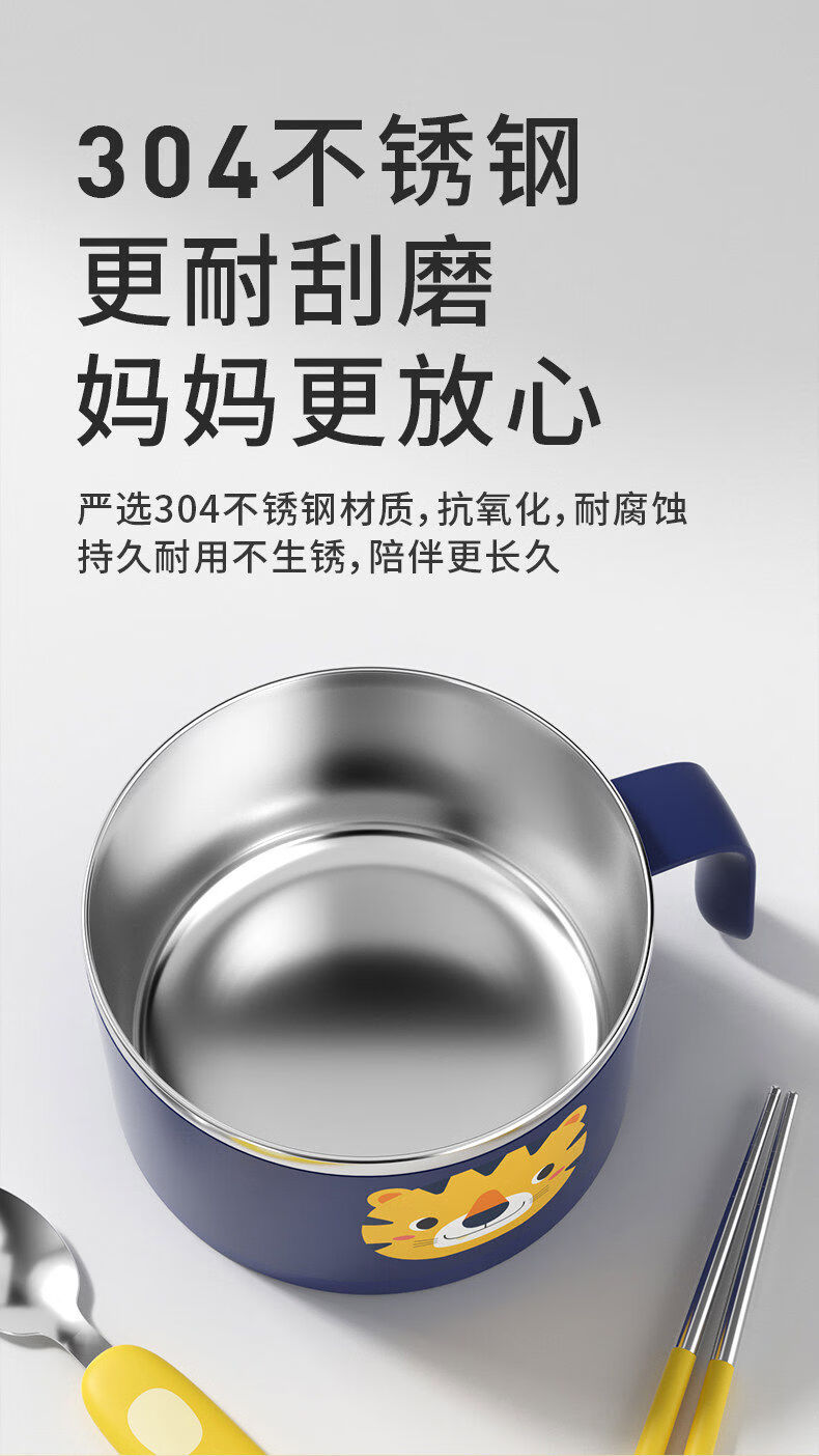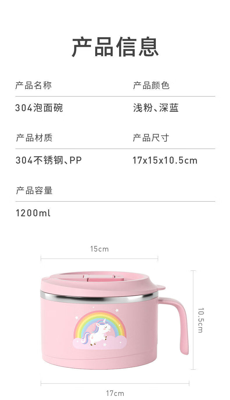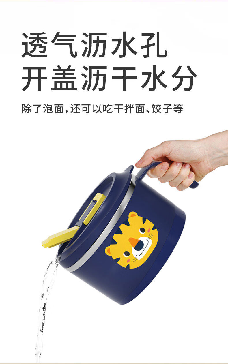 Korea Baby Large Capacity Instant Noodle Bowl Canteen Rice Bowl Instant Noodle Bowl with Cover Instant Noodle Bowl + Spoon and Chopstick Box + Bag