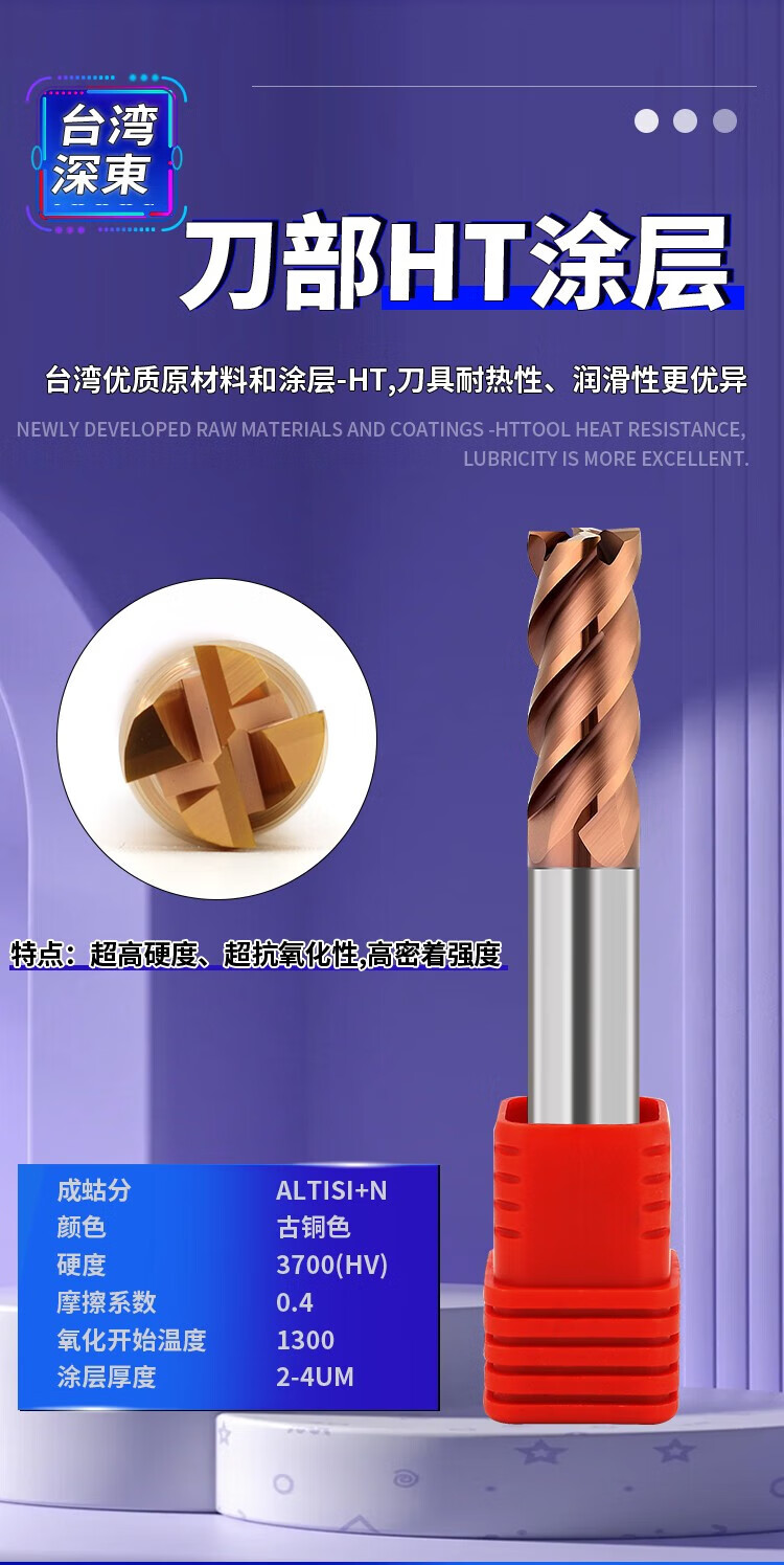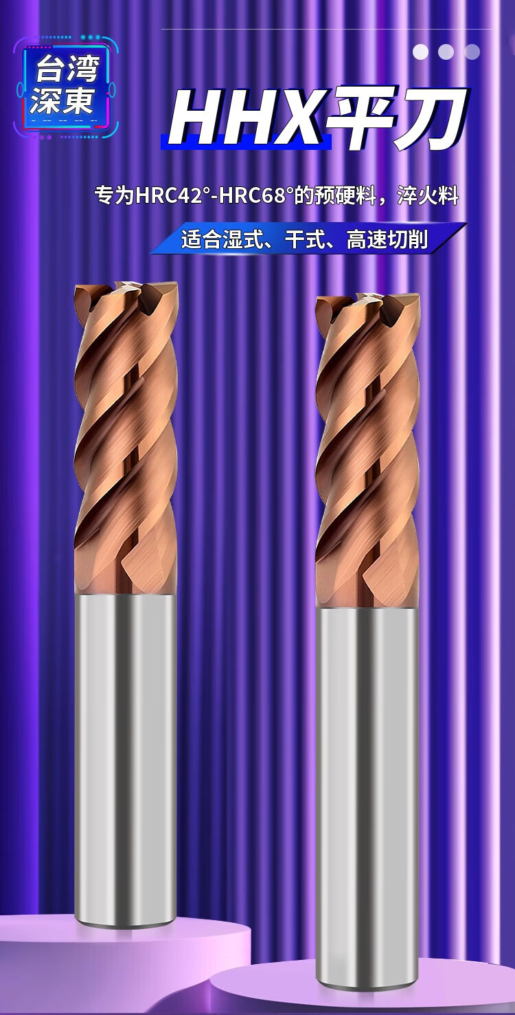 HHX flat four-edged tungsten steel end milling quenched alloy coated CNC flat bottom gong x3xD4x50Lx4F