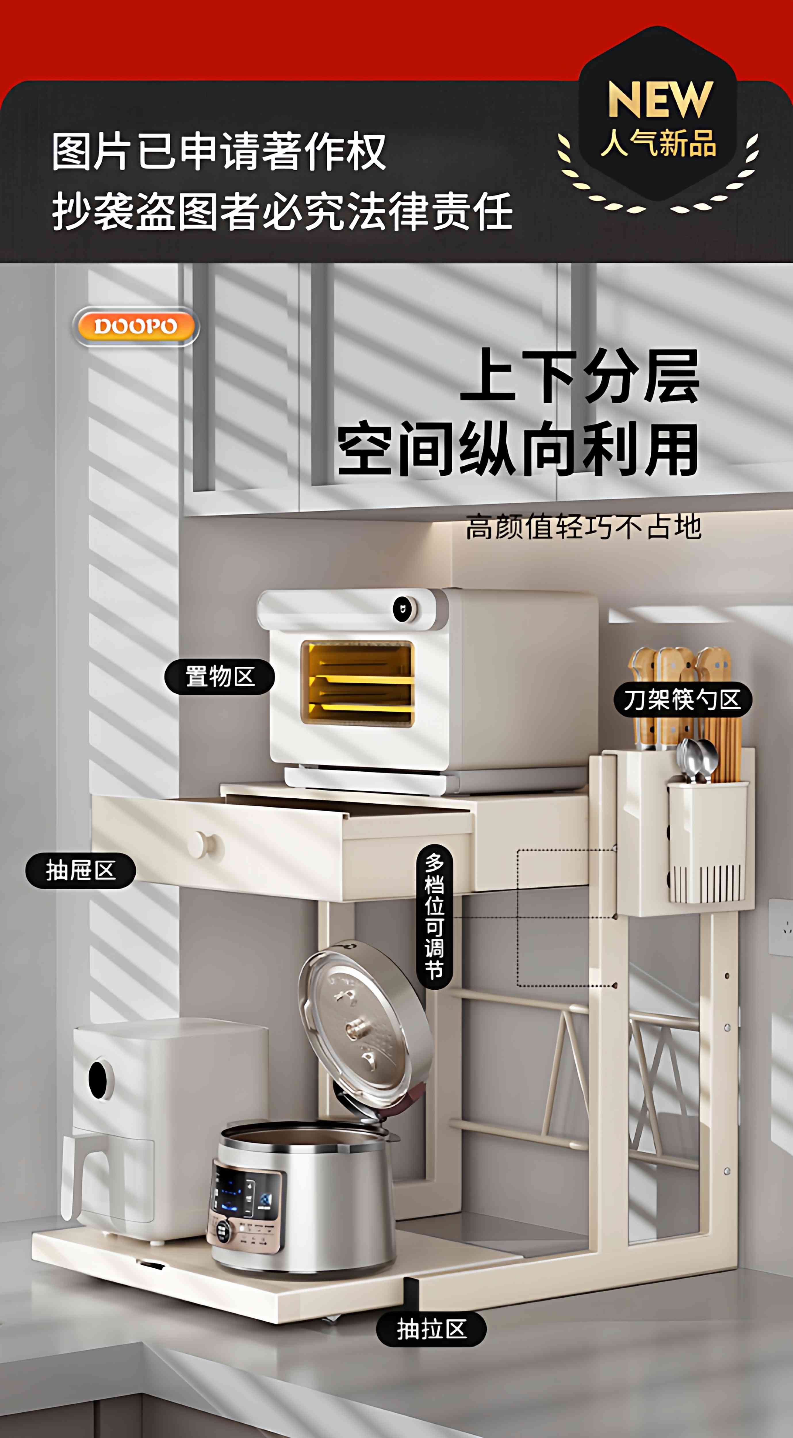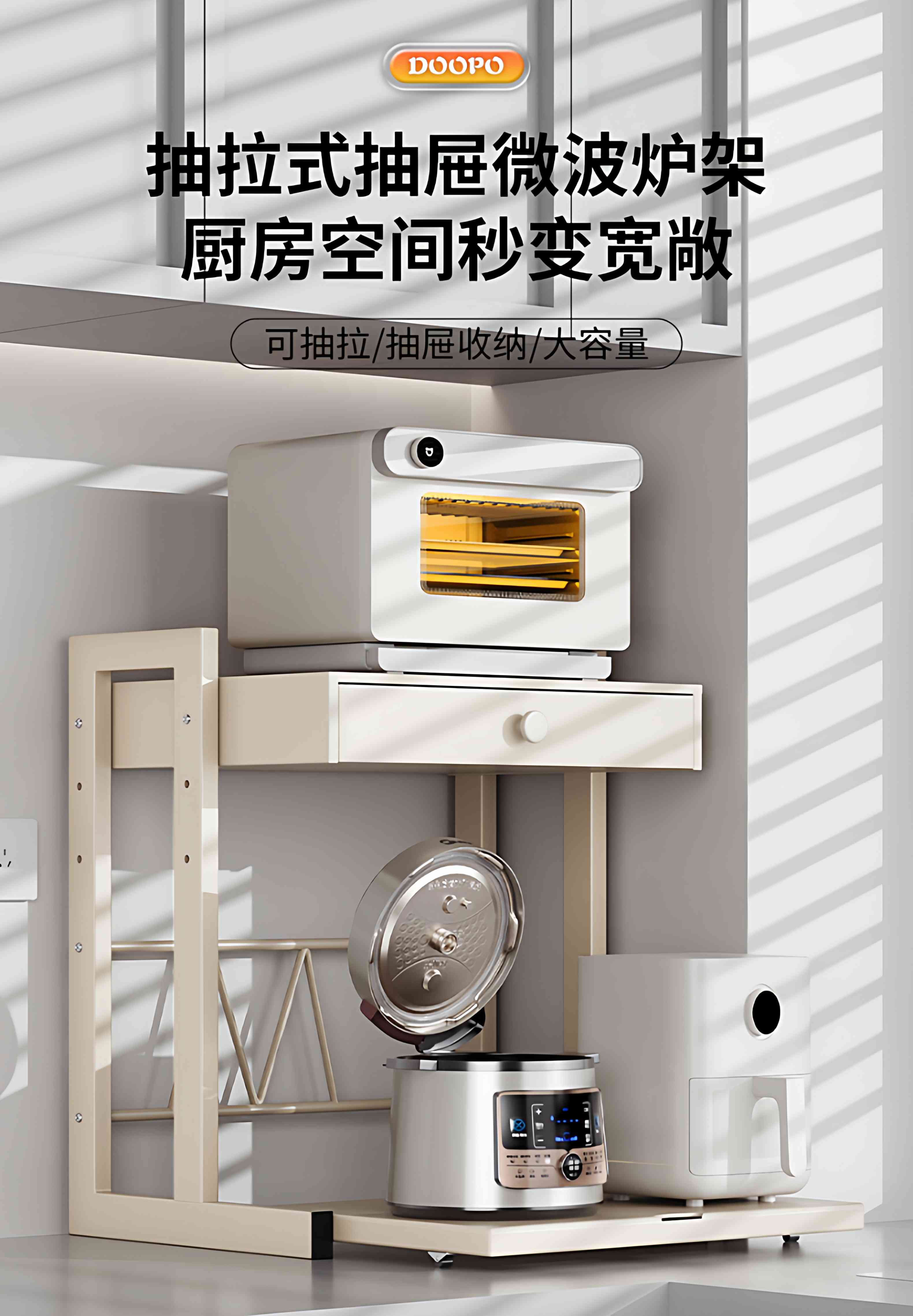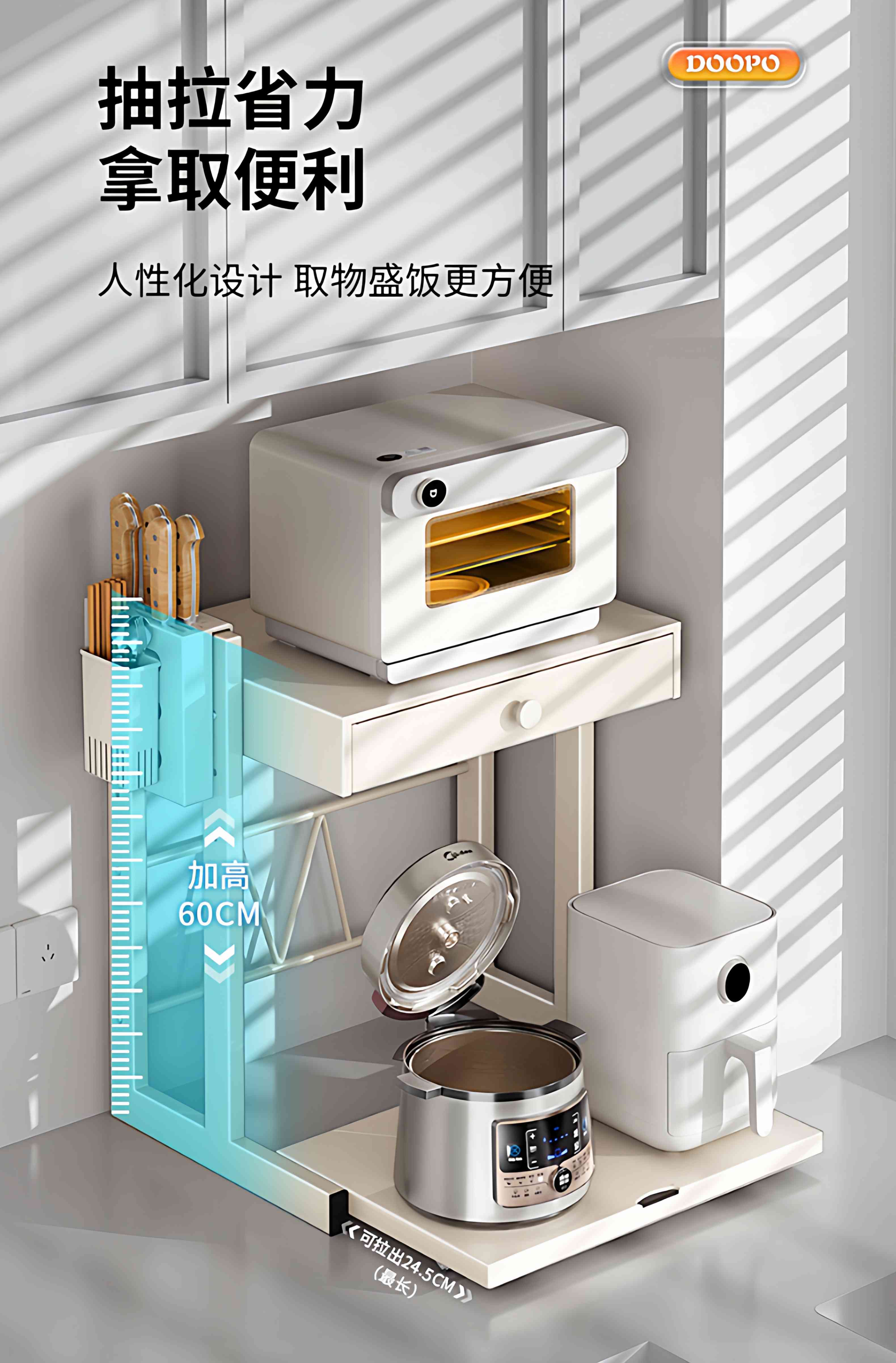 NQYW drawer-type microwave oven storage rack countertop double-layer integrated pull-out rice cooker oven storage bracket drawer model with pull-out 50cm fully equipped with adjustable shelf height chopsticks and buckets + 3