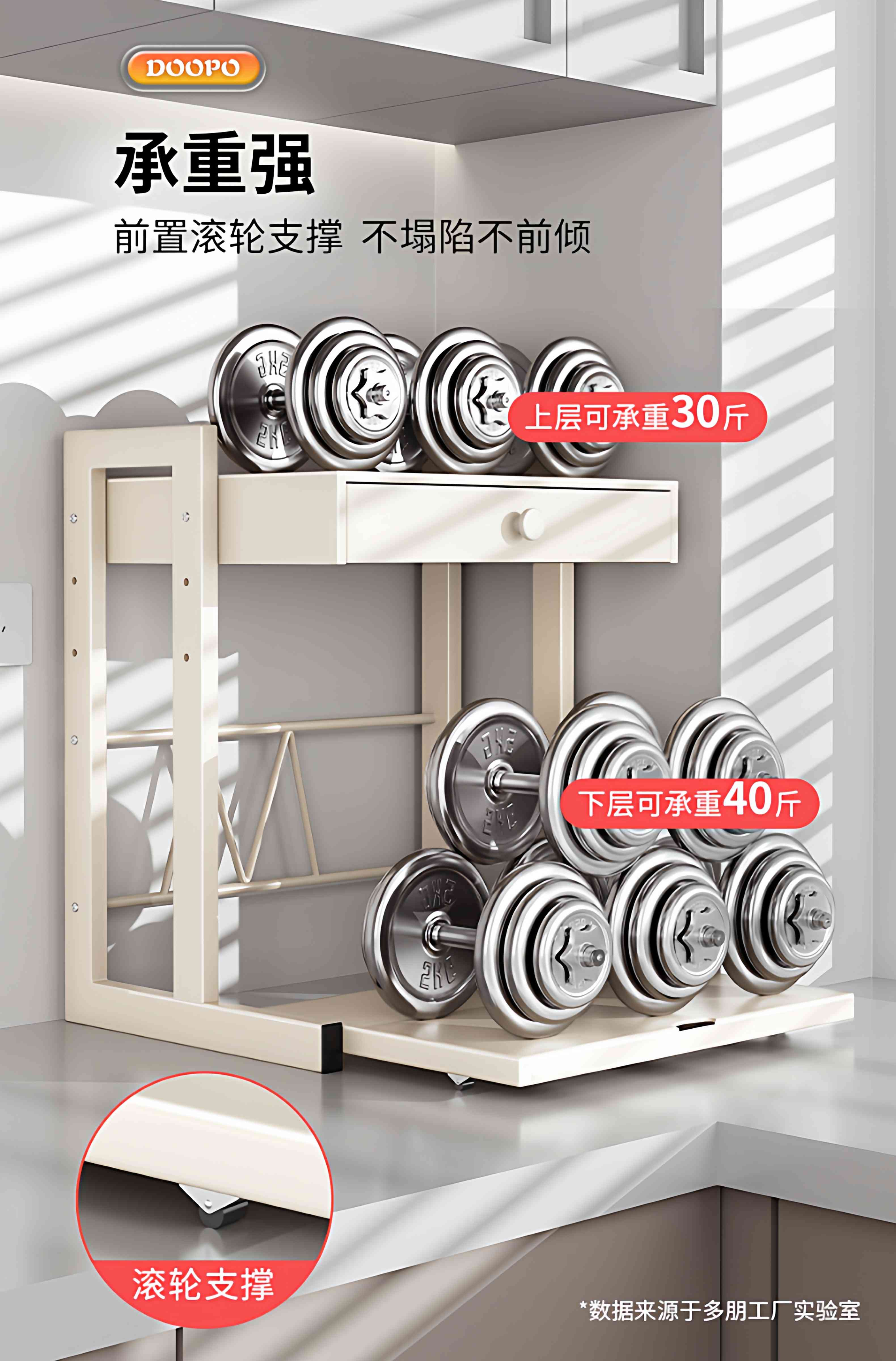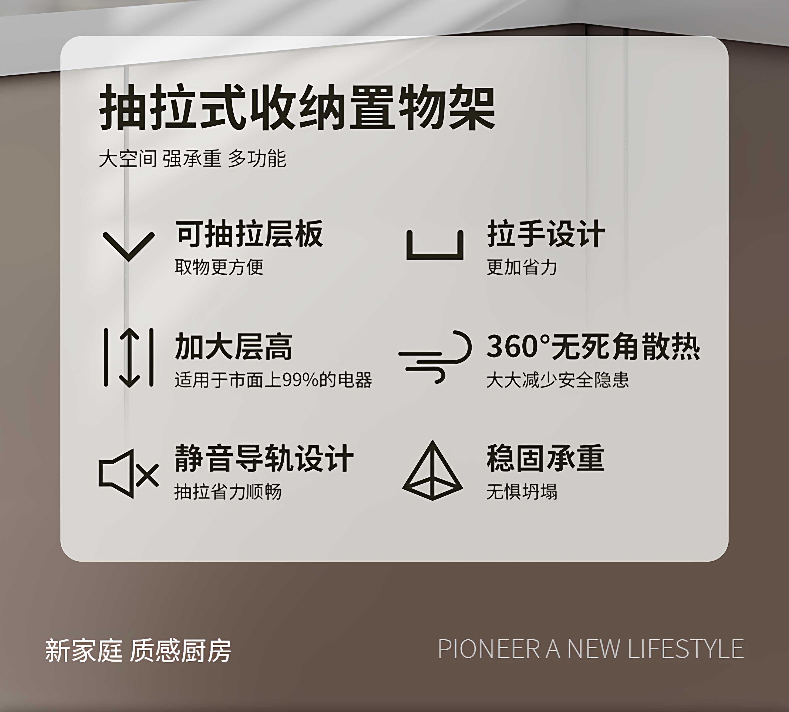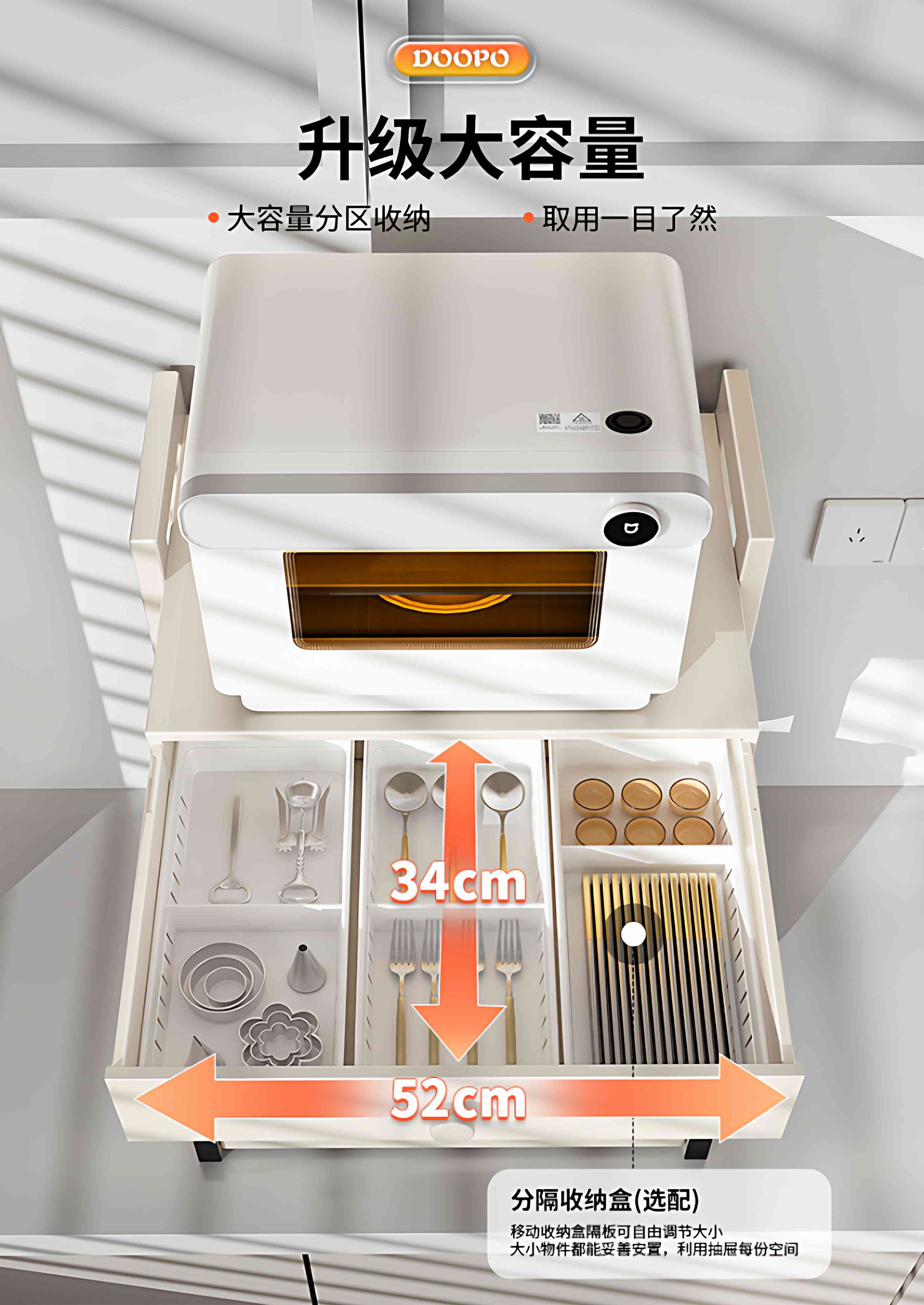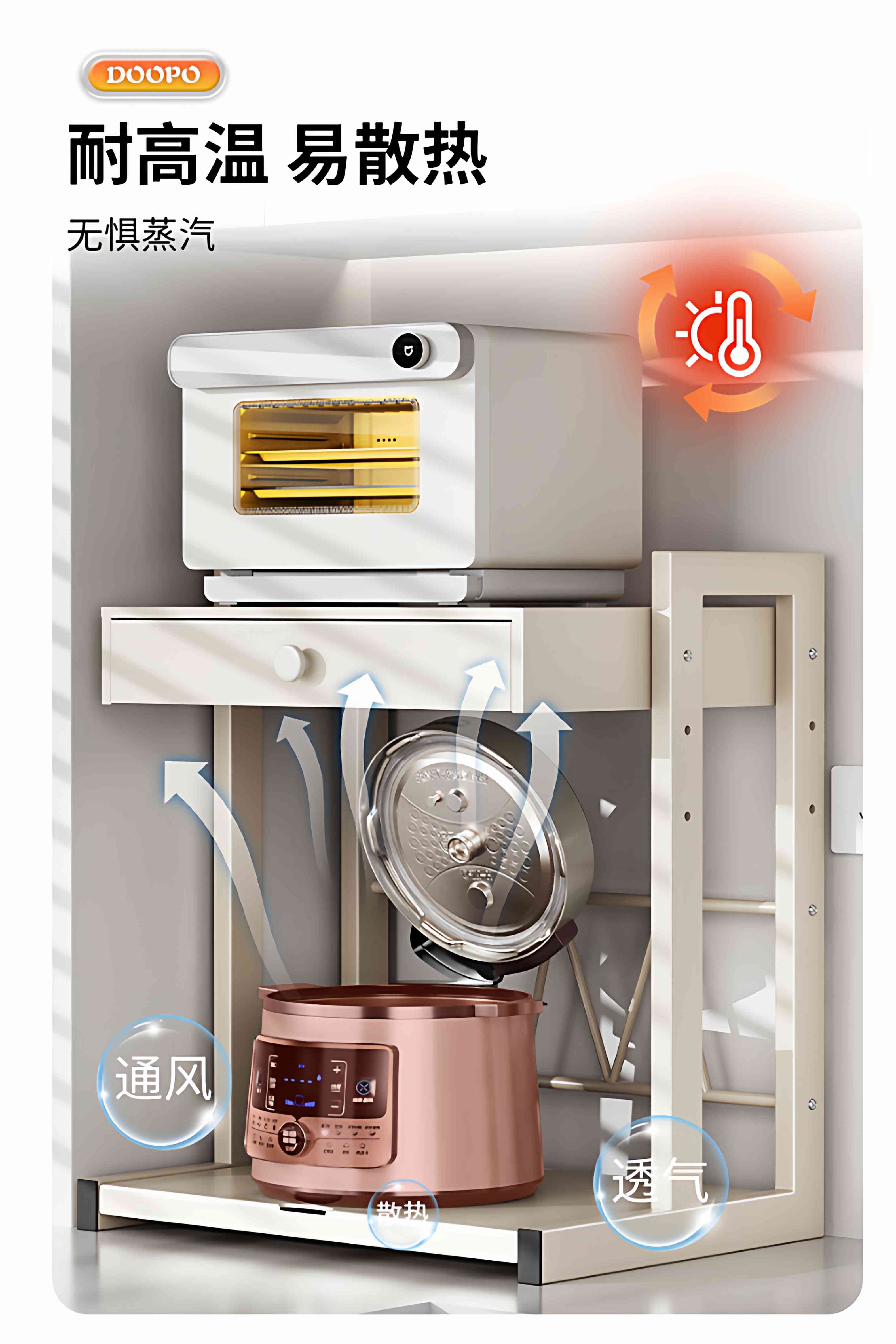 NQYW drawer-type microwave oven storage rack countertop double-layer integrated pull-out rice cooker oven storage bracket drawer model with pull-out 50cm fully equipped with adjustable shelf height chopsticks and buckets + 3