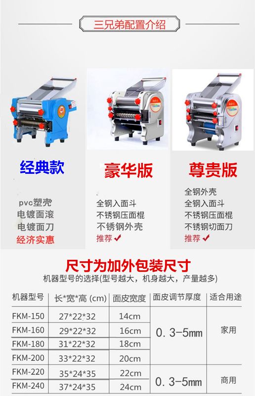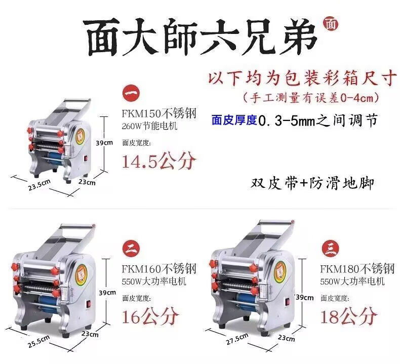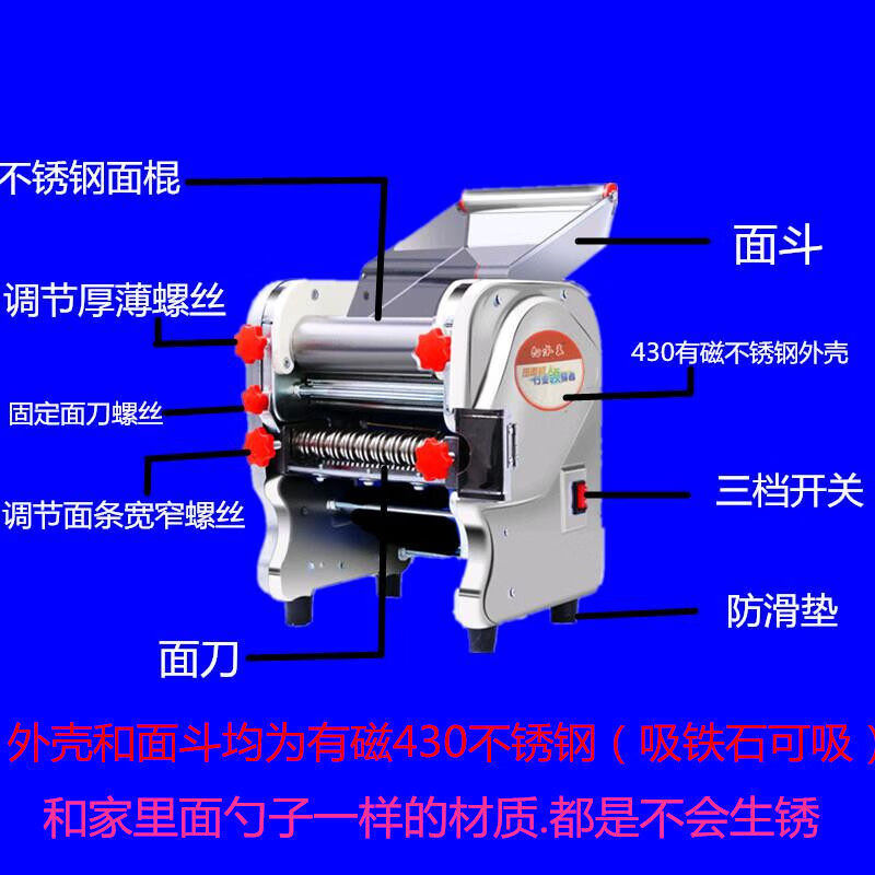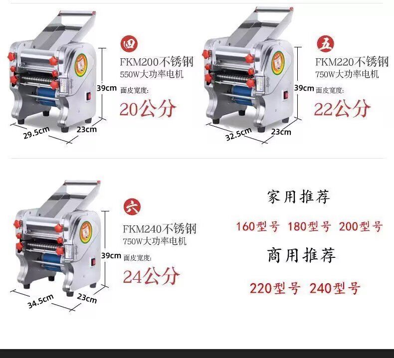 Yonghuan stainless steel electric household noodle machine commercial noodle machine semi-automatic dumpling skin machine chaos skin machine deluxe version 200 model 550W stainless steel noodle roller plated knife
