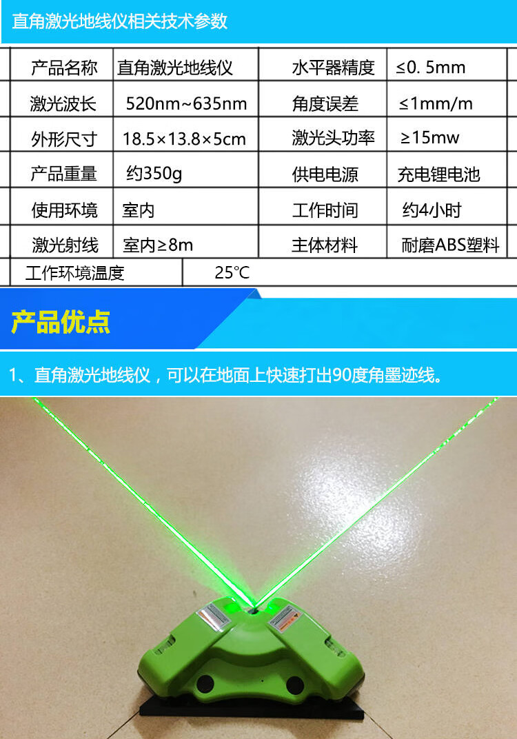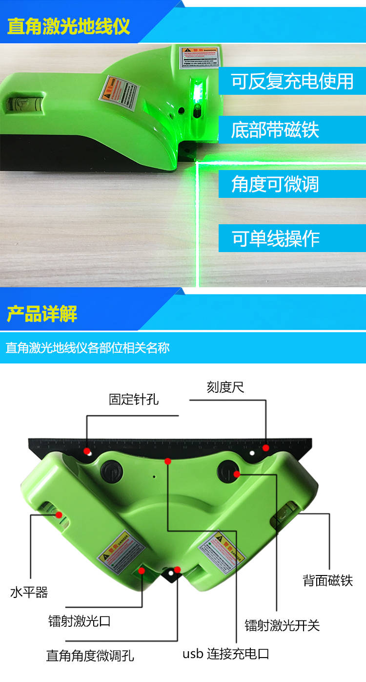 RSRDDY green light rechargeable 90 degree laser ruler right angle ground meter green light level meter level ruler 90 degrees ruler 90 degrees ruler 90 degrees