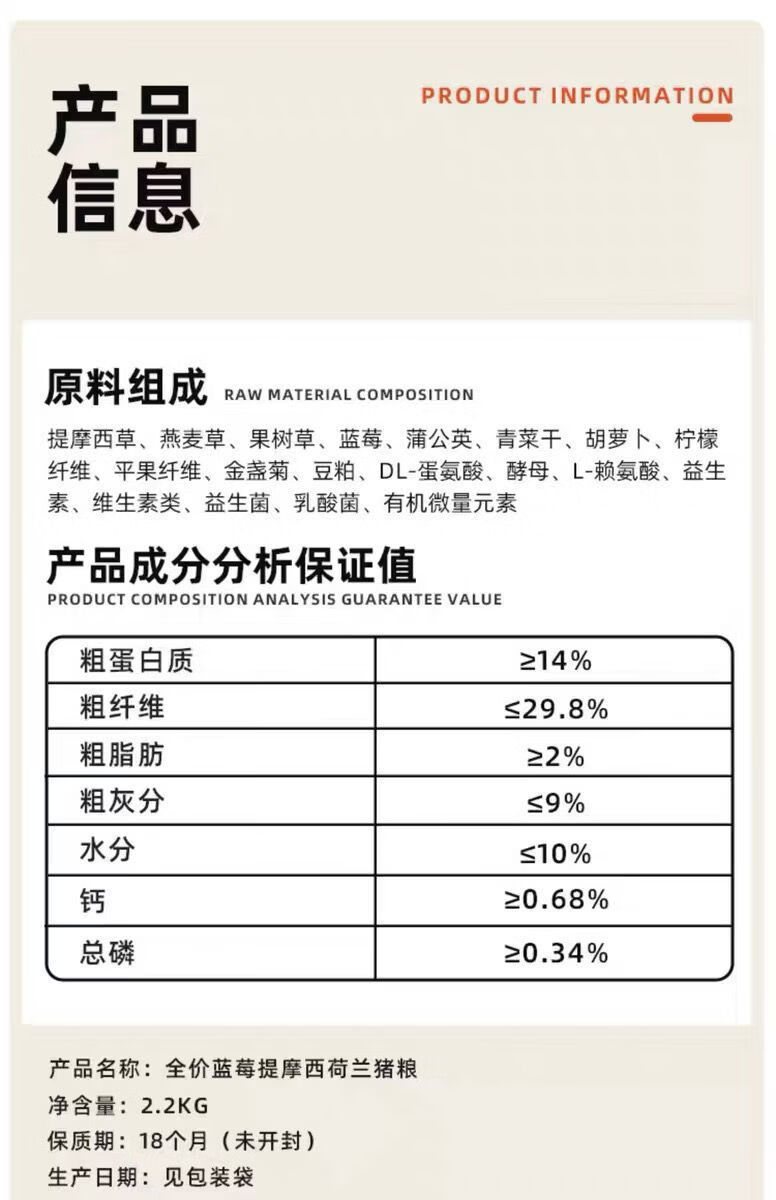 Cattle pet multi-provincial high-quality full-price guinea pig food 22kg guinea pig guinea pig food high-quality guinea pig food 2 points 2 kg