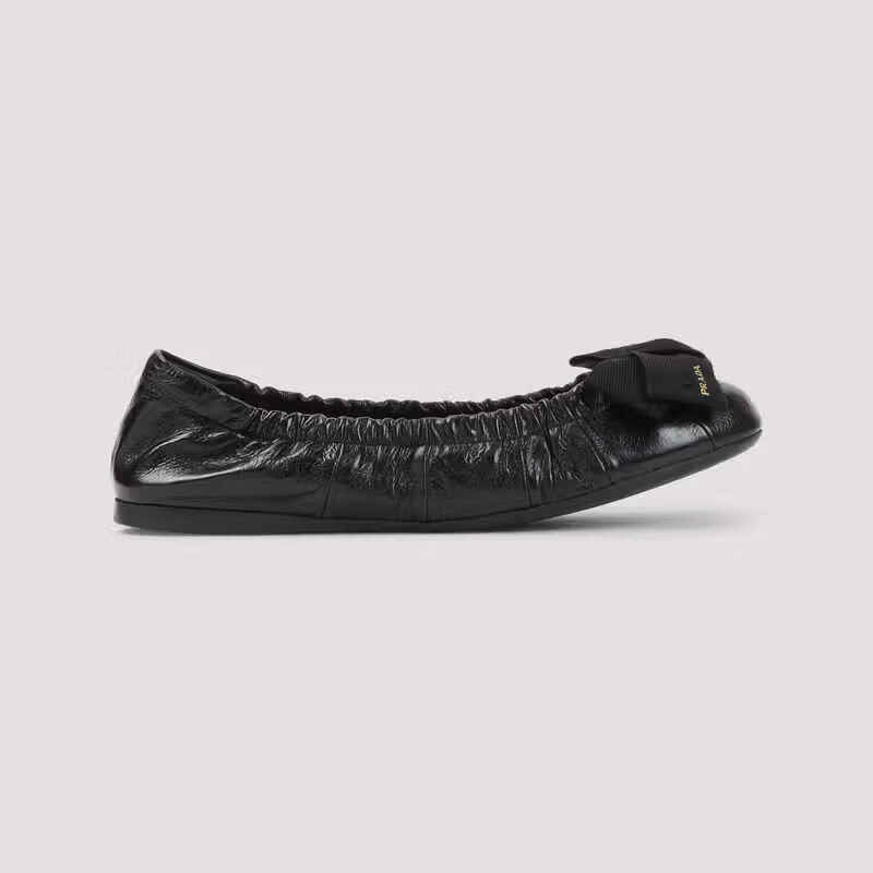 PRADA SS26 Light Luxury Women's Black Leather Ballet Flats BLACK 20 | 37.5 IT