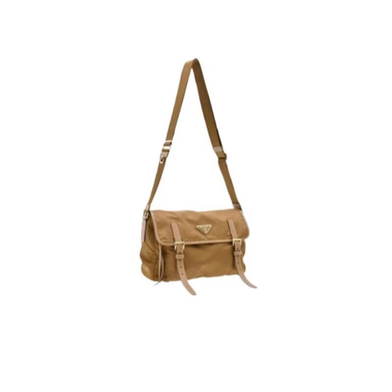 PRADA women's shoulder bag, lightweight for daily storage, wear-resistant, durable, convenient to open and close, regenerated nylon, brown, one size fits all