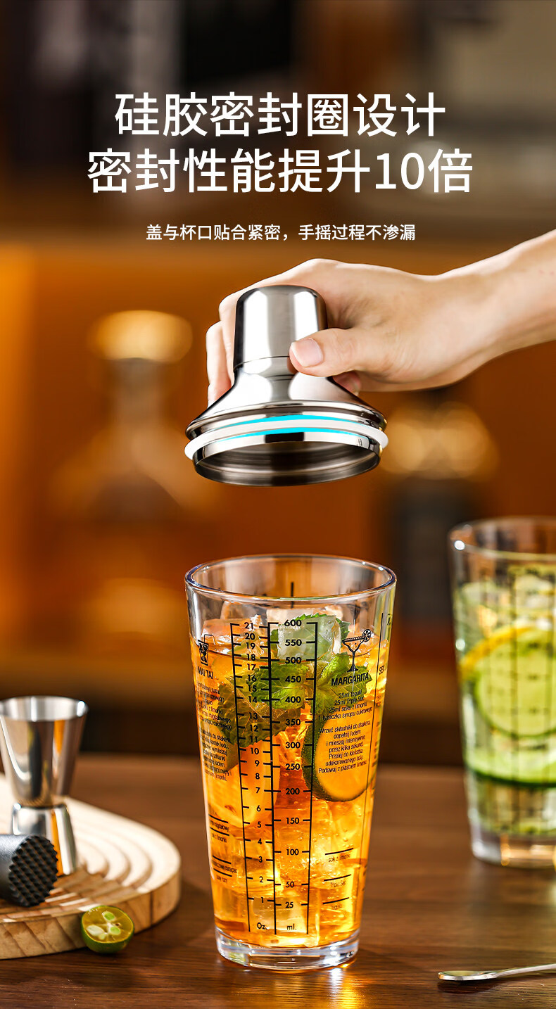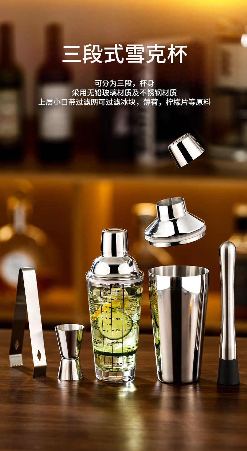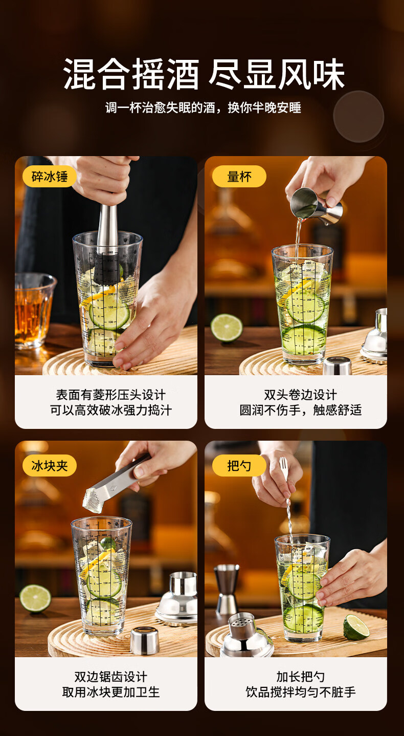 Shijanu 304 stainless steel mixer glass shaker cup hand shaker cocktail shaker making tool mixer set 2-piece set 400ml glass + 26cm bar spoon
