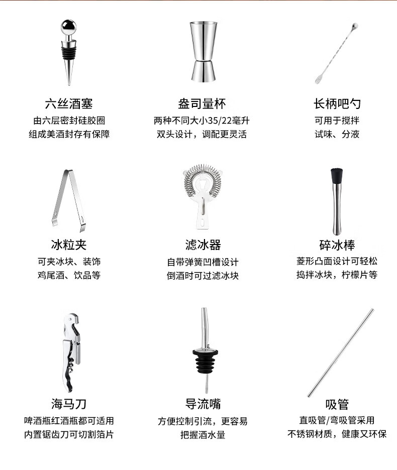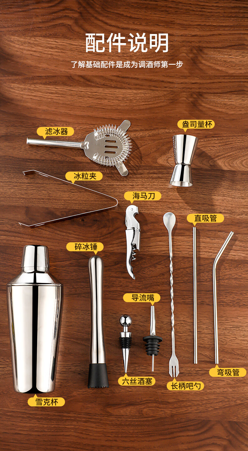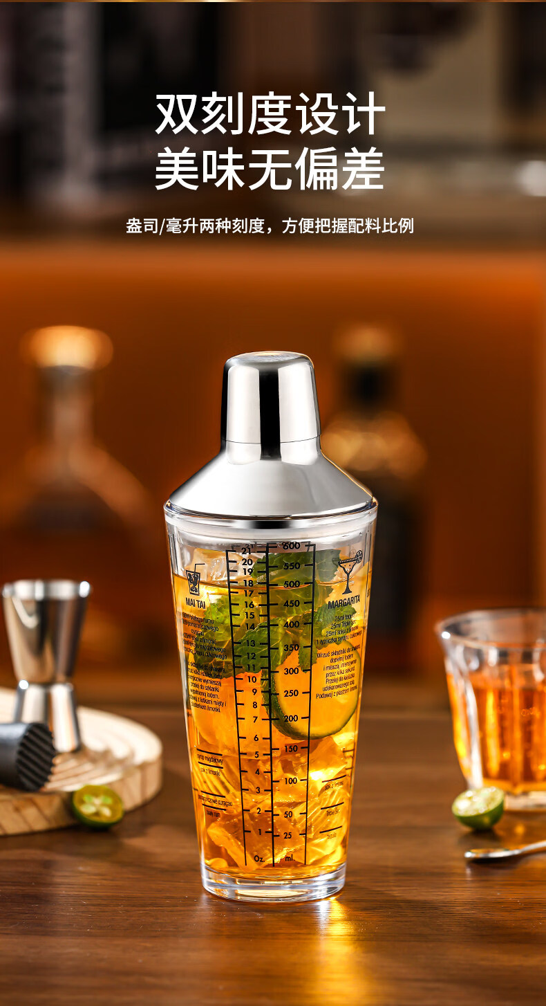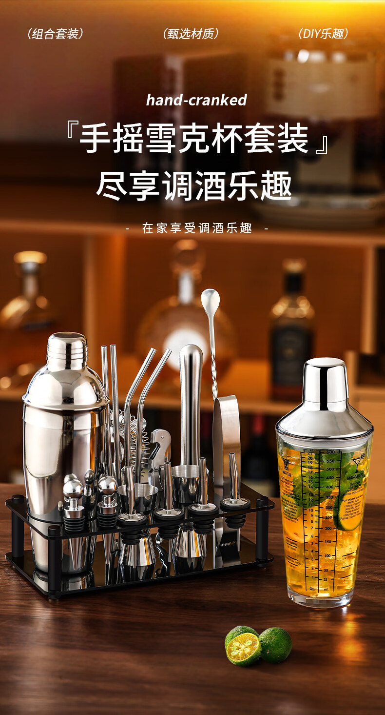 Shijanu 304 stainless steel mixer glass shaker cup hand shaker cocktail shaker making tool mixer set 2-piece set 400ml glass + 26cm bar spoon