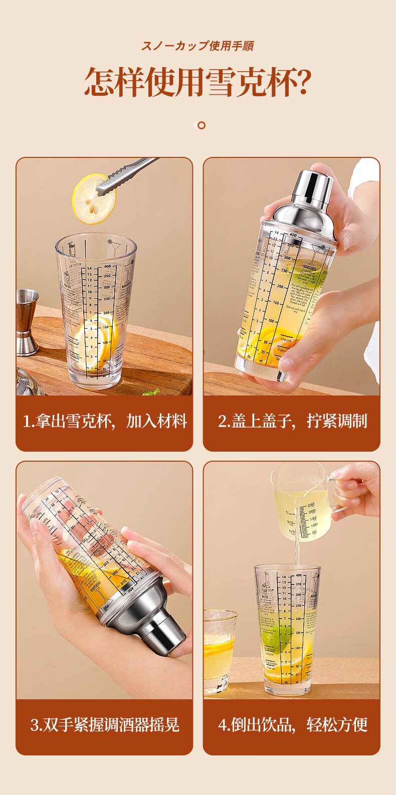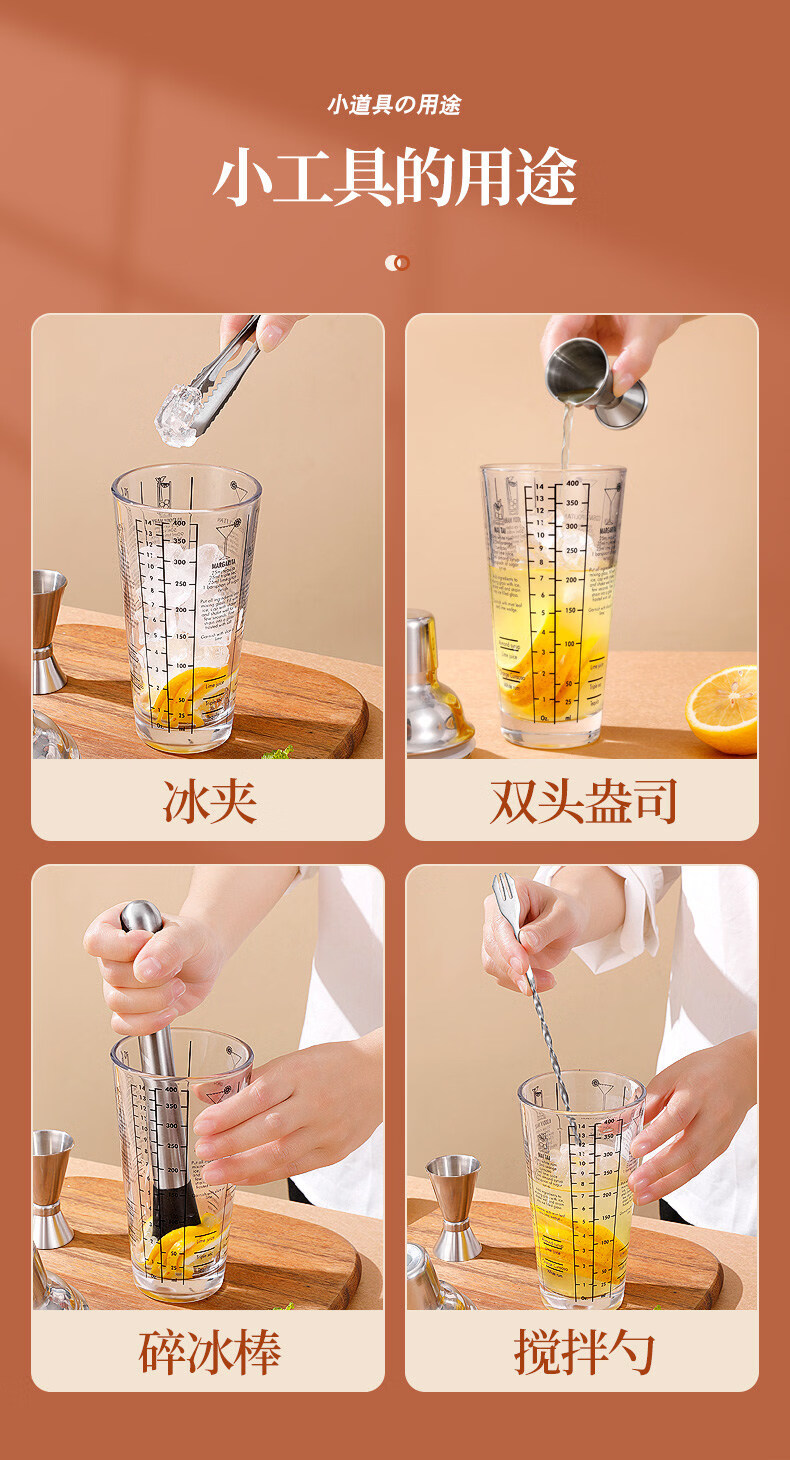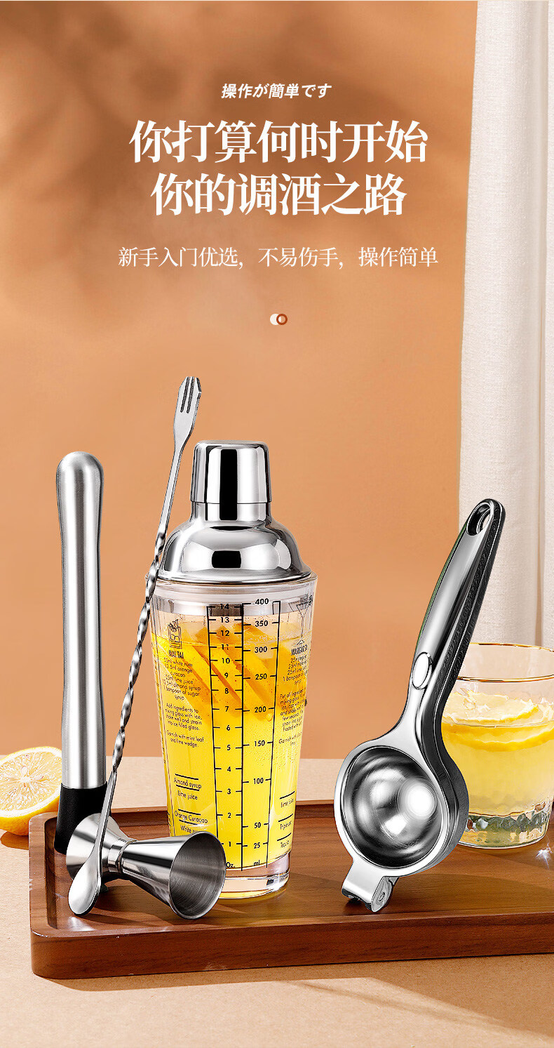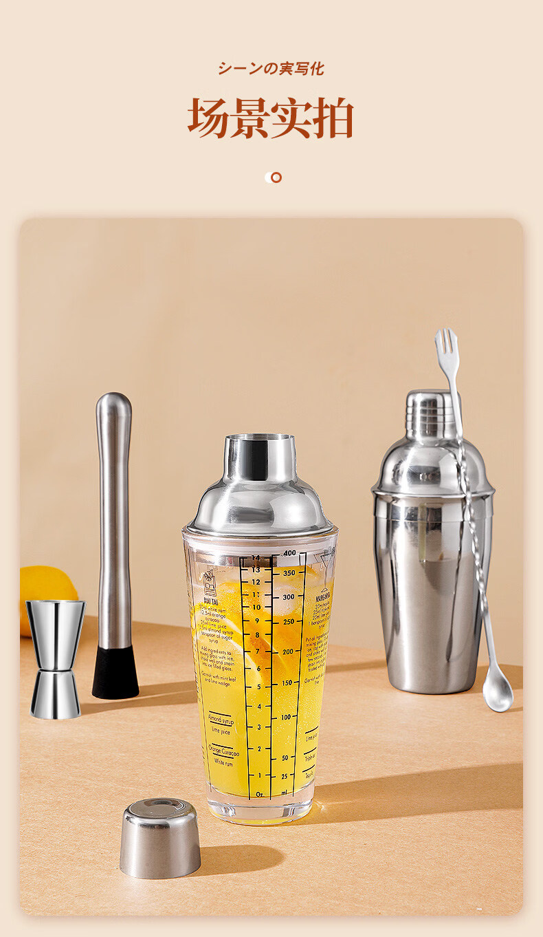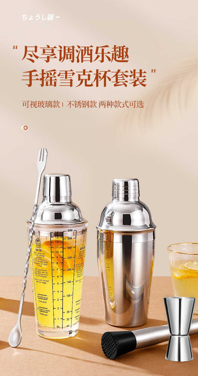 Shijanu glass shaker cup cocktail set lemon tea set tool shaker cocktail stainless steel shaker shaker glass shaker cup 600ml
