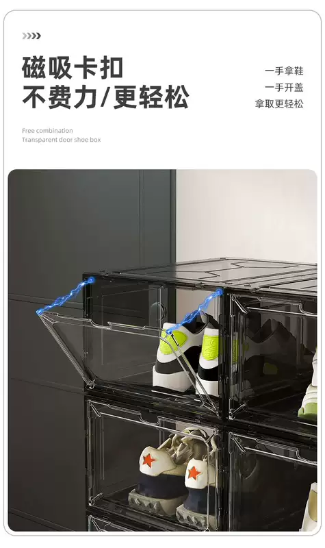 Yusenyi aj shoe box storage box sneakers anti-oxidation acrylic shoe cabinet transparent shoe storage box plastic space-saving shoe wall black 20 pieces 34.8x27x18.5cm
