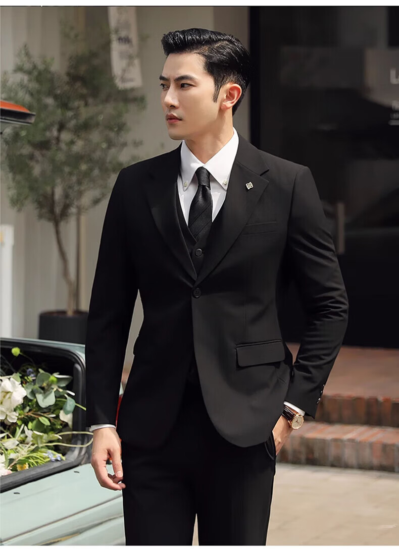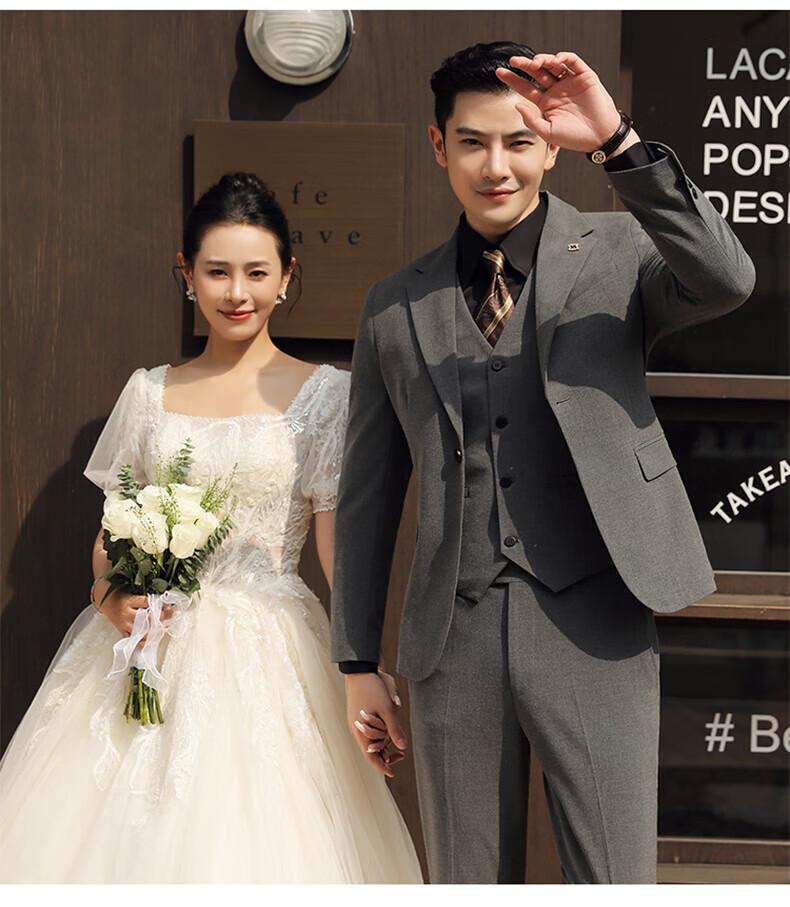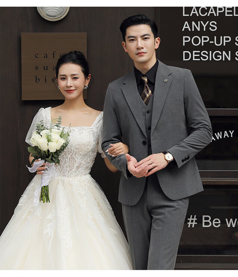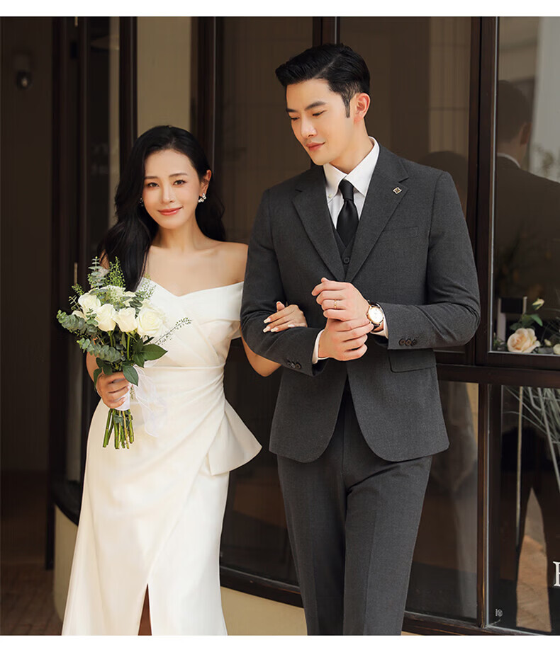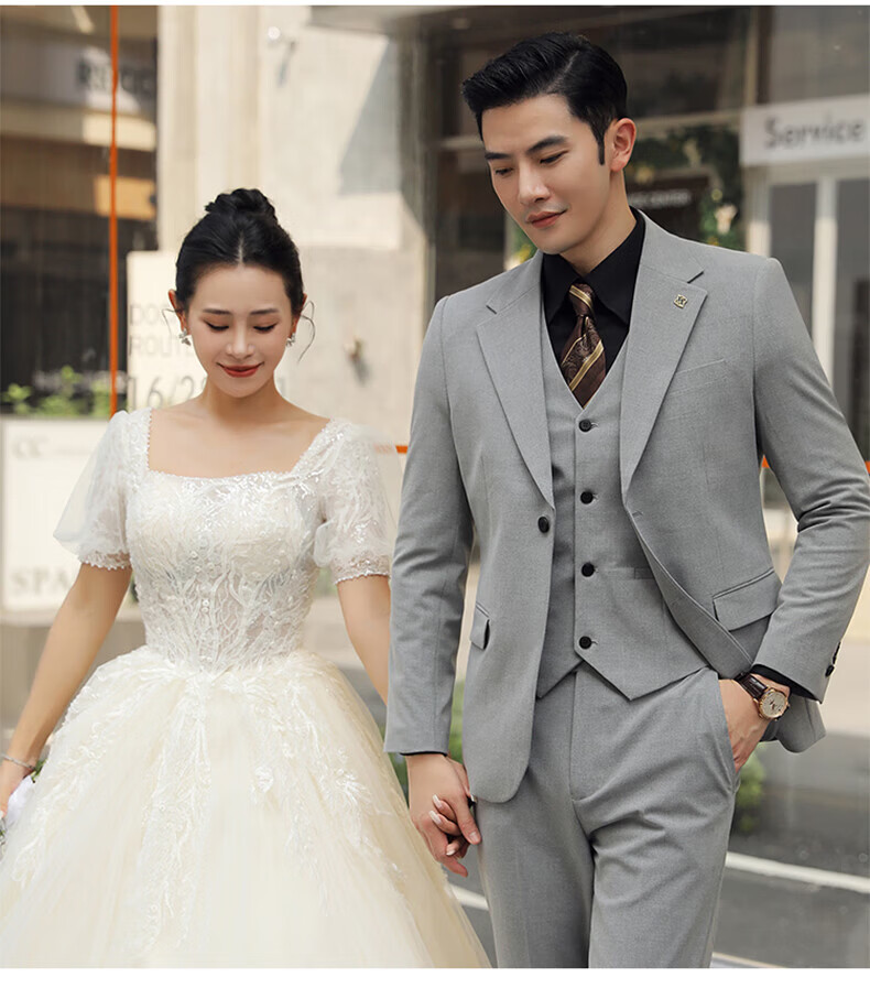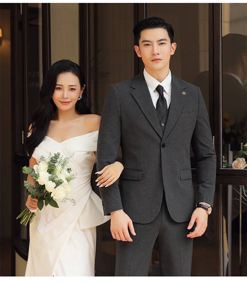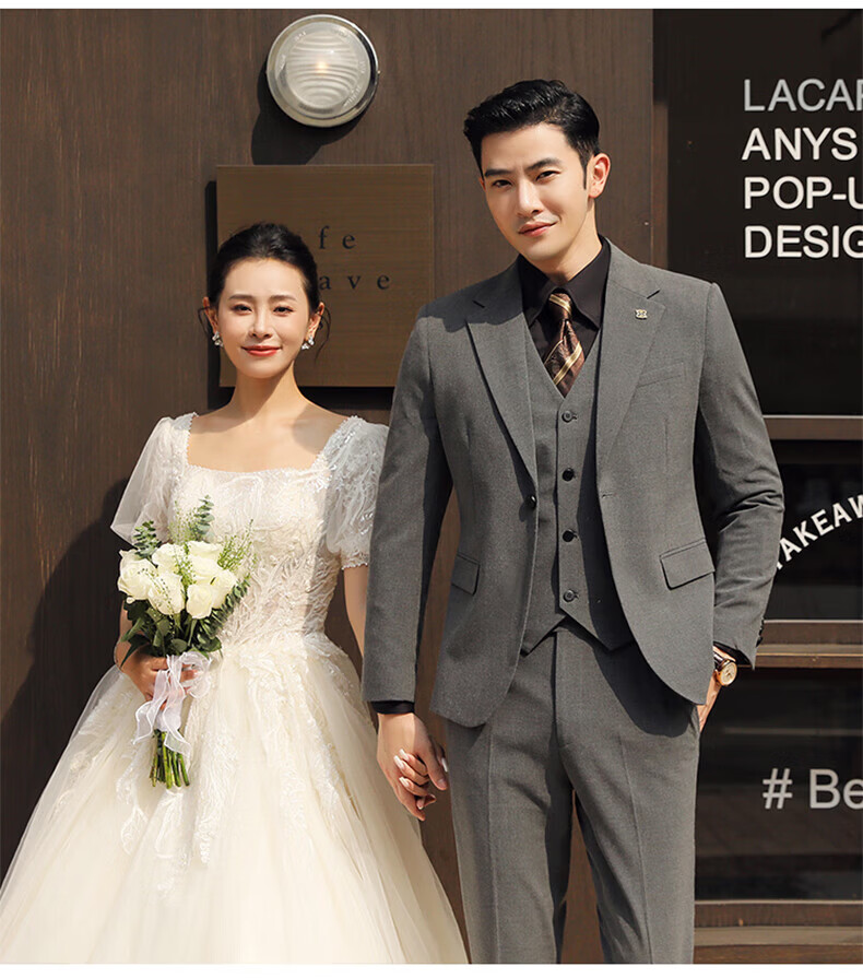 Playboy (PLAYBOY) Business Professional Formal Wear Groom Wedding Suit Suit Men's Korean Slim Dress Suit British Top Men Gray Single Button Suit+Pants+Tie XL Recommended 120-135Jin Jin equals 0.5 kg