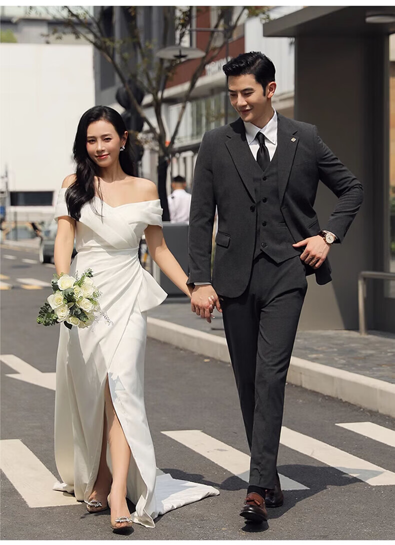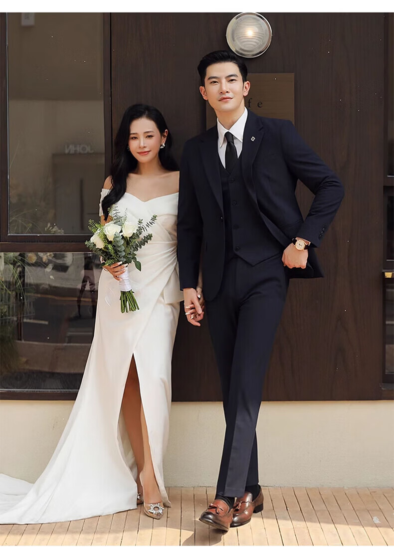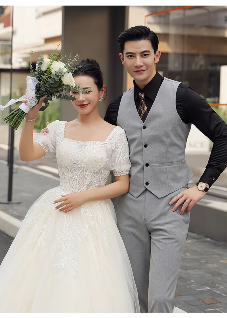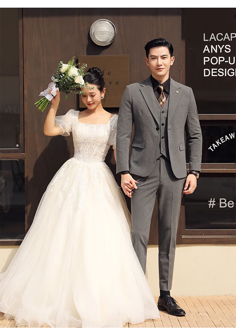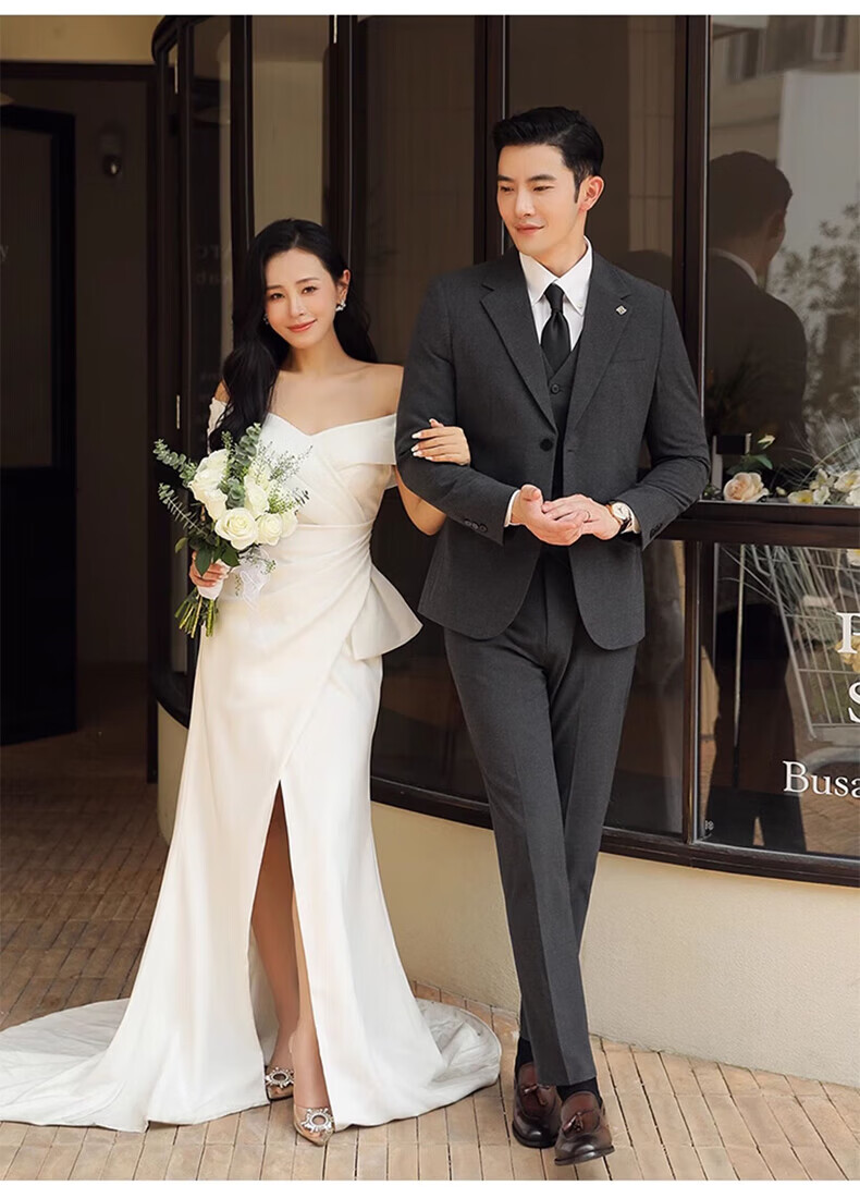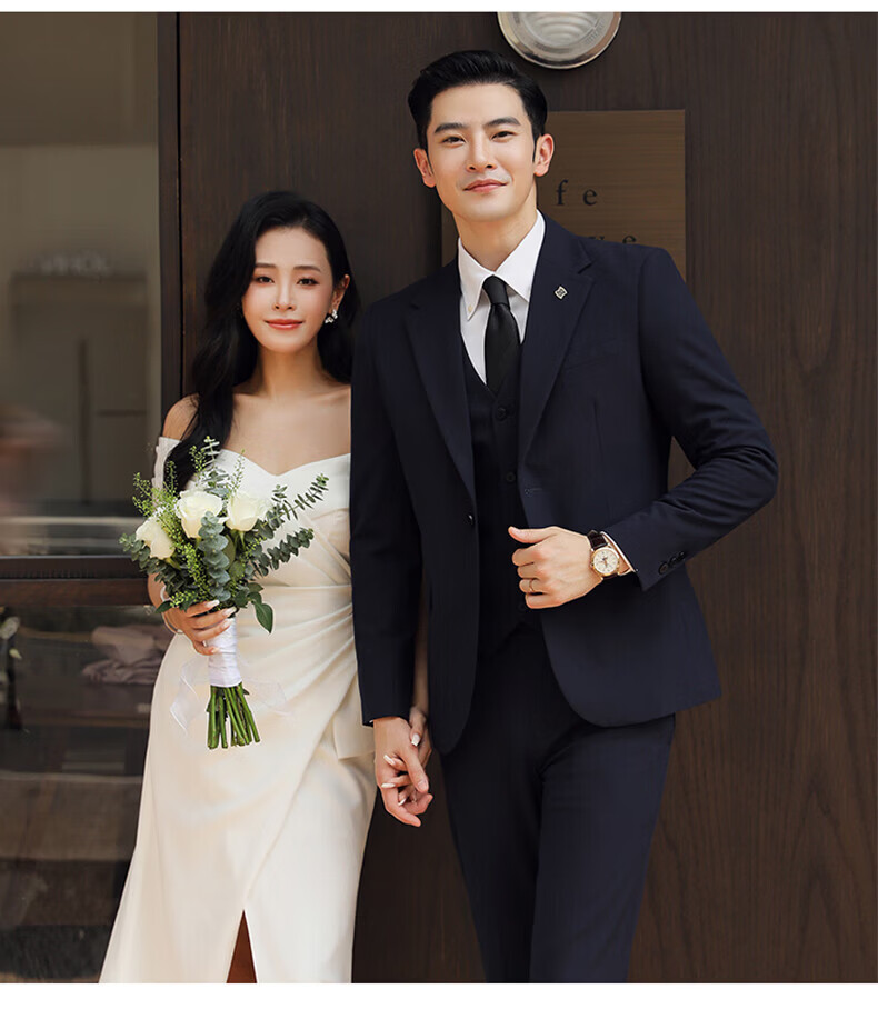 Playboy (PLAYBOY) Business Professional Formal Wear Groom Wedding Suit Suit Men's Korean Slim Dress Suit British Top Men Gray Single Button Suit+Pants+Tie XL Recommended 120-135Jin Jin equals 0.5 kg