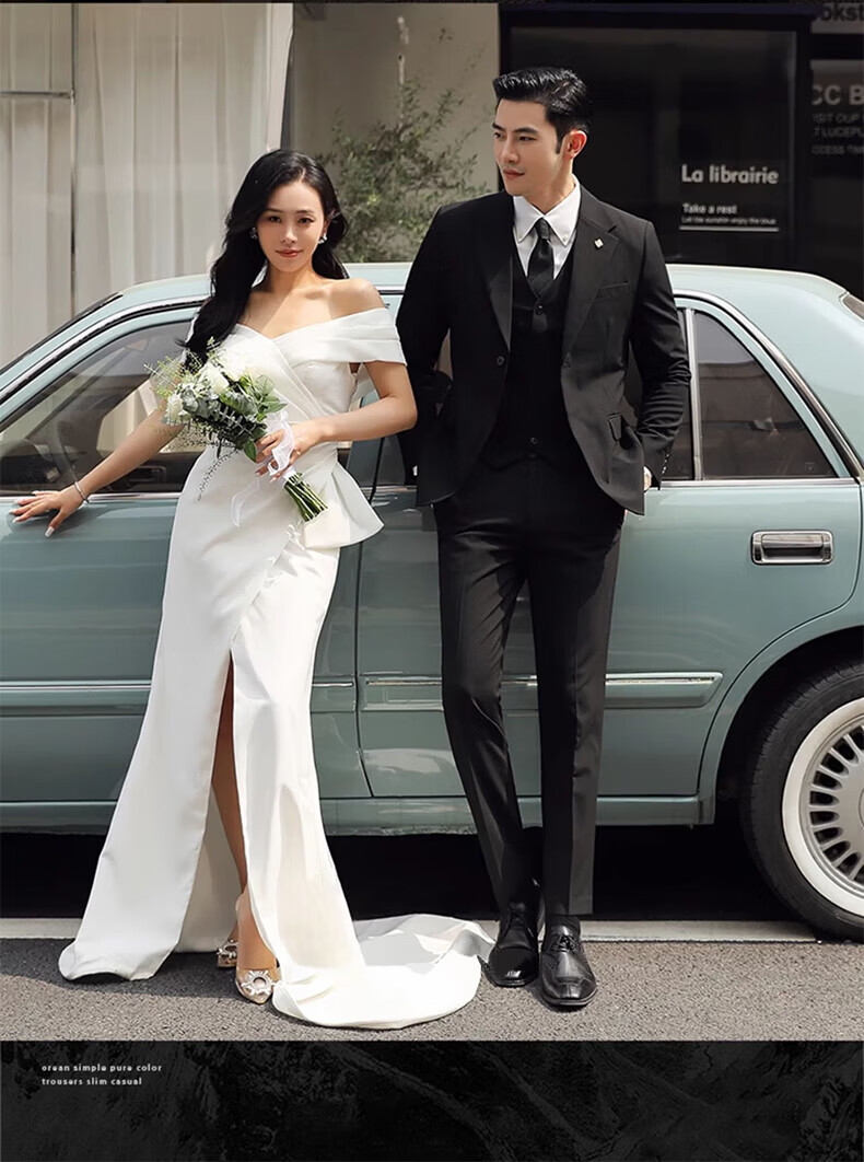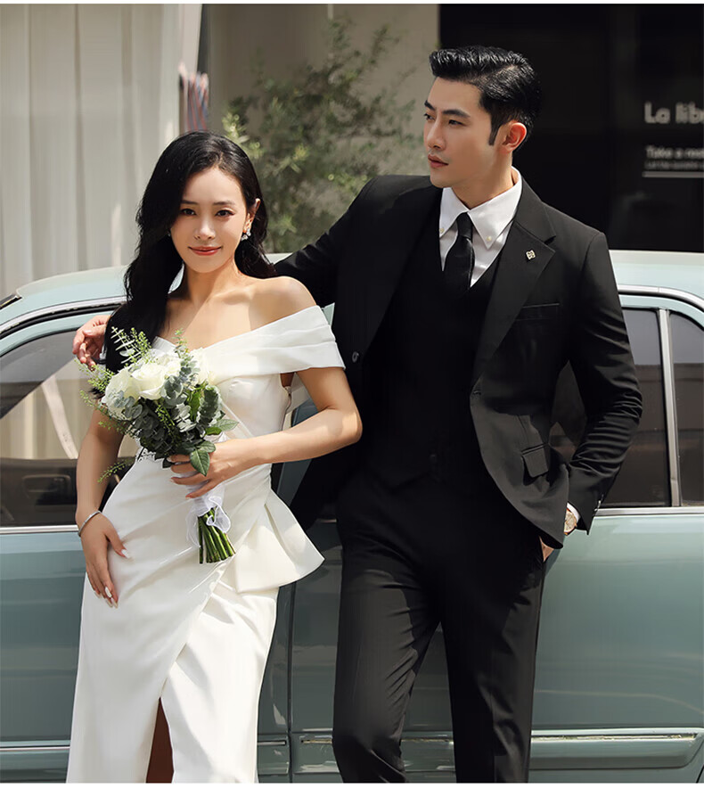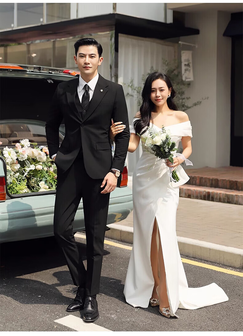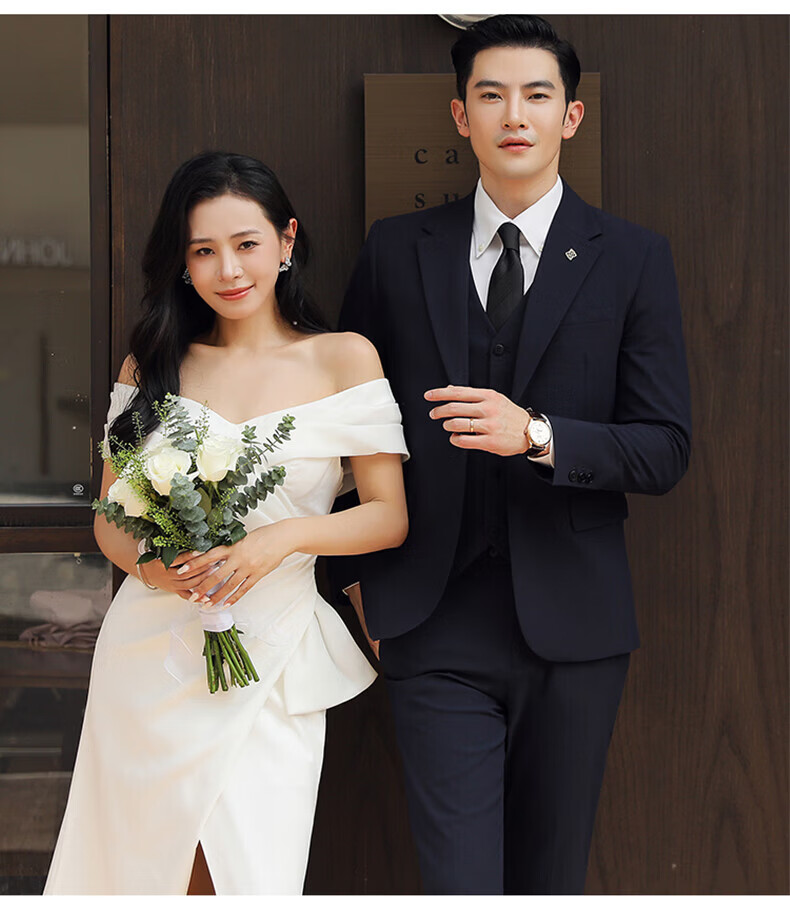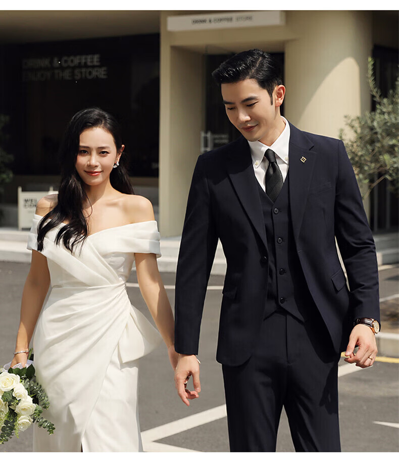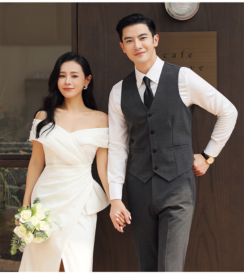 Playboy (PLAYBOY) Business Professional Formal Wear Groom Wedding Suit Suit Men's Korean Slim Dress Suit British Top Men Gray Single Button Suit+Pants+Tie XL Recommended 120-135Jin Jin equals 0.5 kg
