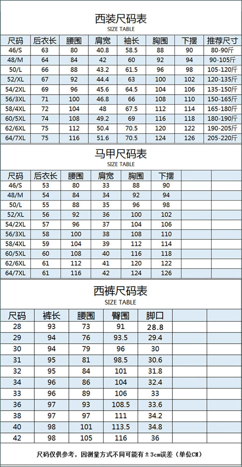 China (cm) 165 / 88-90 170 / 96-98 175 / 108-110 180 / 118-122 185 / 126-130