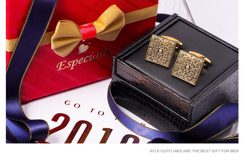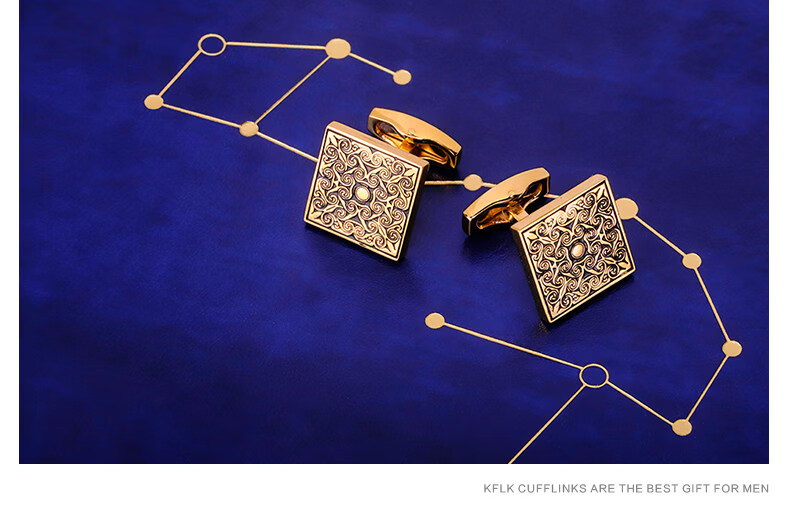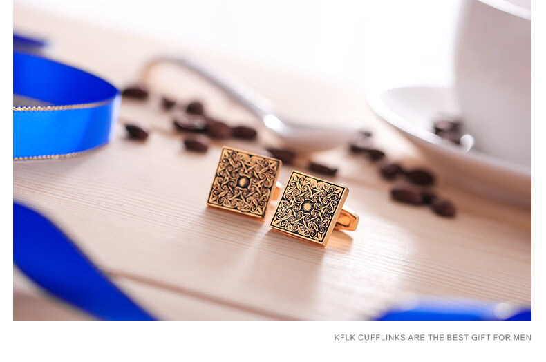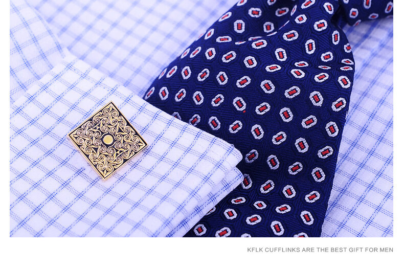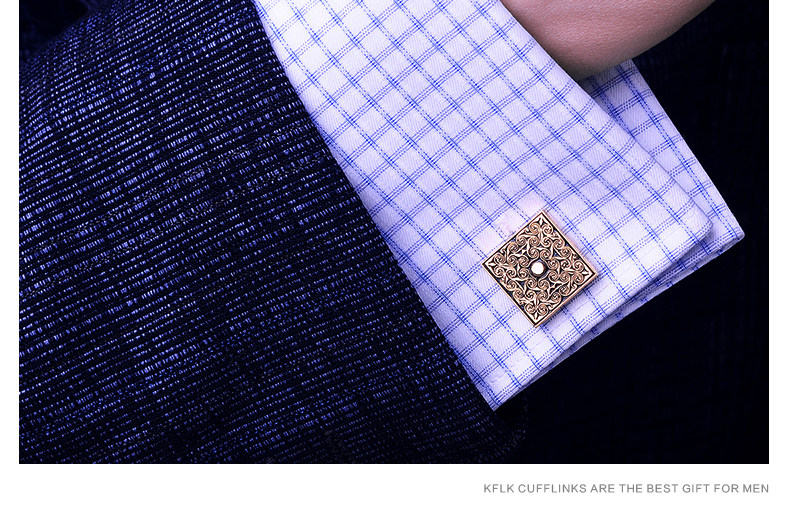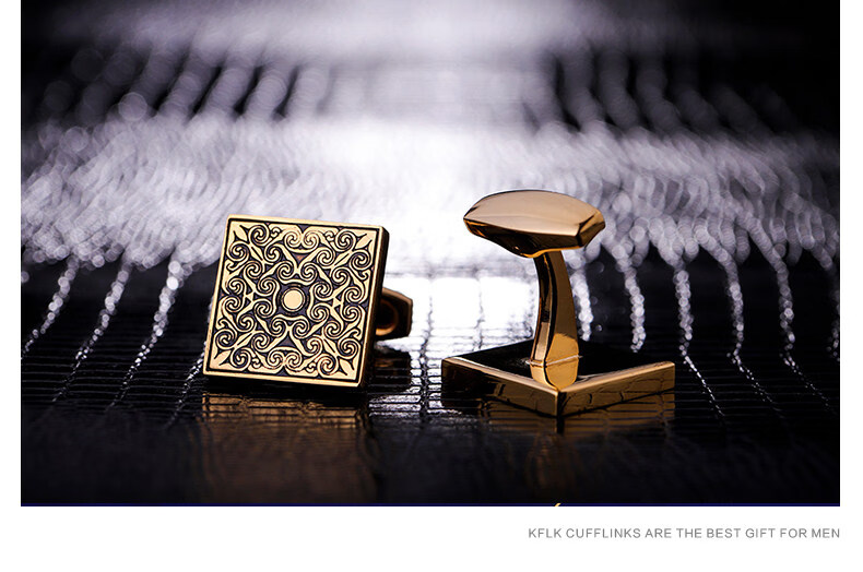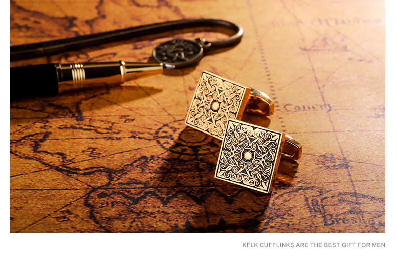 Cufflinks (KFLK) French shirt cufflinks for men, light luxury custom shirts, gold cuff buttons, retro pattern cufflinks Cufflinks K064