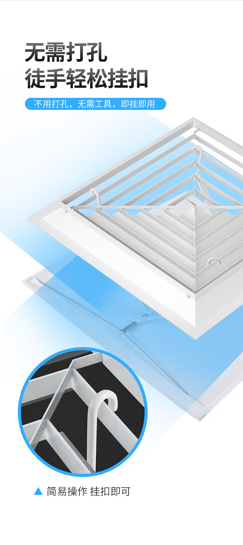 接运猫四方形吸顶空调挡风板防直吹出风口挡板天花机挡风罩遮风板 四方形白色35*35基础款