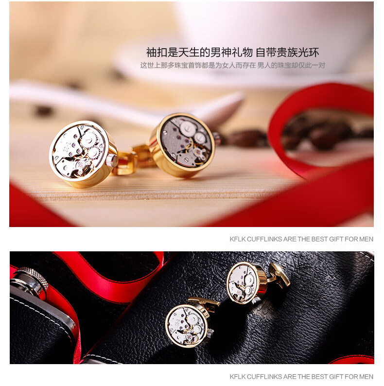 KFLK French shirt cufflinks men's light luxury custom shirt movement mechanical cufflinks cufflinks Cufflinks K157 (gold frame)