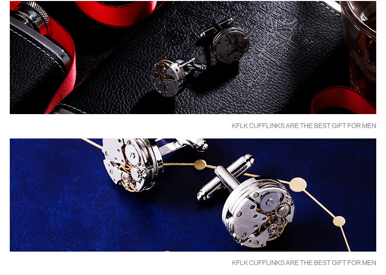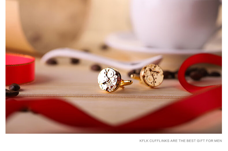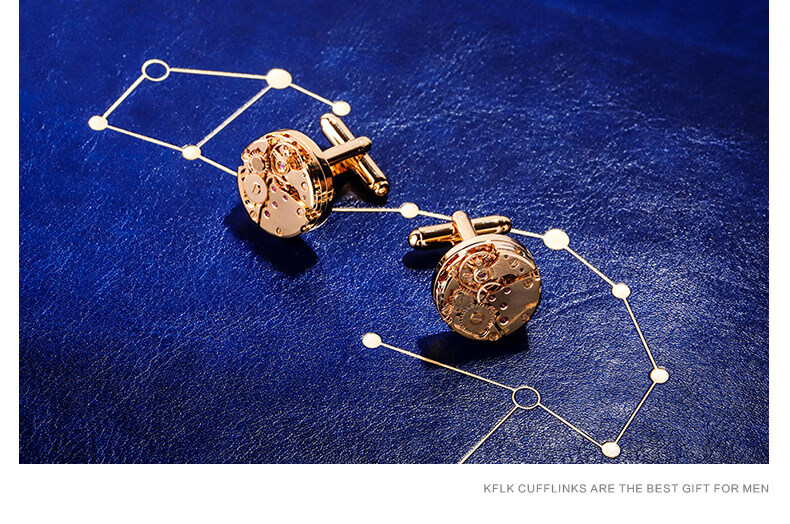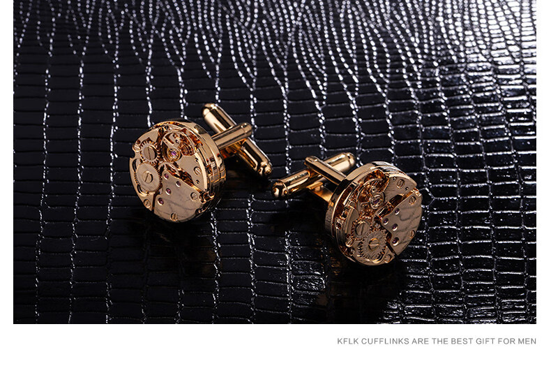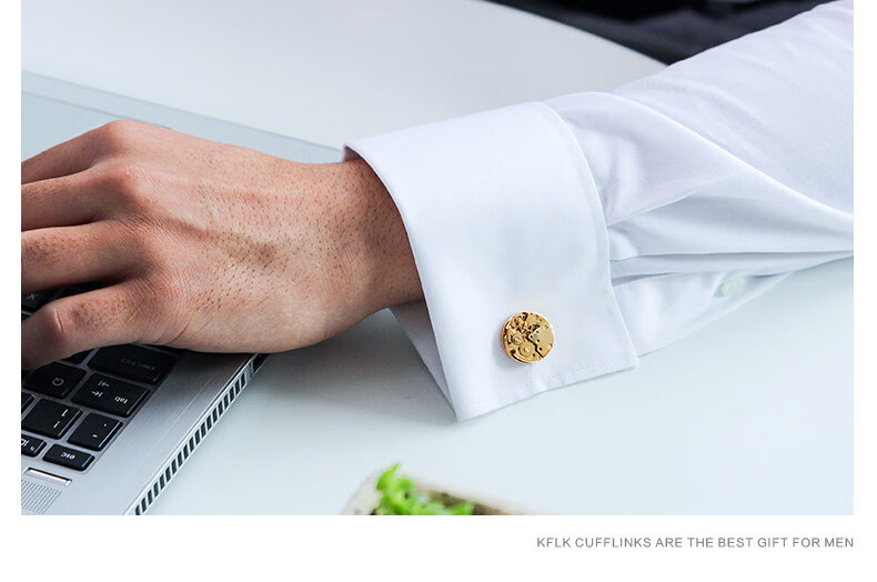 Kaflink (KFLK) French shirt cufflinks for men, light luxury custom shirt buttons, mechanical movement cufflinks, cuff buttons, gift engraving, gold K128