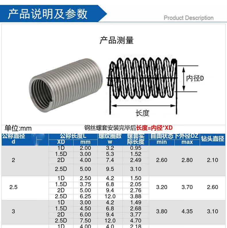 Bingneng 304 stainless steel fine tooth thread braces dense tooth protective sleeve screw sleeve steel wire sleeve spring repair steel sleeve screw sleeve M9*1 point 25*1 point 5D20 only