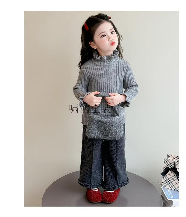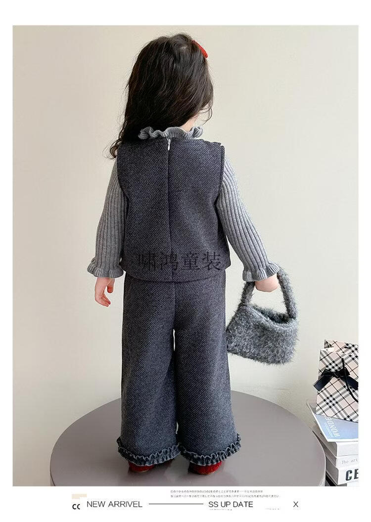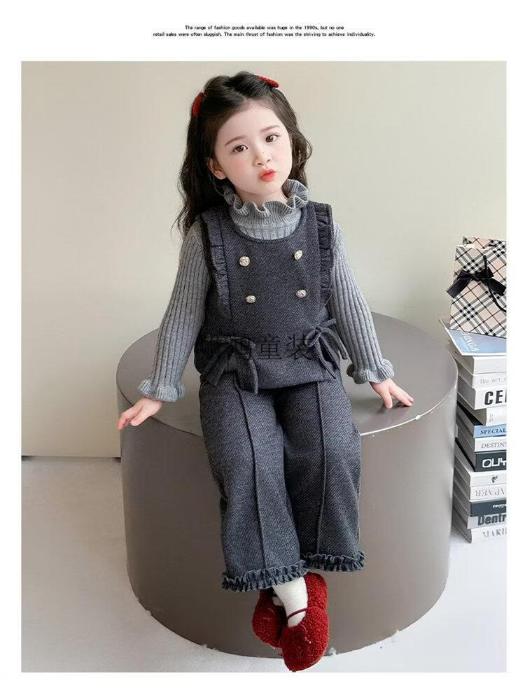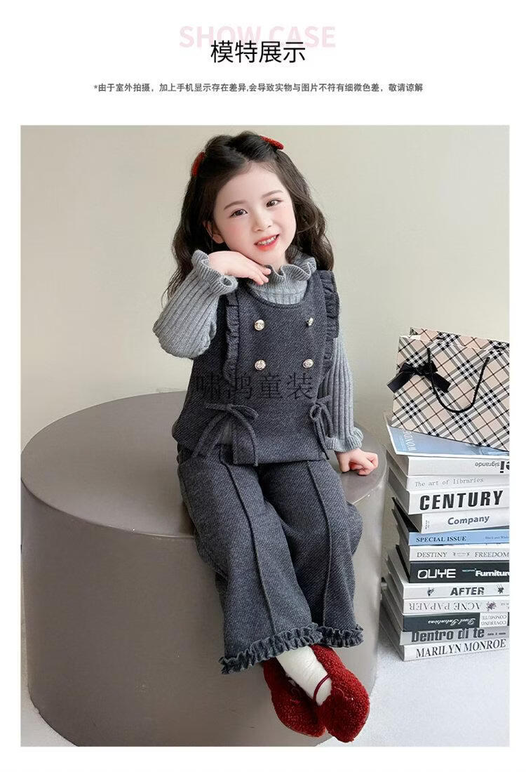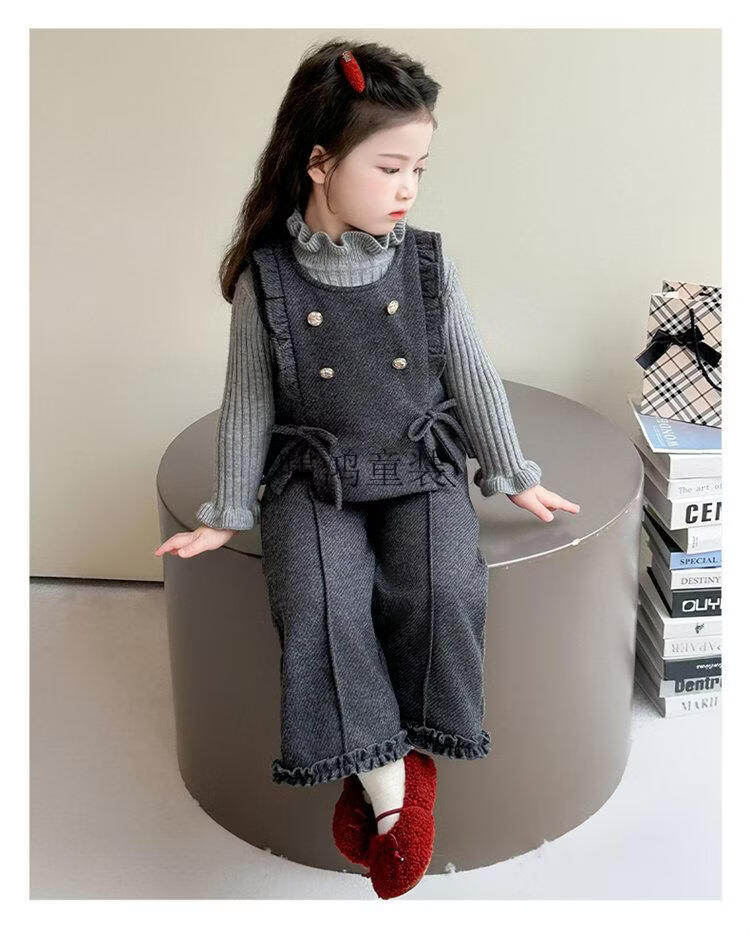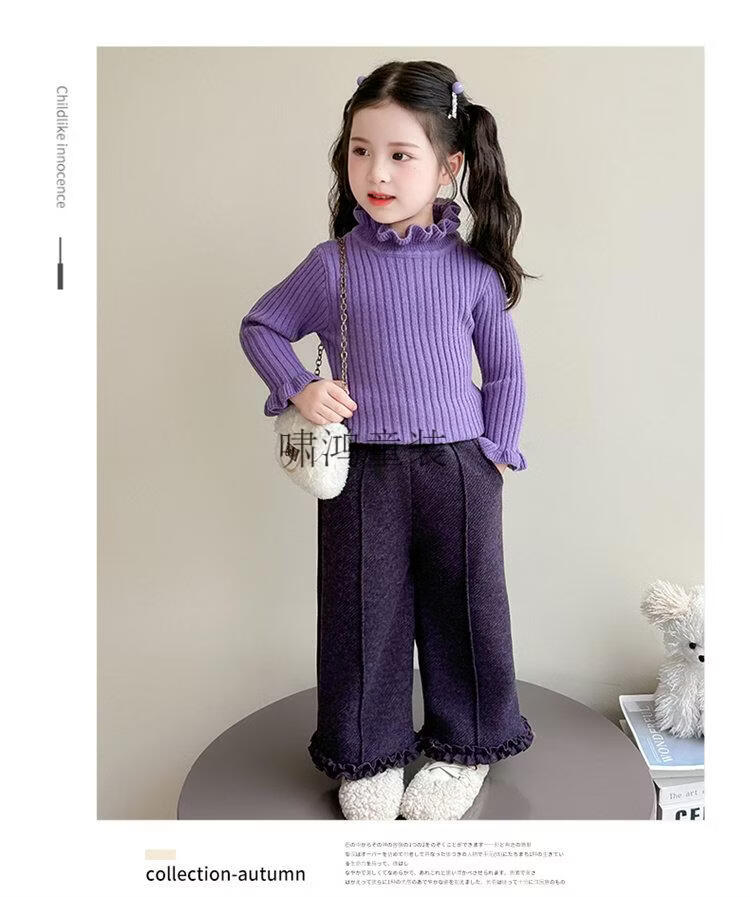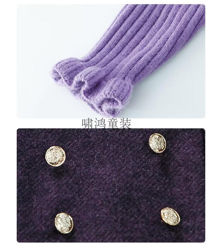 Log Cabin Girls' Velvet Suit Autumn and Winter 2026 New Style Fashionable Baby Girl Big Good-looking Sweater Winter Clothing Three-piece Set Purple Suit Vest + Pants 90 cm