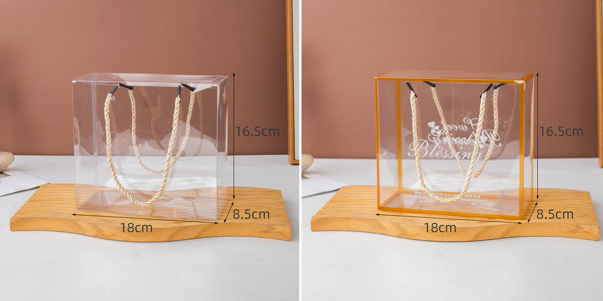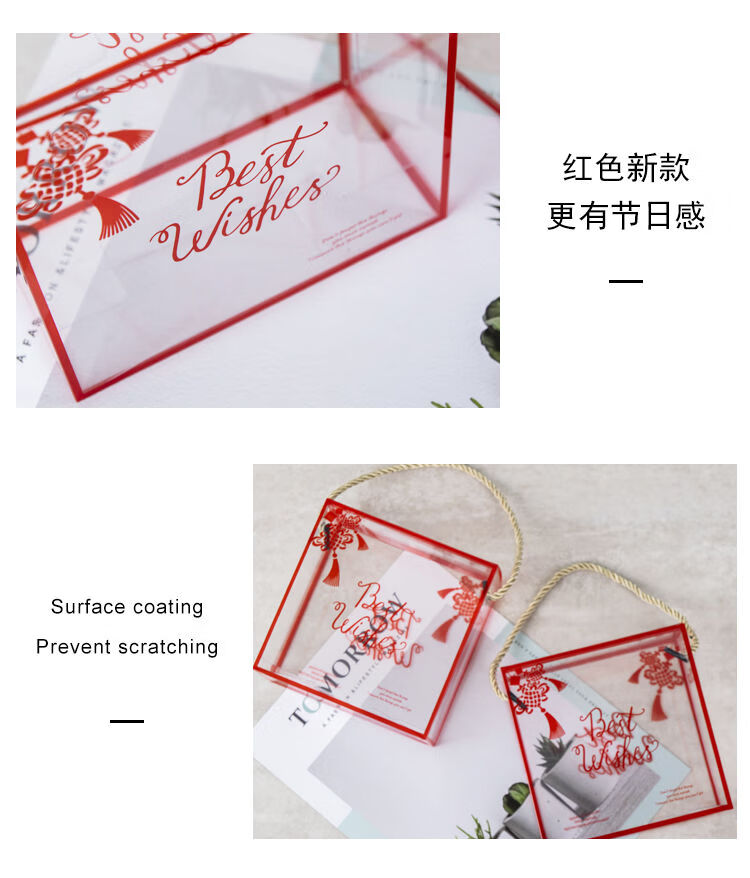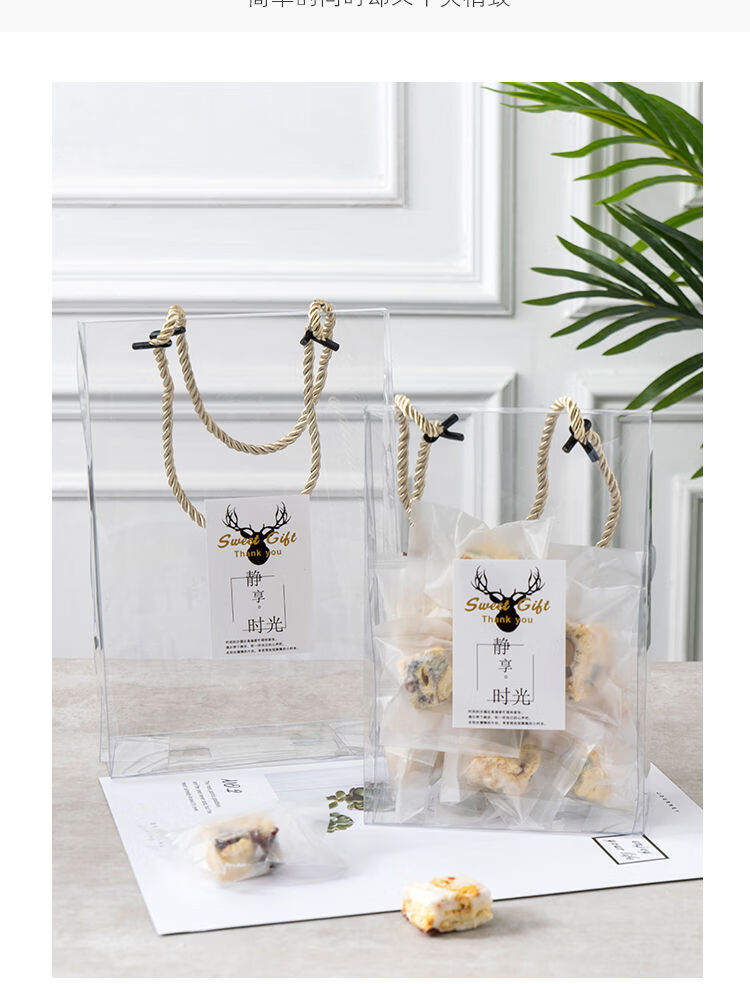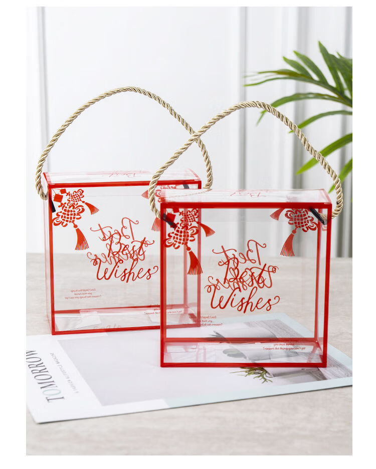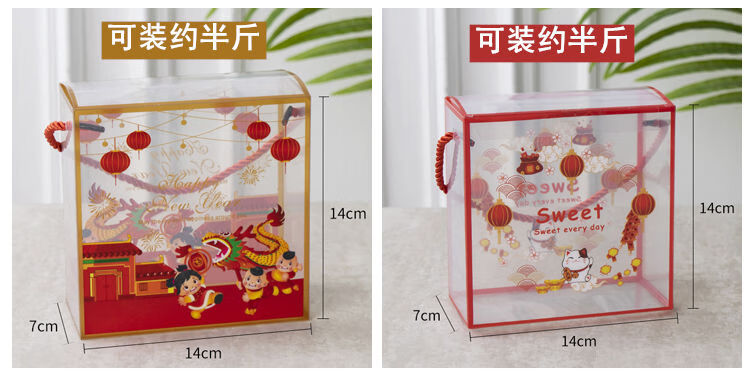 Fantasy transparent snowflake cake gift box hand bag large transparent baking biscuit packaging box plus hard New Year gift box large fully transparent hand gift box + Happy New Year sticker Can hold about 1Jin Jin is equal to 0.5kg 500 sets Loss momentum base price