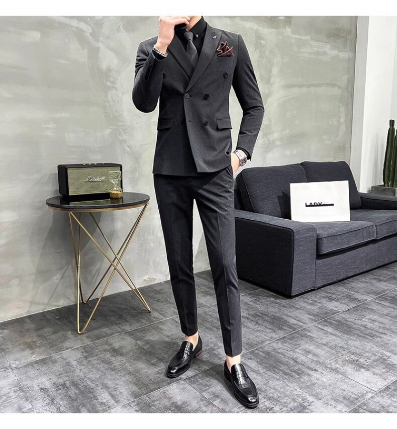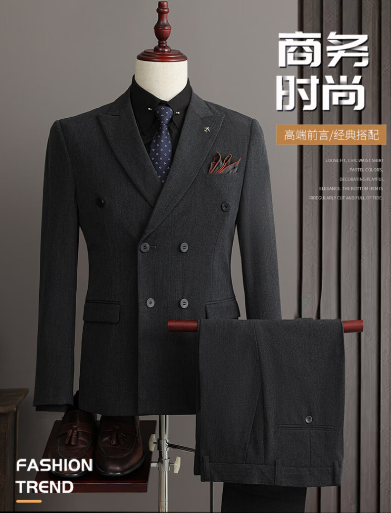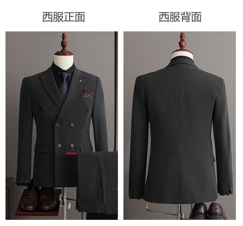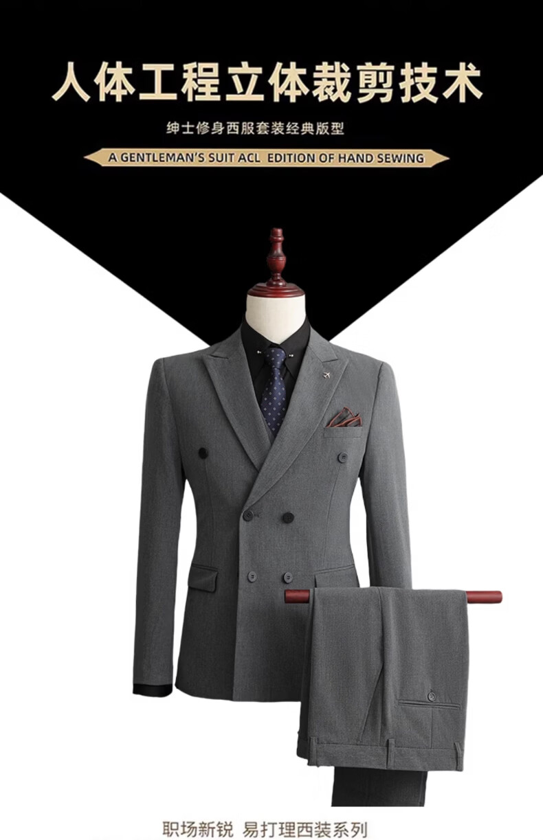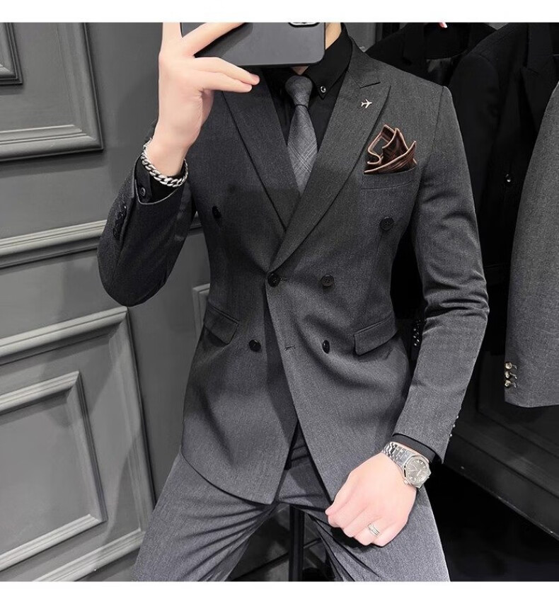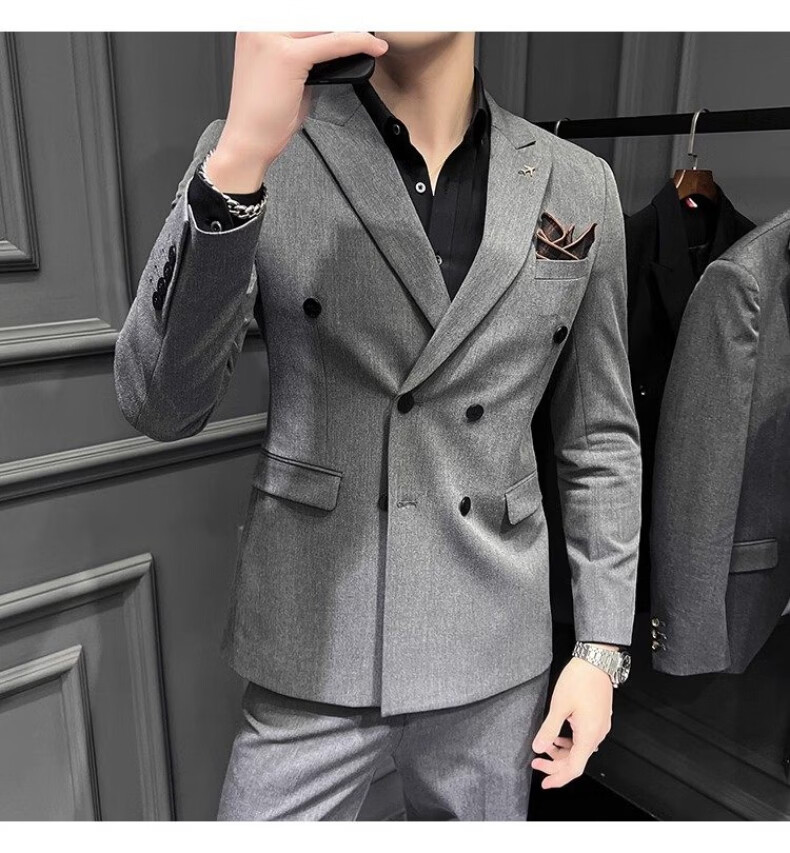 Playboy (PLAYBOY) 2026 double-breasted suit suit men's business formal wear high-end suit groom wedding dress slim jacket medium gray single suit XL recommended 120-135 Jin Jin equals 0.5 kg