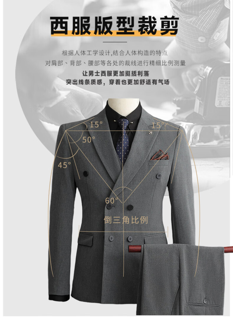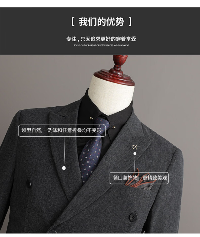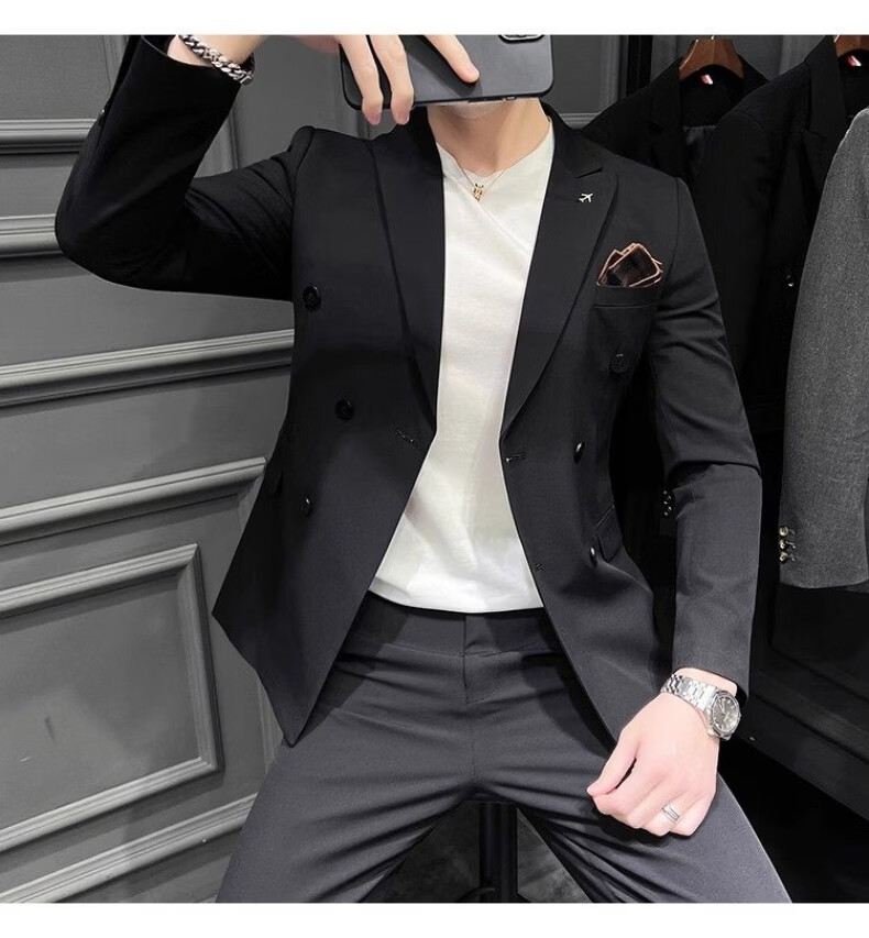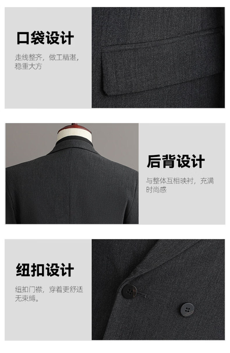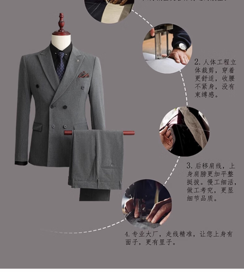 Playboy (PLAYBOY) 2026 double-breasted suit suit men's business formal wear high-end suit groom wedding dress slim jacket medium gray single suit XL recommended 120-135 Jin Jin equals 0.5 kg