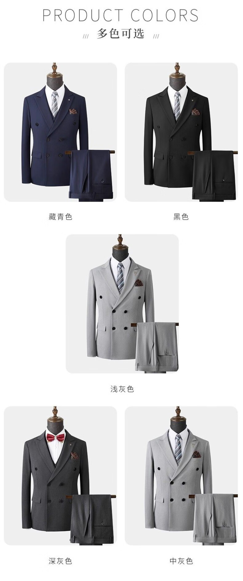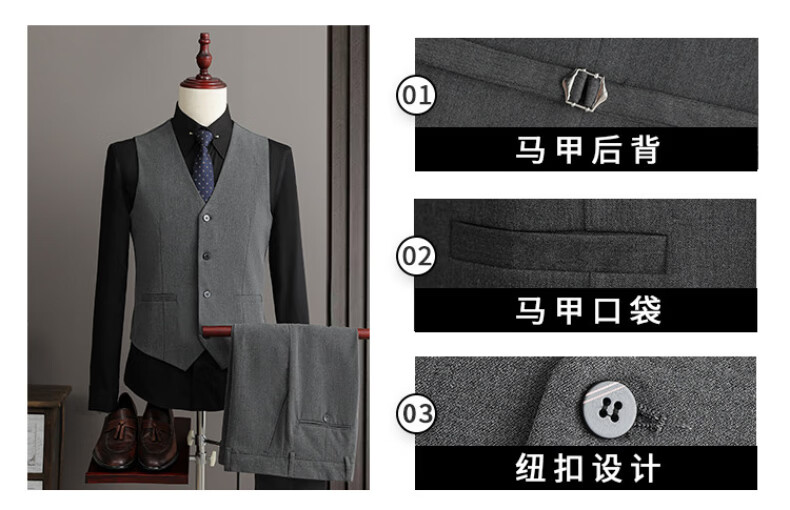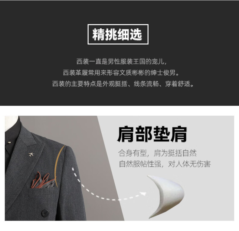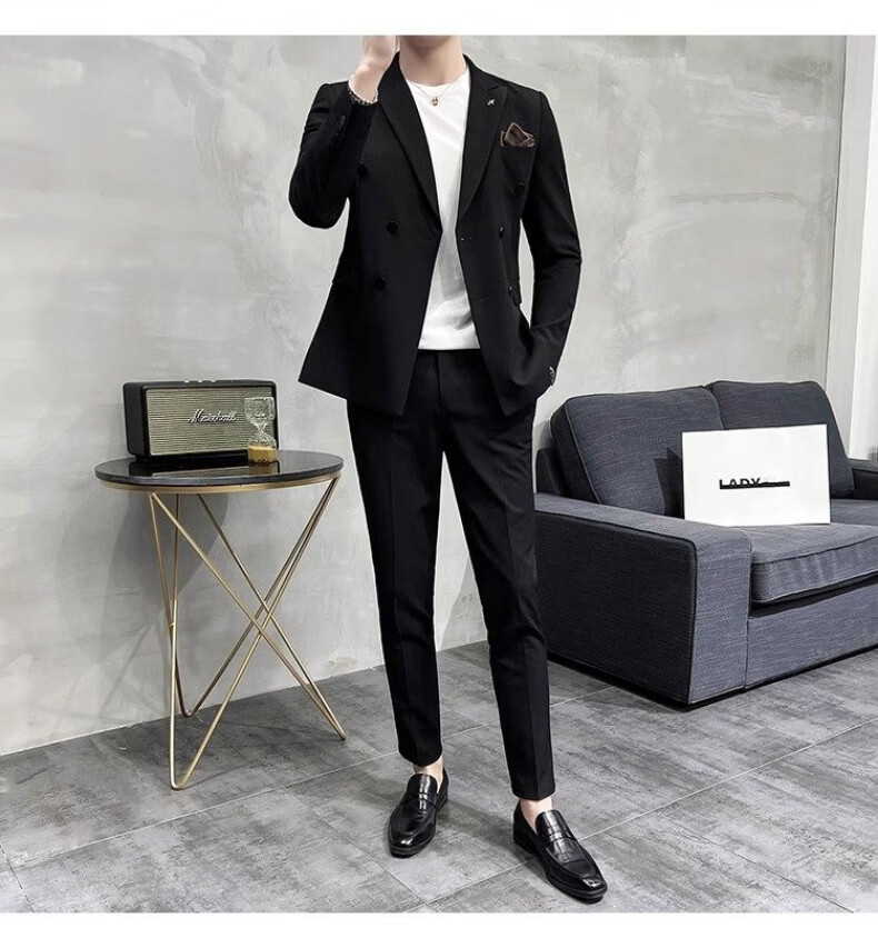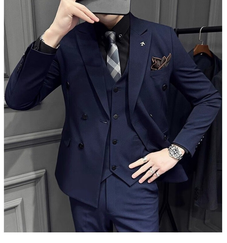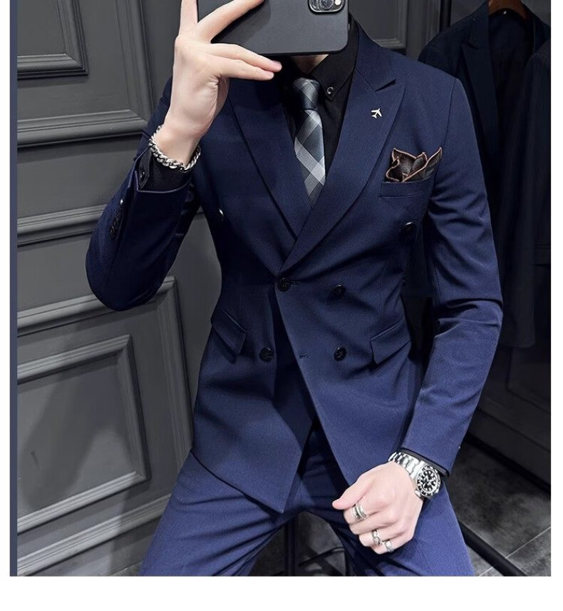 Playboy (PLAYBOY) 2026 double-breasted suit suit men's business formal wear high-end suit groom wedding dress slim jacket medium gray single suit XL recommended 120-135 Jin Jin equals 0.5 kg