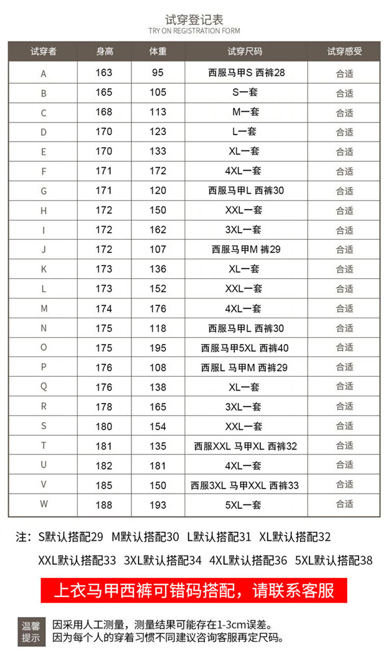 China (cm) 160-165/84-86 165-170 / 88-90 167-172 / 92-96 168-173 / 98-102 170-176 / 106-110