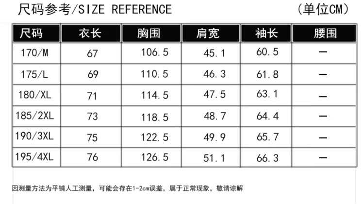 China (cm) 165 / 88-90 170 / 96-98 175 / 108-110 180 / 118-122 185 / 126-130