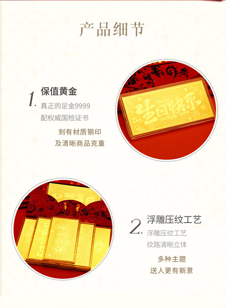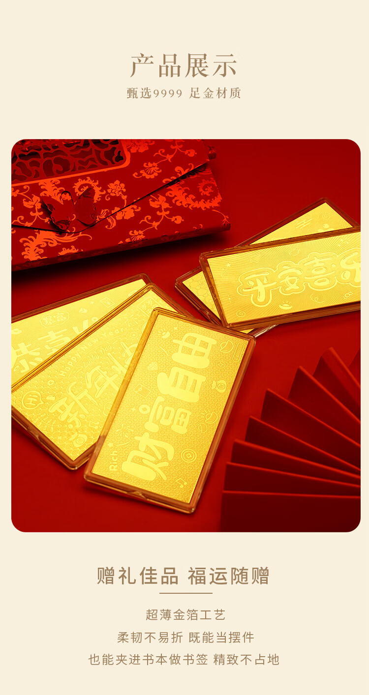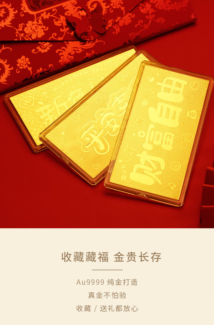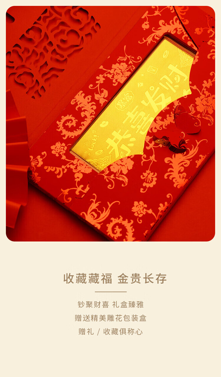 Lao Fengxiang investment gold gold bars auspicious words gold banknotes pure gold financial management ornaments gold bar collection gifts for friends birthday gifts step by step gold about 1g