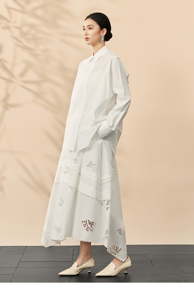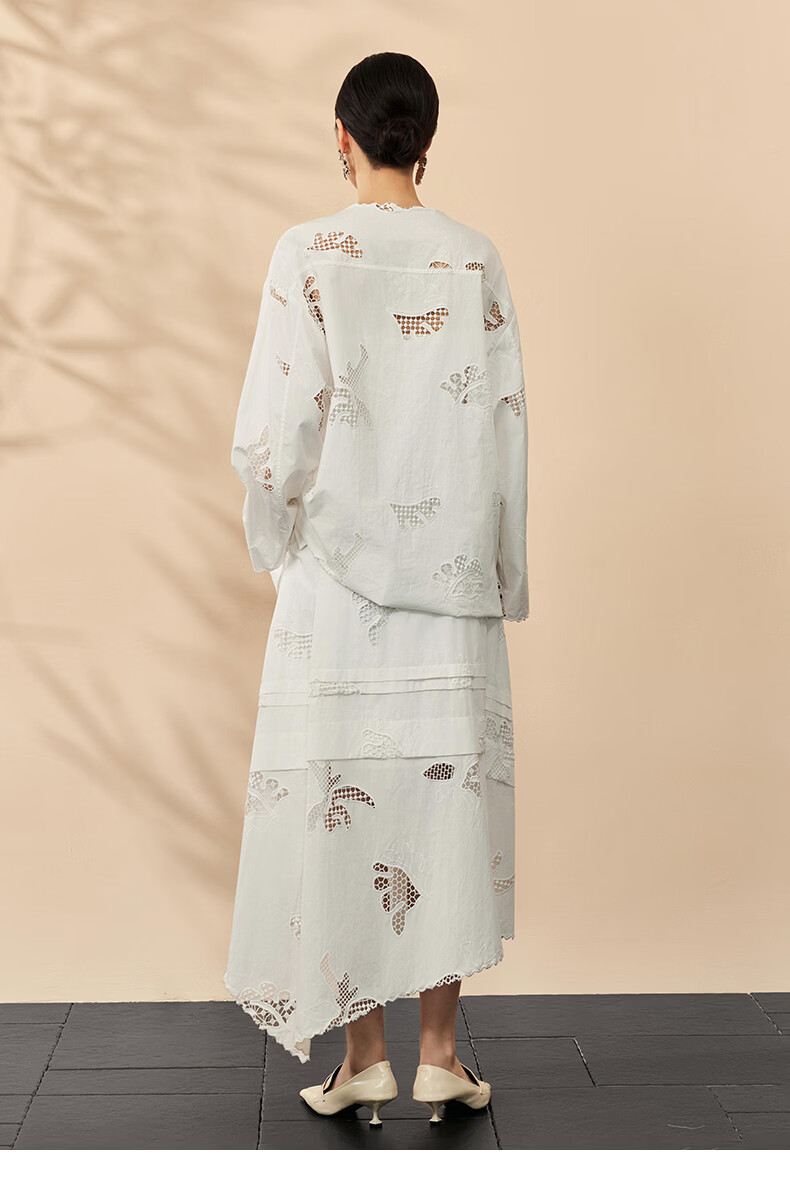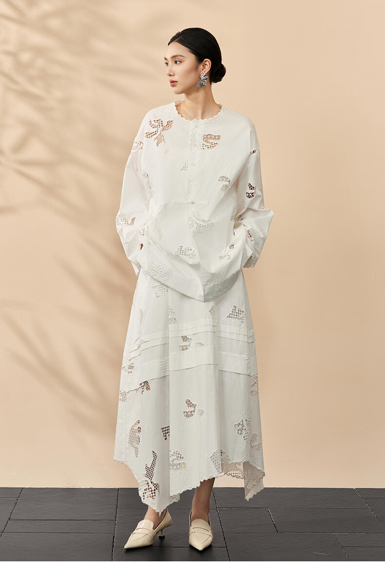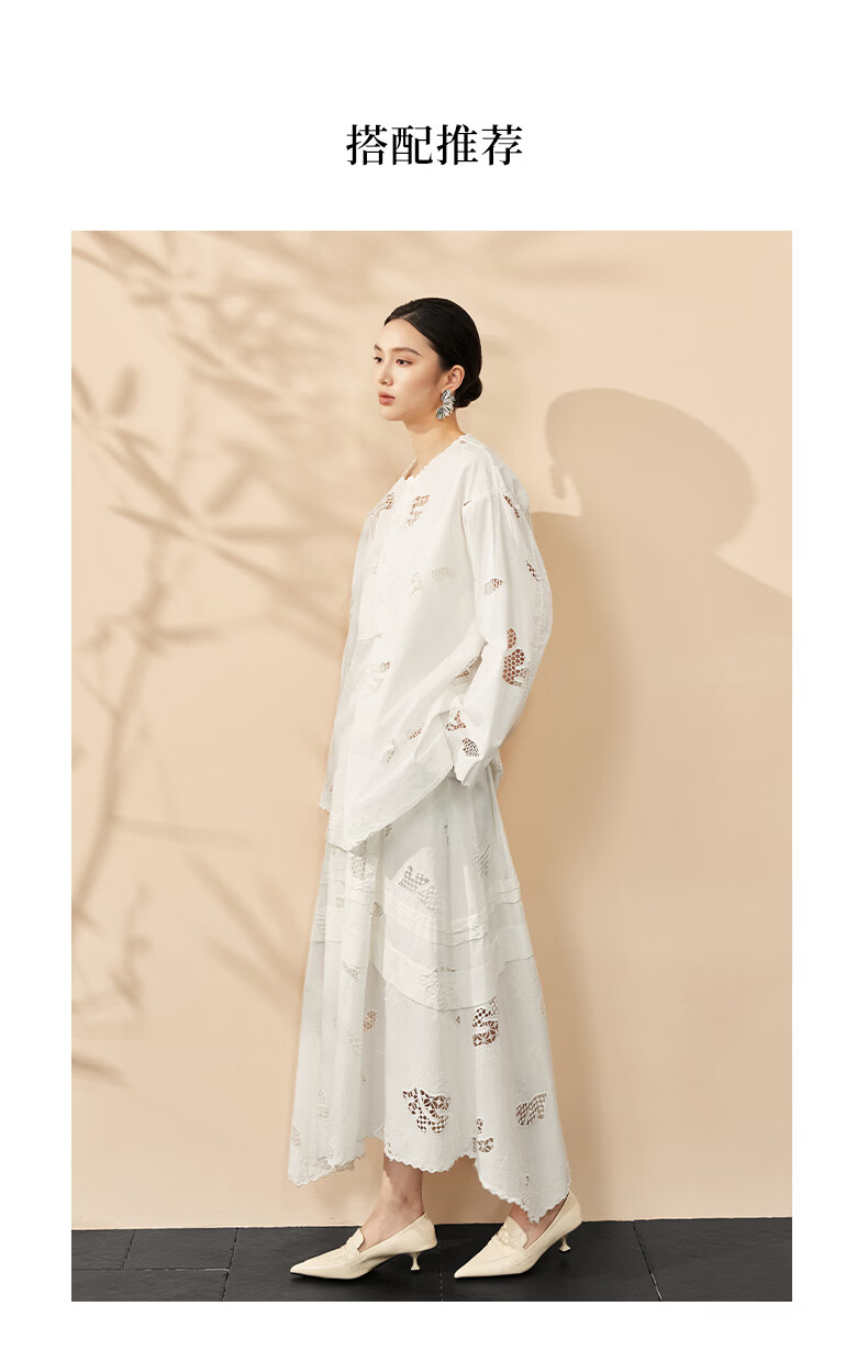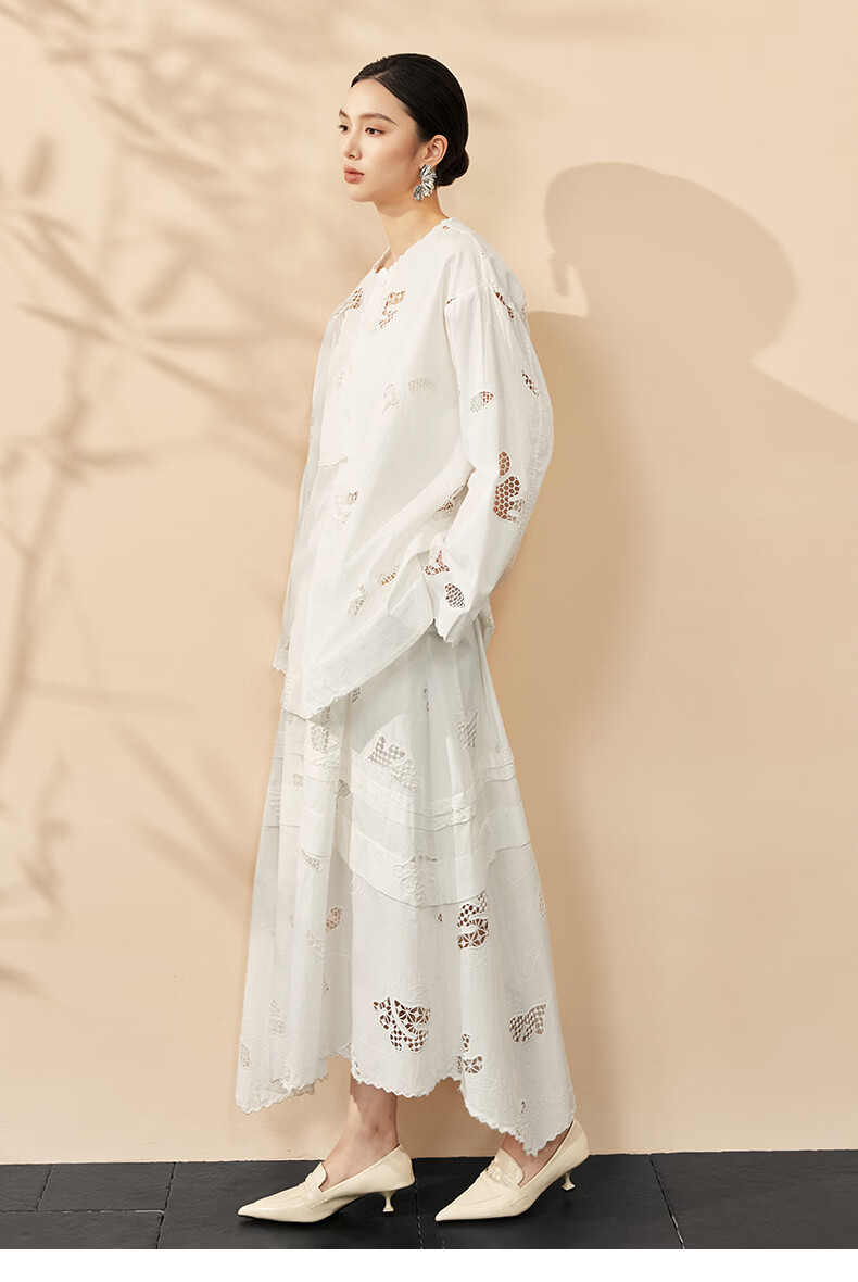 HECO Bai Qian Handmade Hollow Embroidery New Chinese Top National Style Women's Shirt 2026 Spring New Two-piece Suit White Shirt M